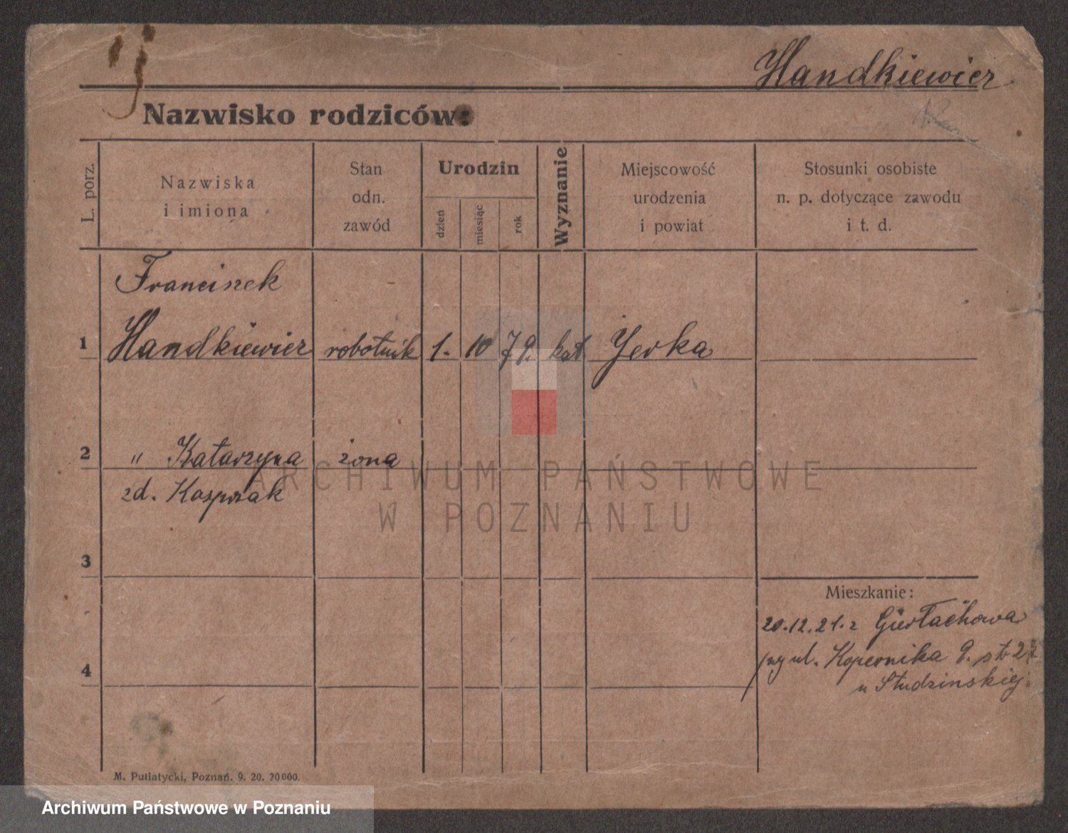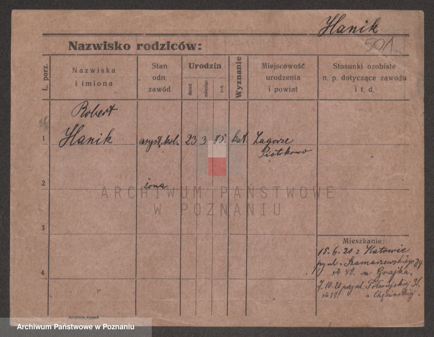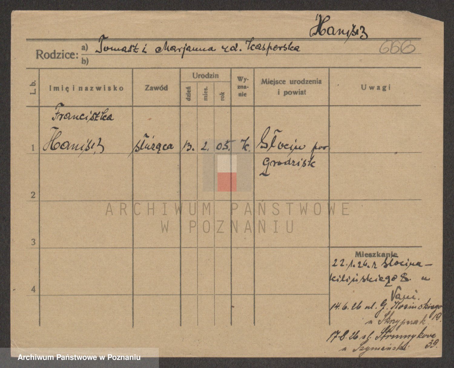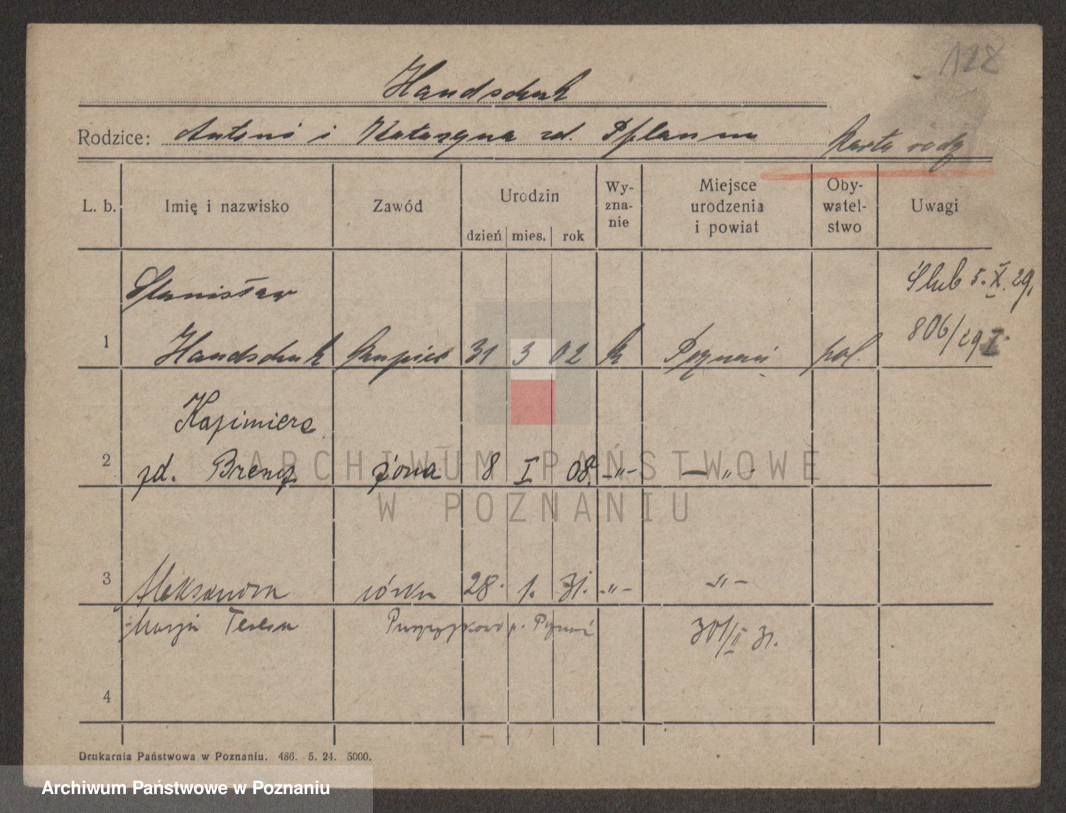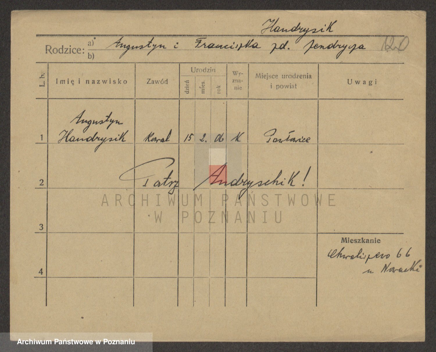 Podgląd karty osobowej dostępny jest po kliknięciu na nazwisko lub ikonkę karty. Można dokonywać powiększenia (ikony na górze) lub przechodzić między kolejnymi skanami (strzałki po bokach).