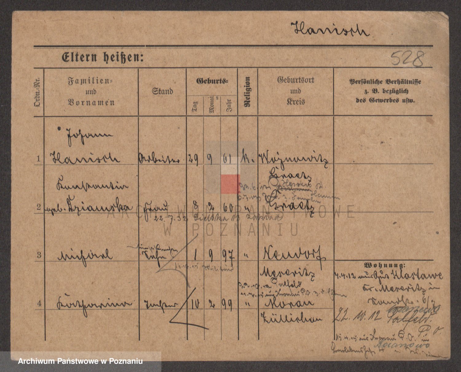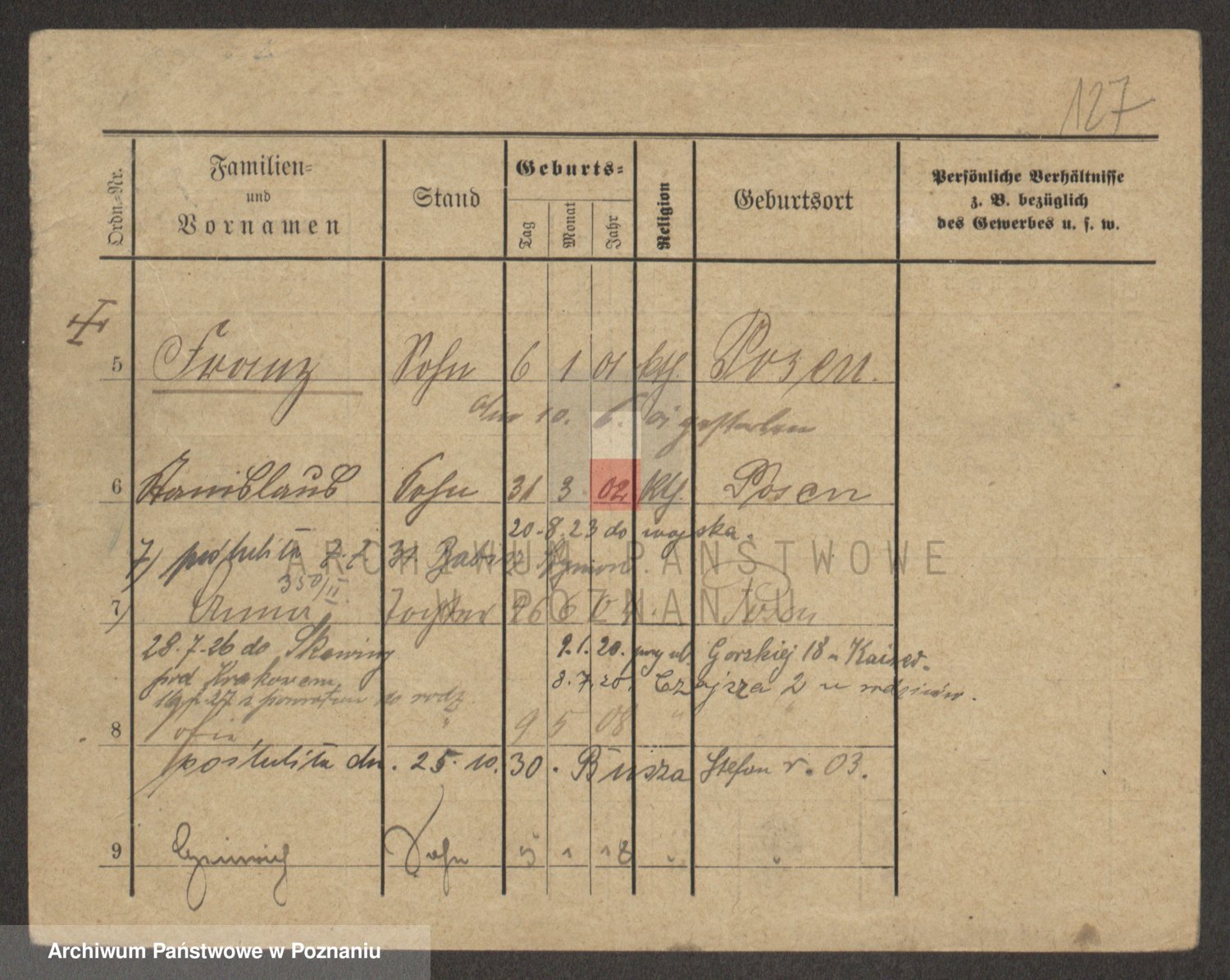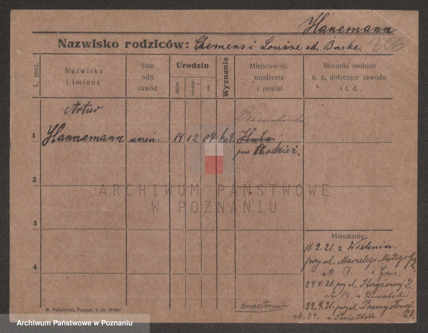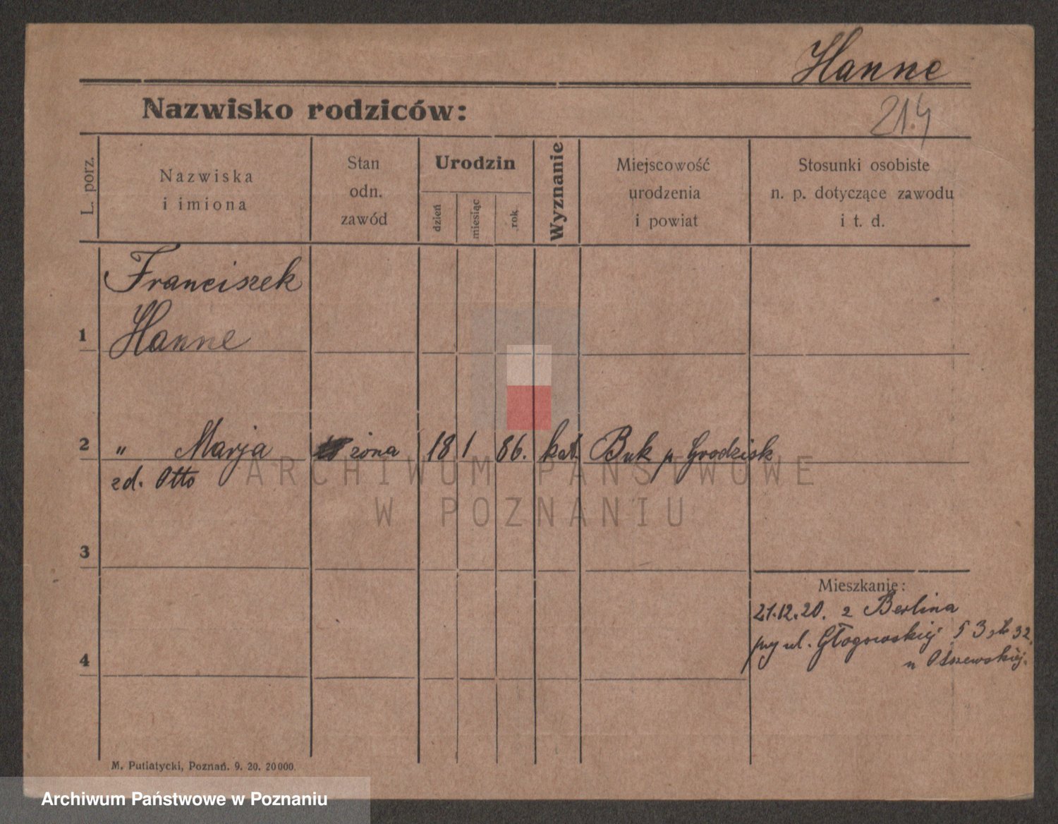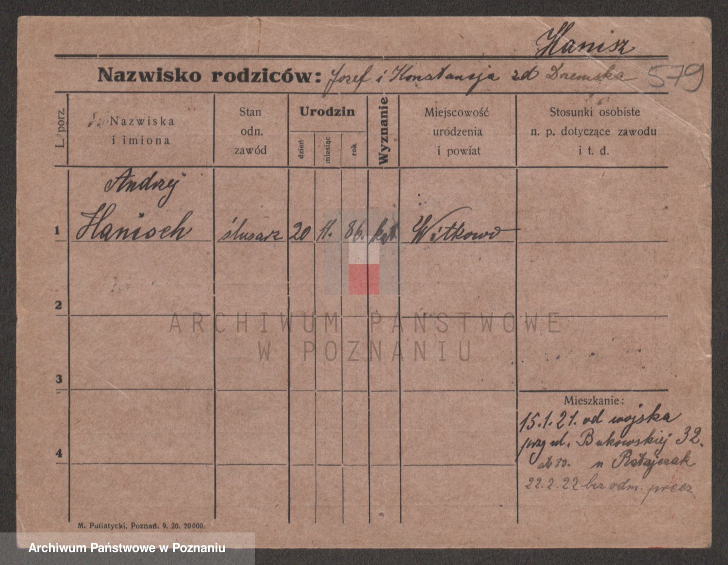 Podgląd karty osobowej dostępny jest po kliknięciu na nazwisko lub ikonkę karty. Można dokonywać powiększenia (ikony na górze) lub przechodzić między kolejnymi skanami (strzałki po bokach).