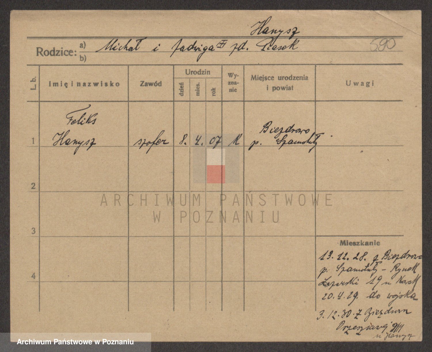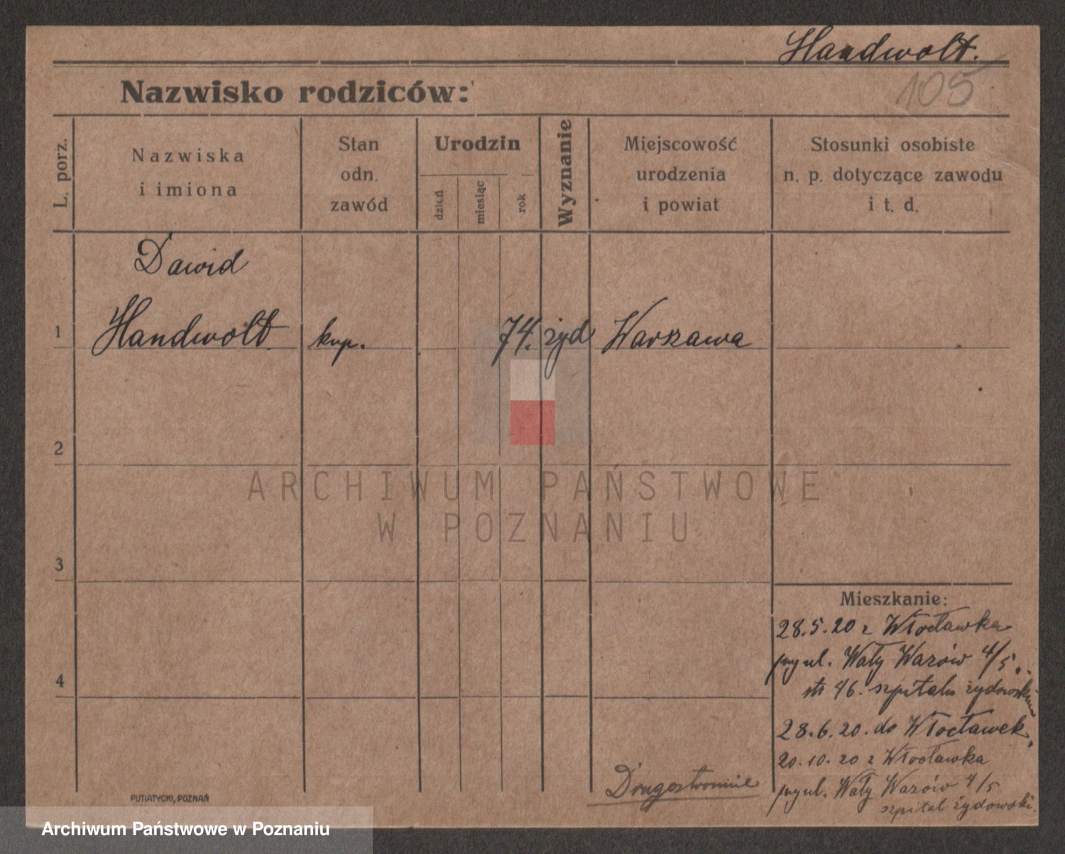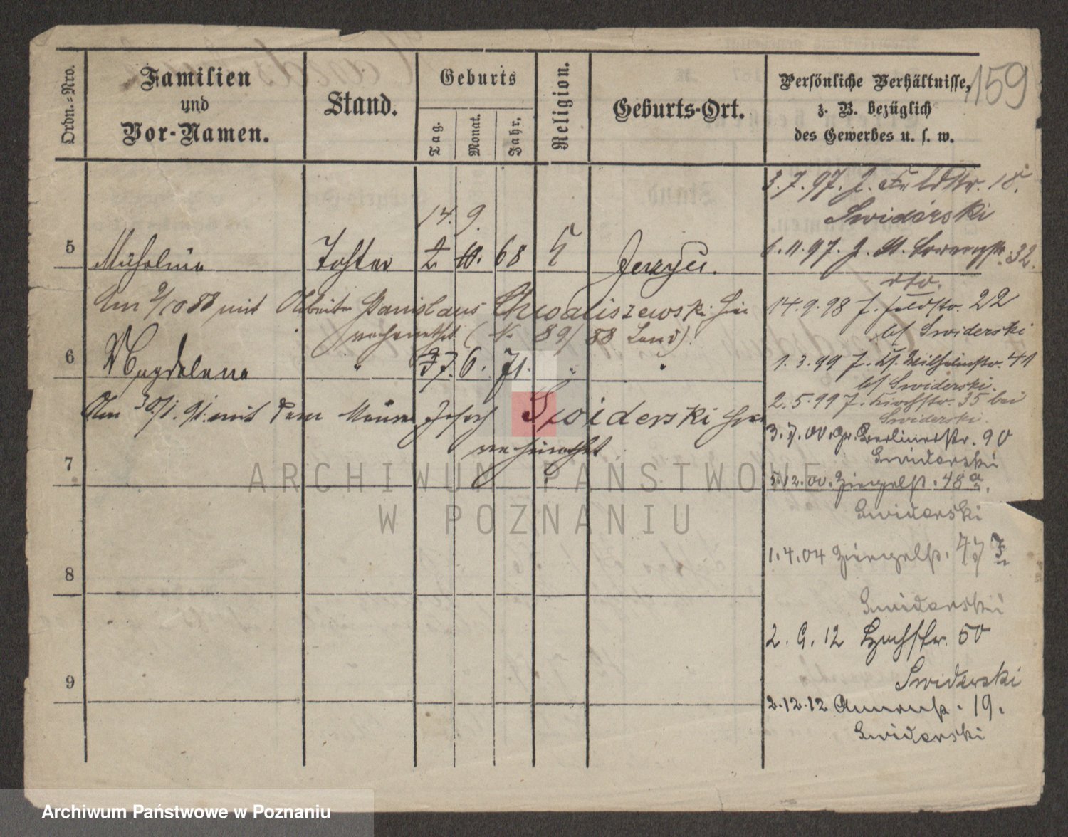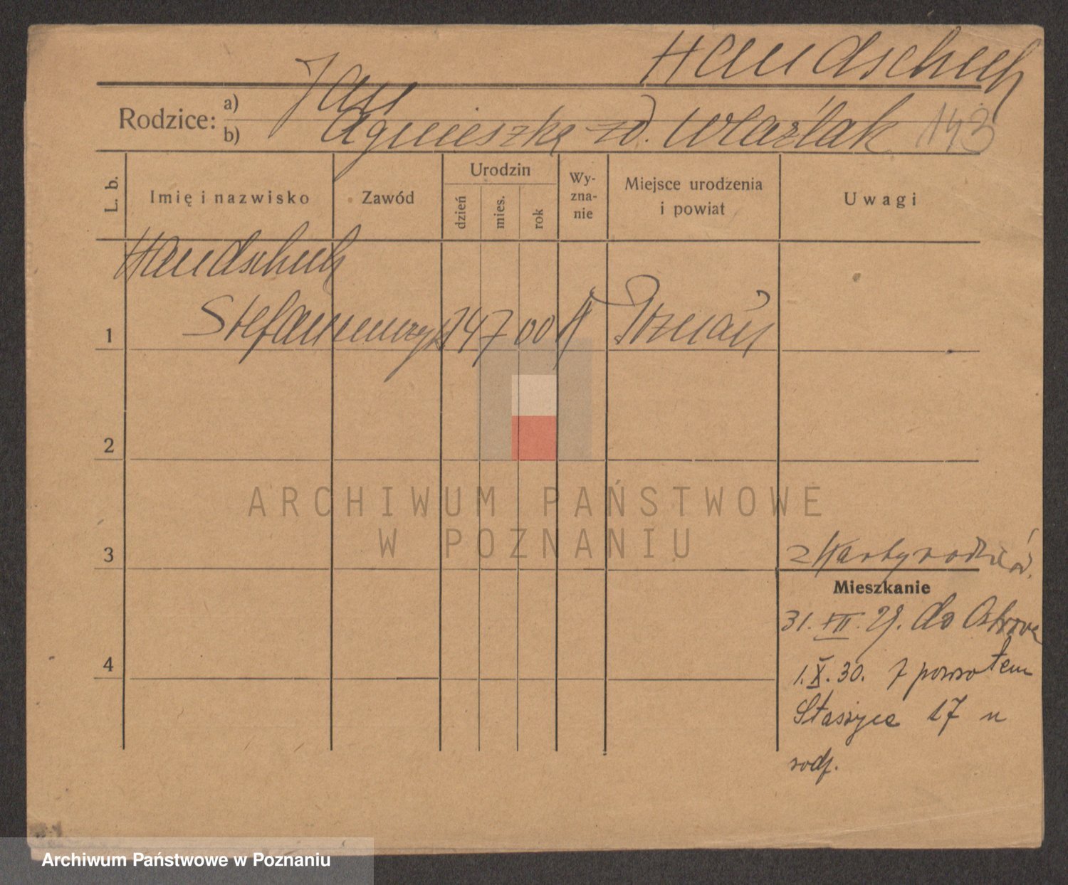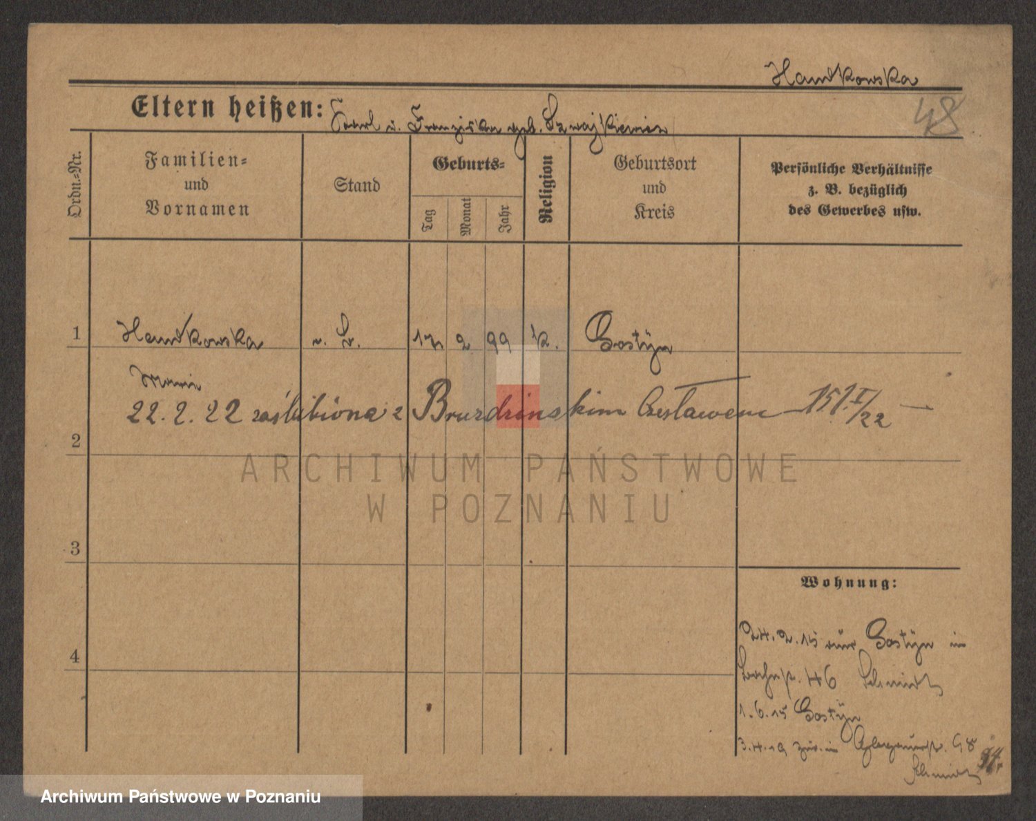Podgląd karty osobowej dostępny jest po kliknięciu na nazwisko lub ikonkę karty. Można dokonywać powiększenia (ikony na górze) lub przechodzić między kolejnymi skanami (strzałki po bokach).