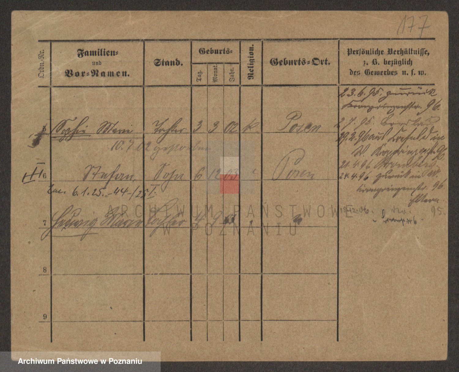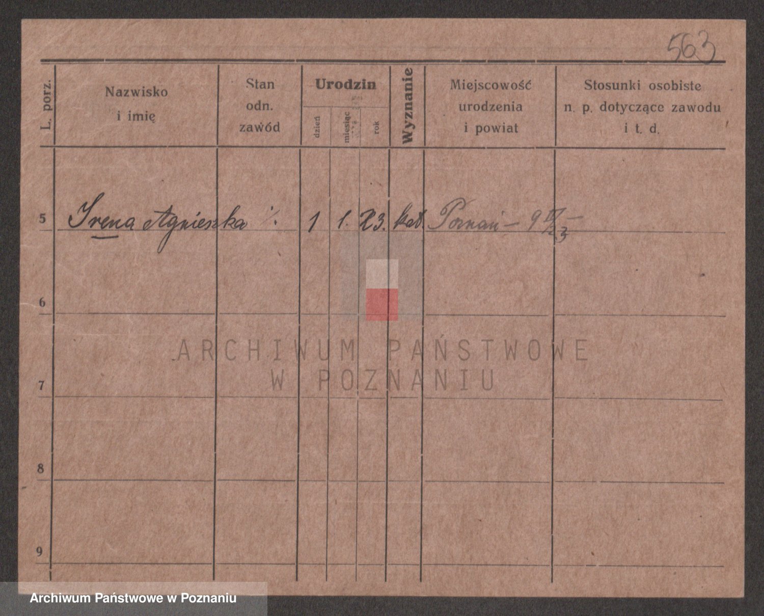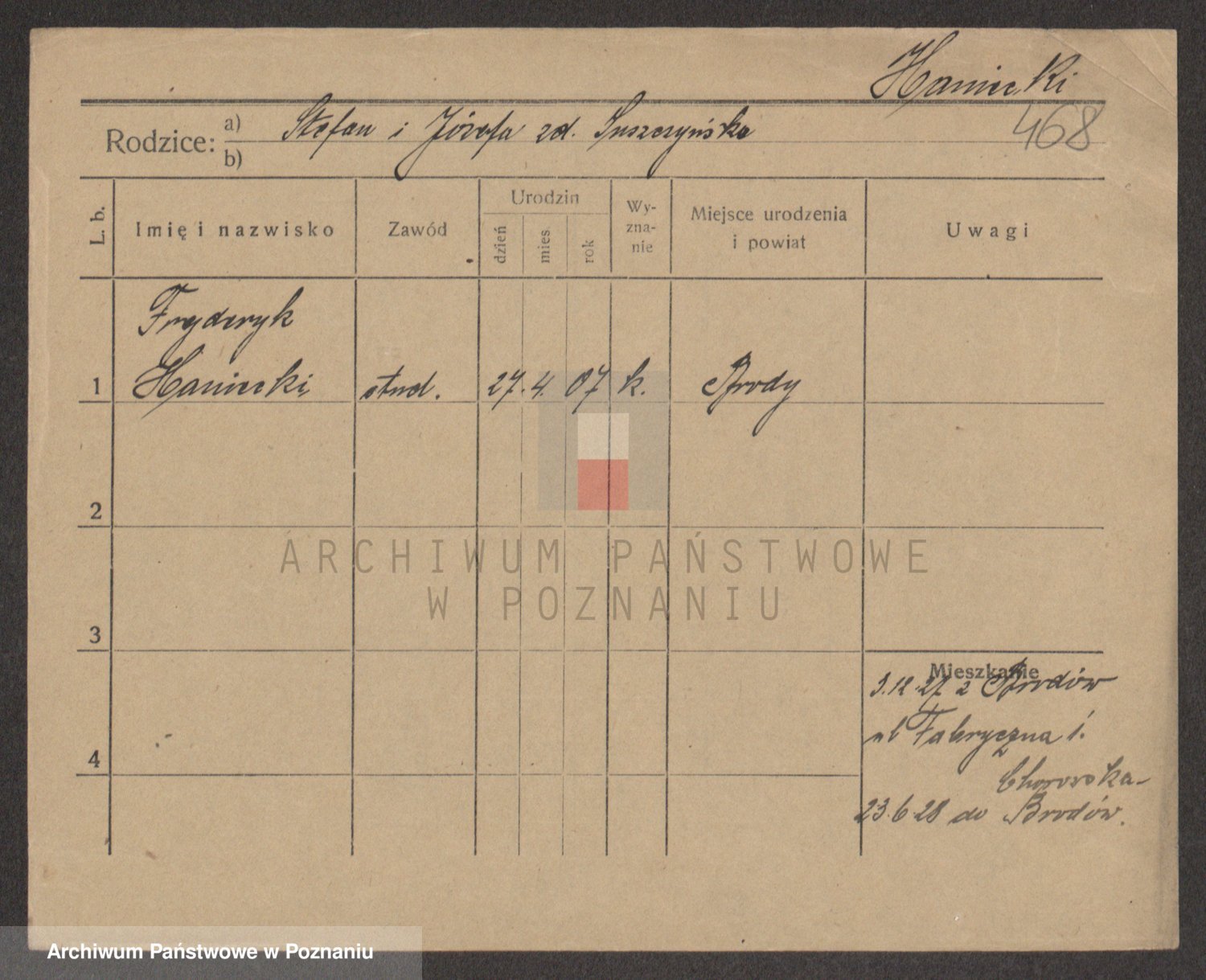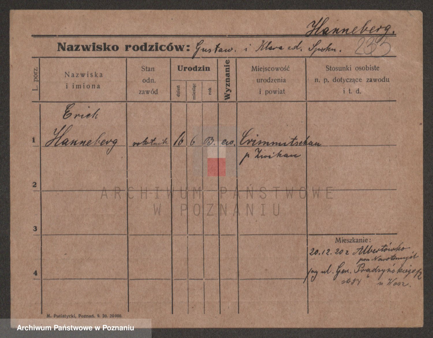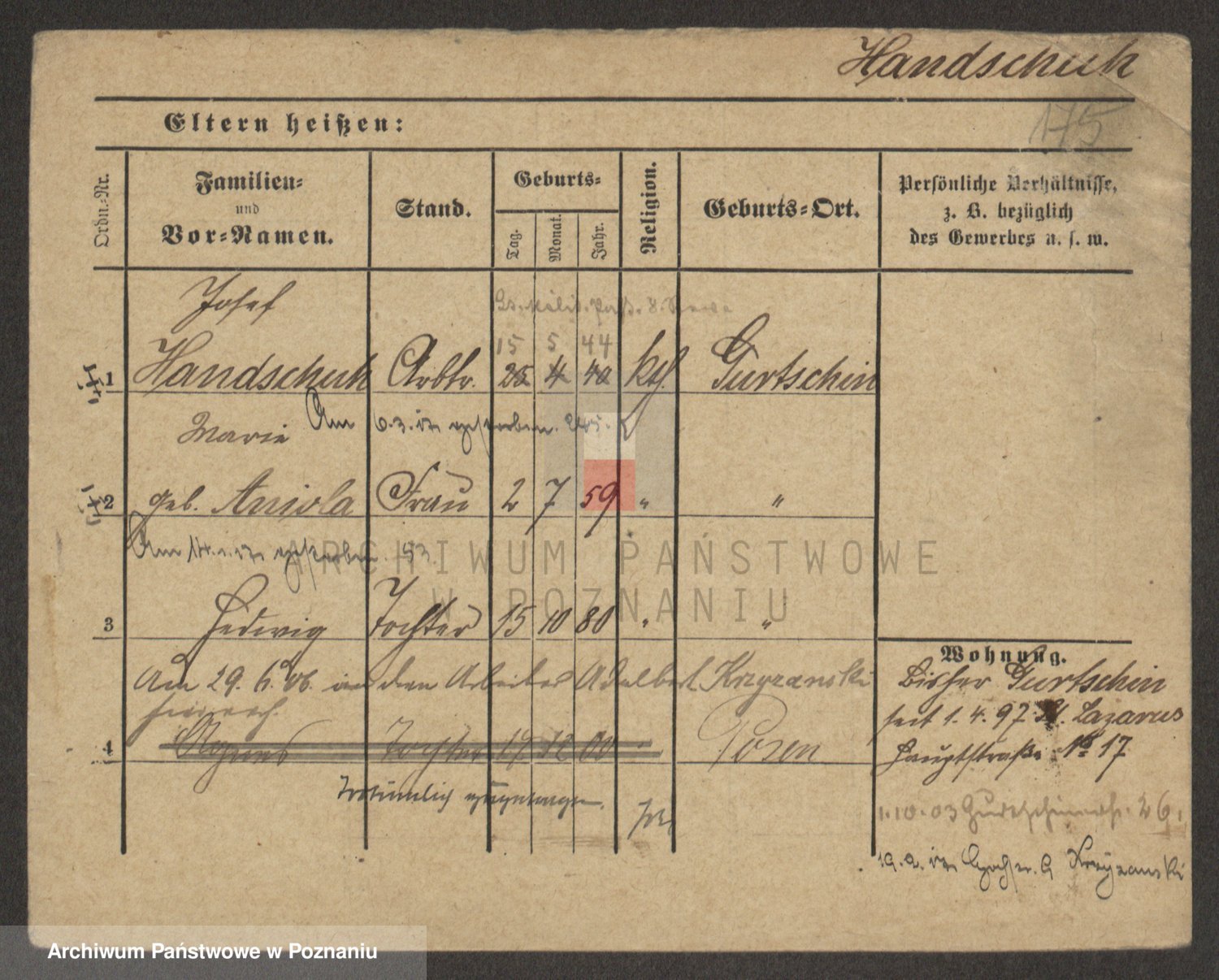 Podgląd karty osobowej dostępny jest po kliknięciu na nazwisko lub ikonkę karty. Można dokonywać powiększenia (ikony na górze) lub przechodzić między kolejnymi skanami (strzałki po bokach).