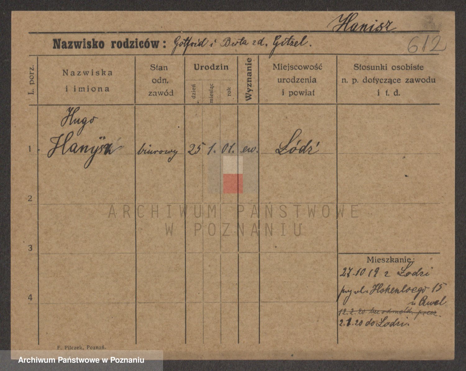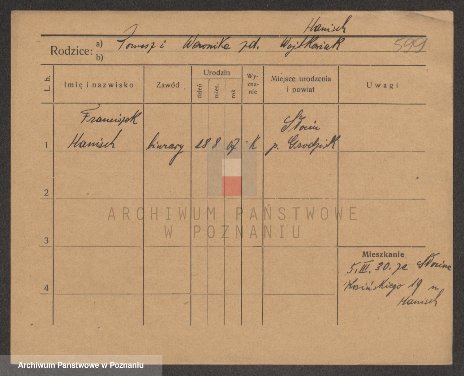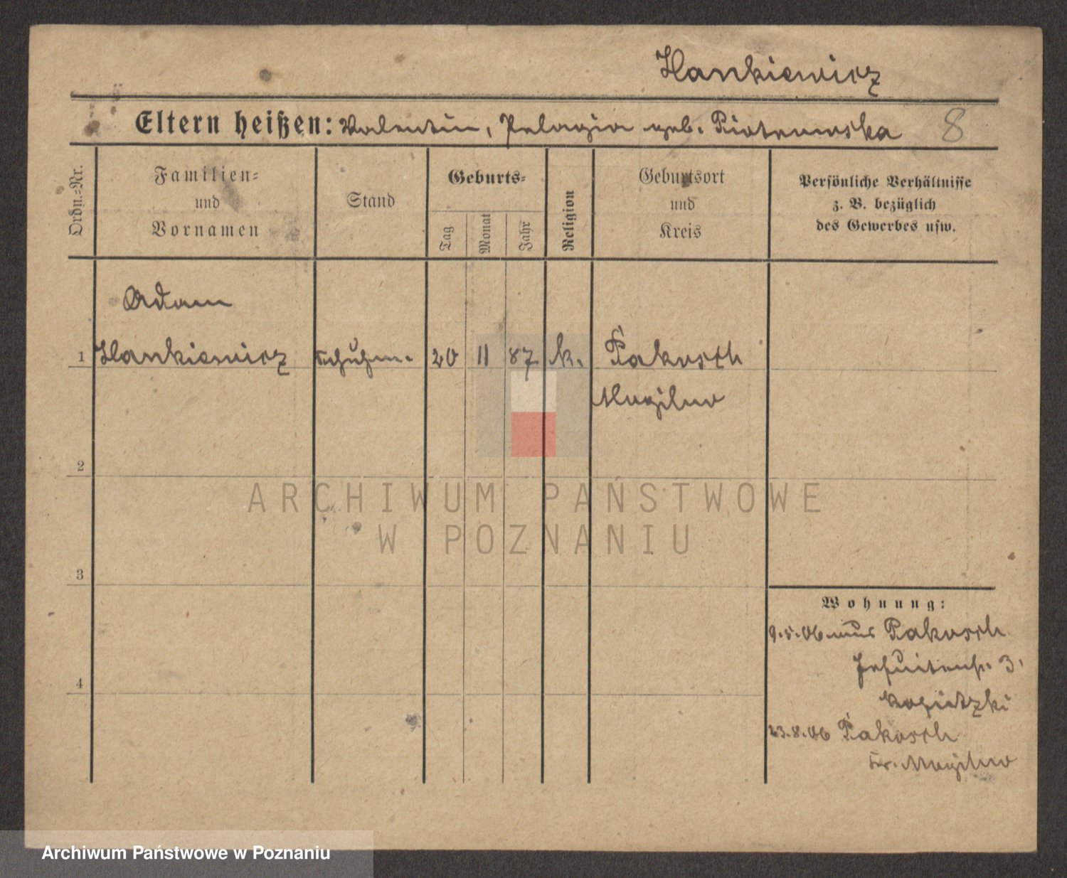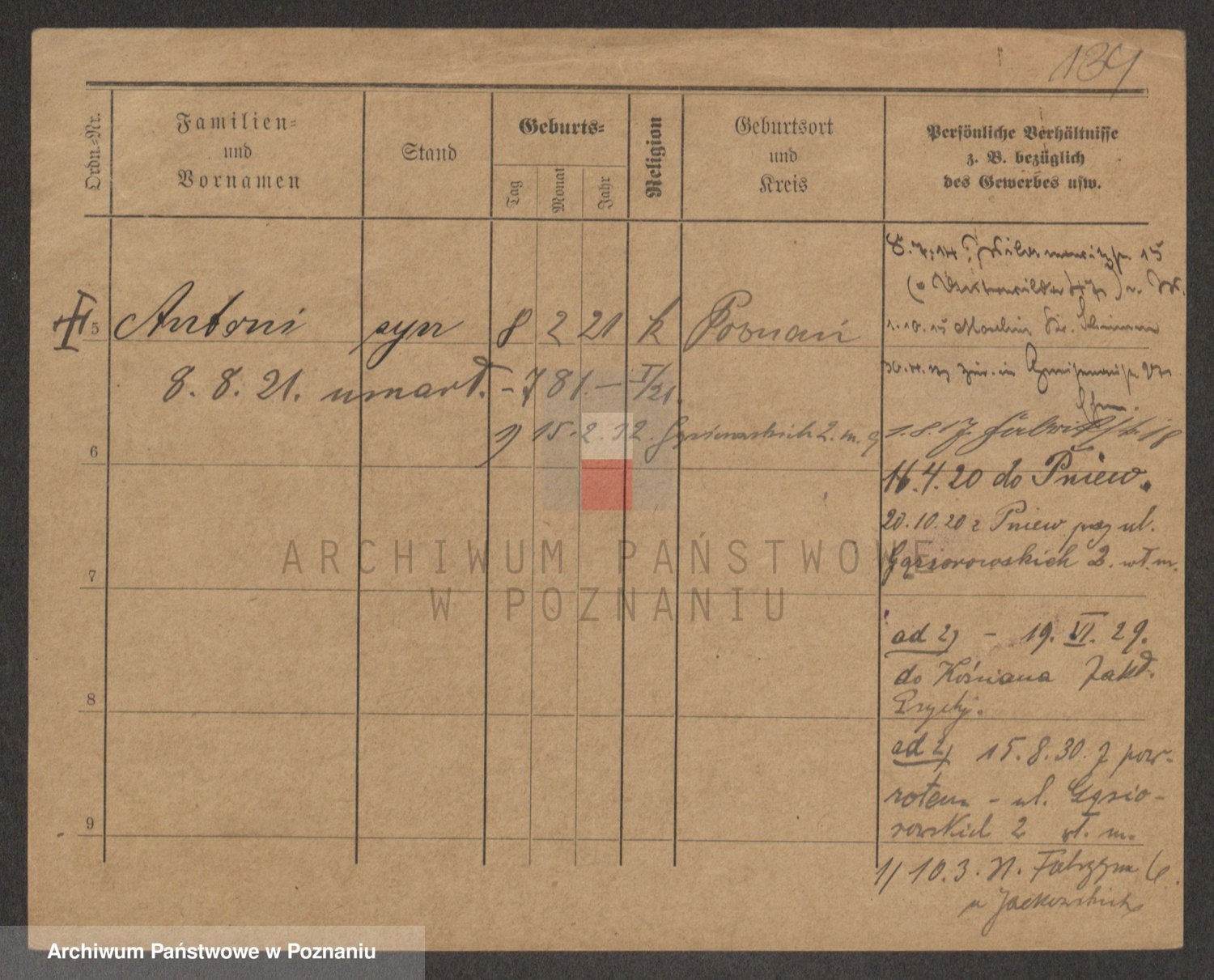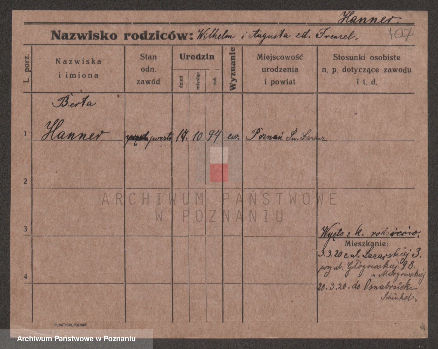 Podgląd karty osobowej dostępny jest po kliknięciu na nazwisko lub ikonkę karty. Można dokonywać powiększenia (ikony na górze) lub przechodzić między kolejnymi skanami (strzałki po bokach).