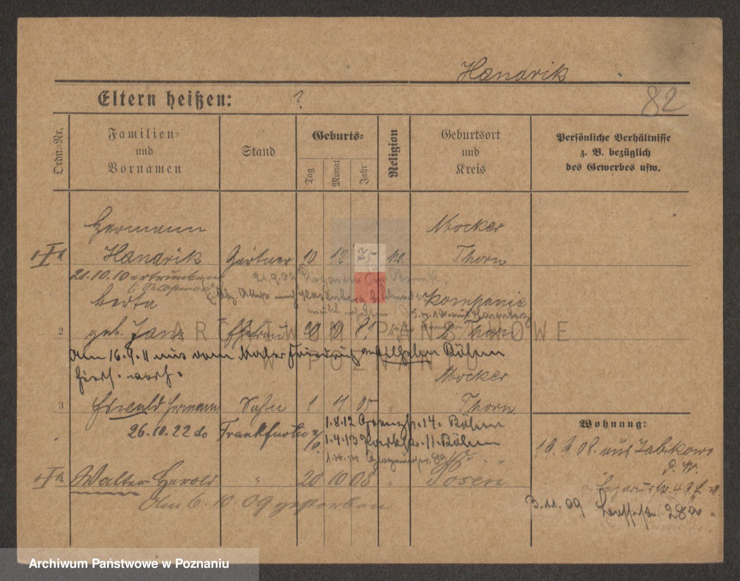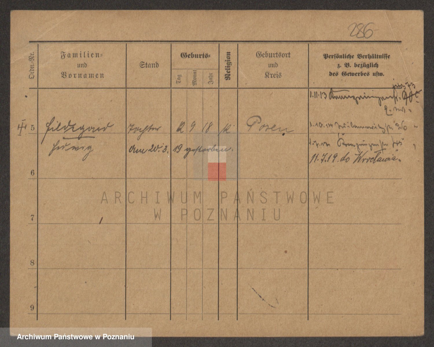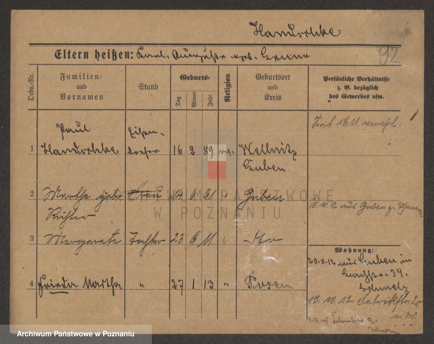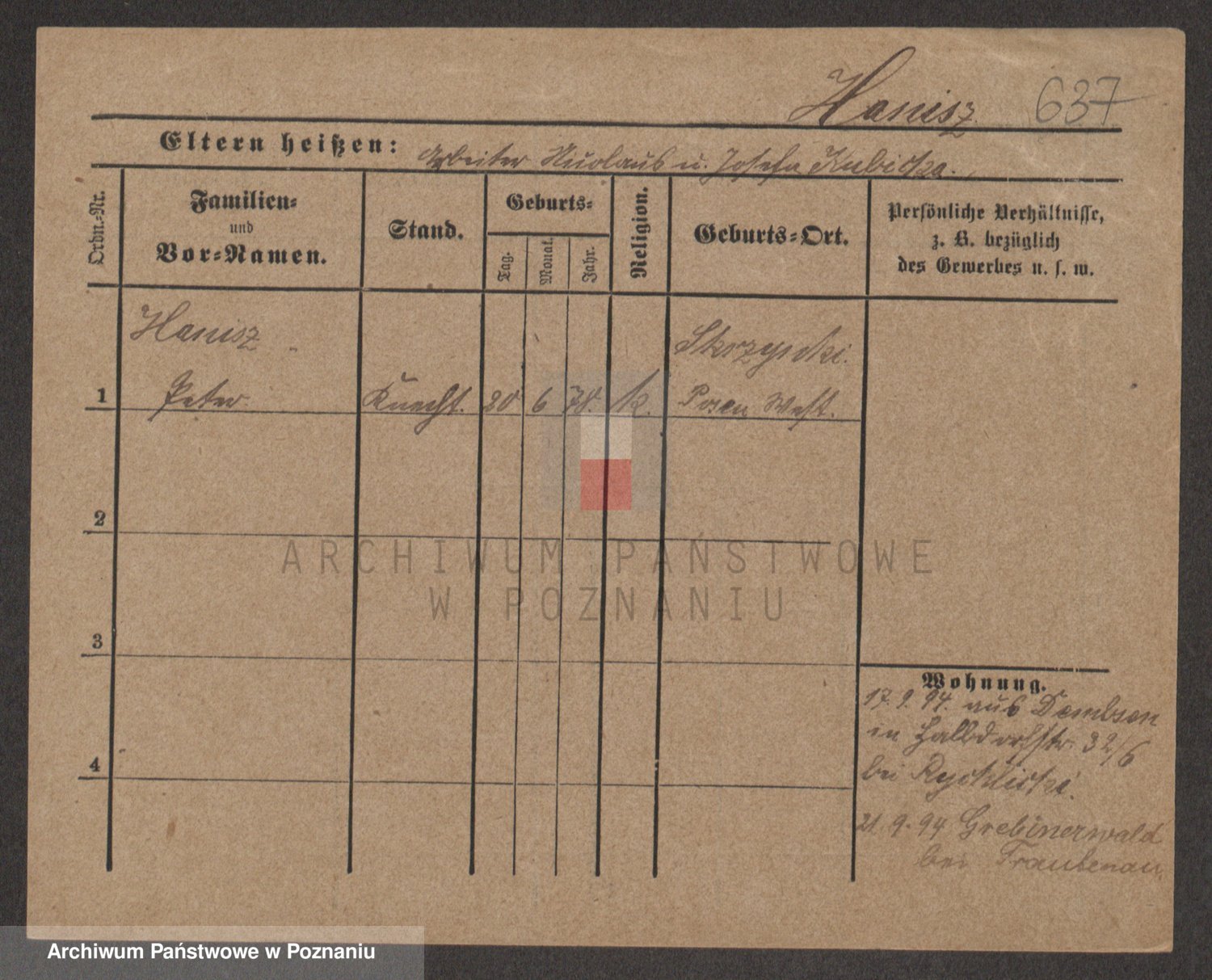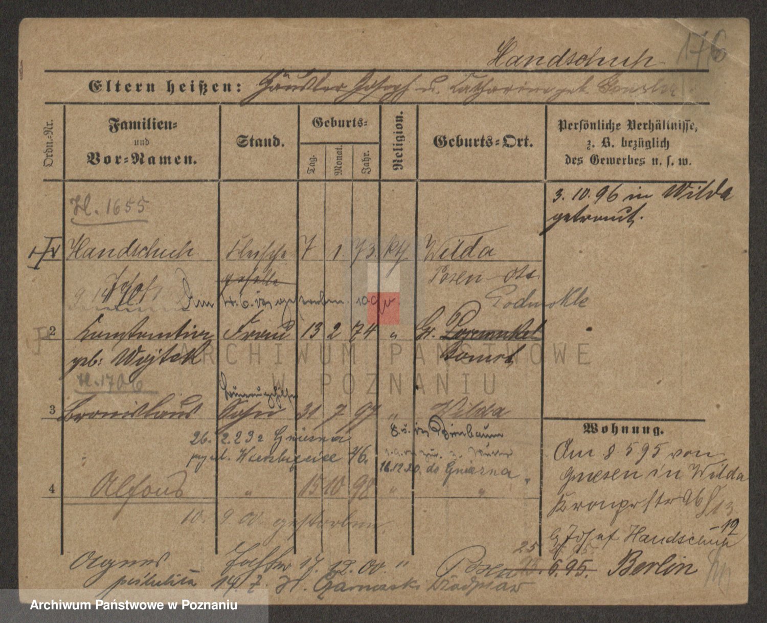 Podgląd karty osobowej dostępny jest po kliknięciu na nazwisko lub ikonkę karty. Można dokonywać powiększenia (ikony na górze) lub przechodzić między kolejnymi skanami (strzałki po bokach).