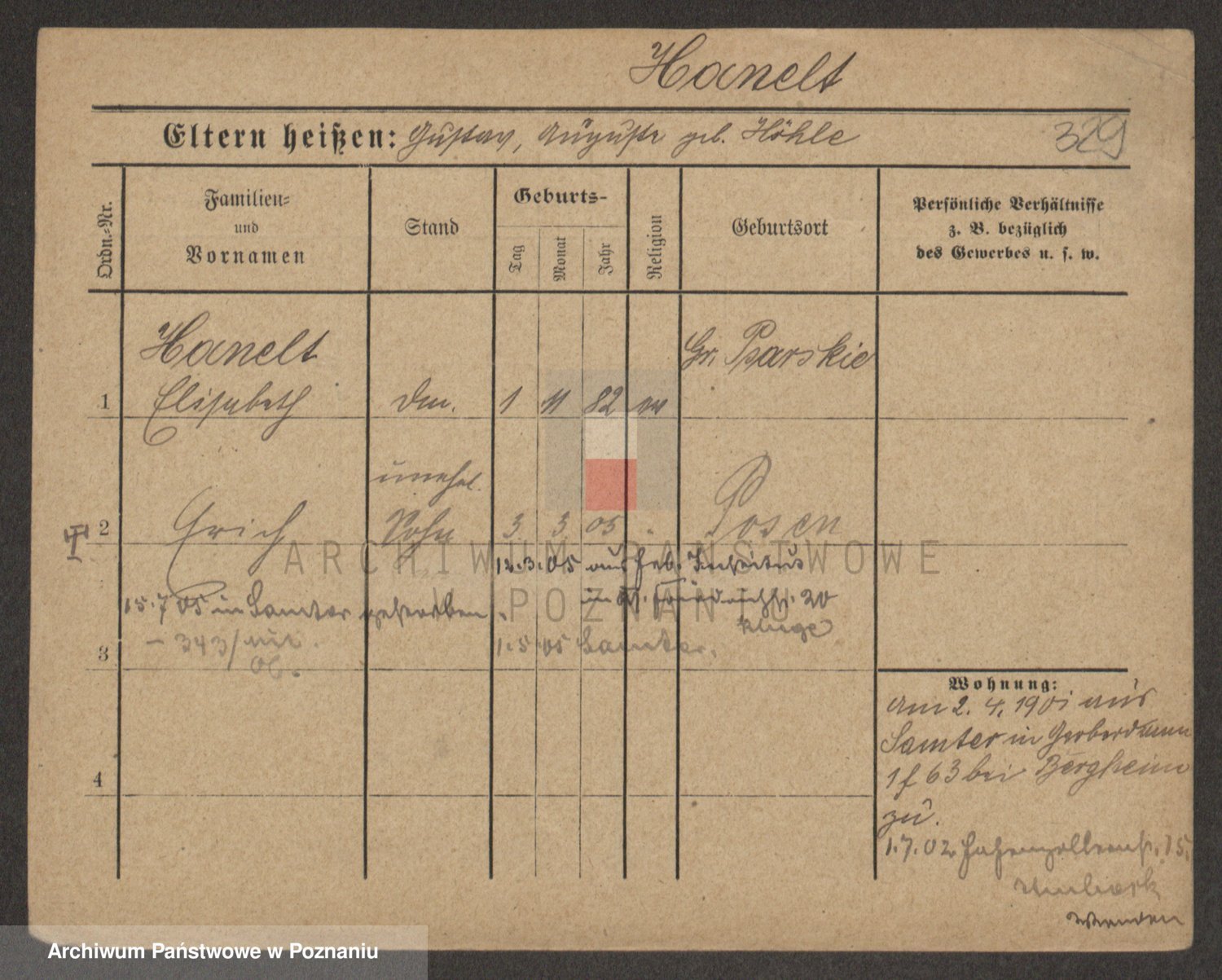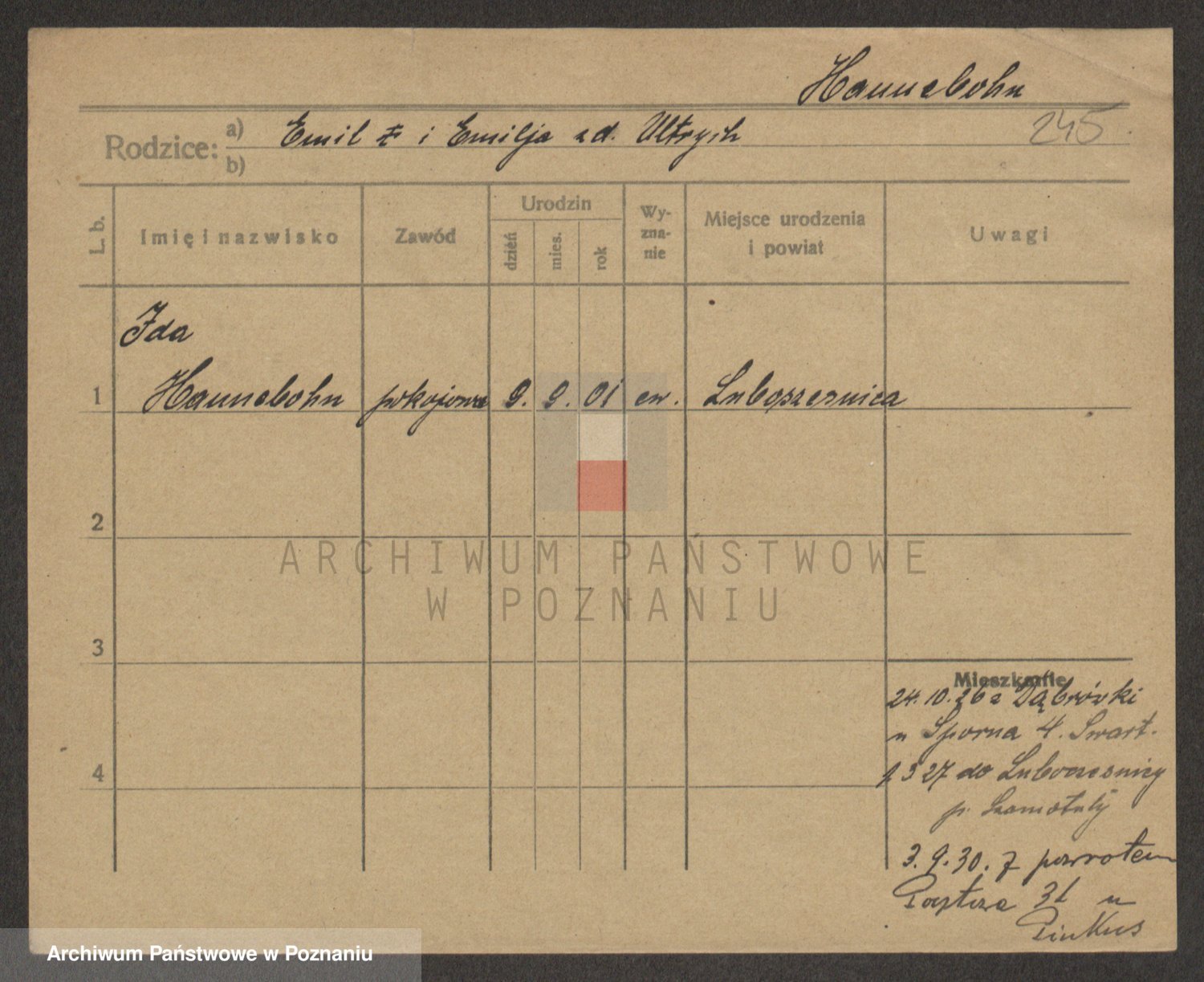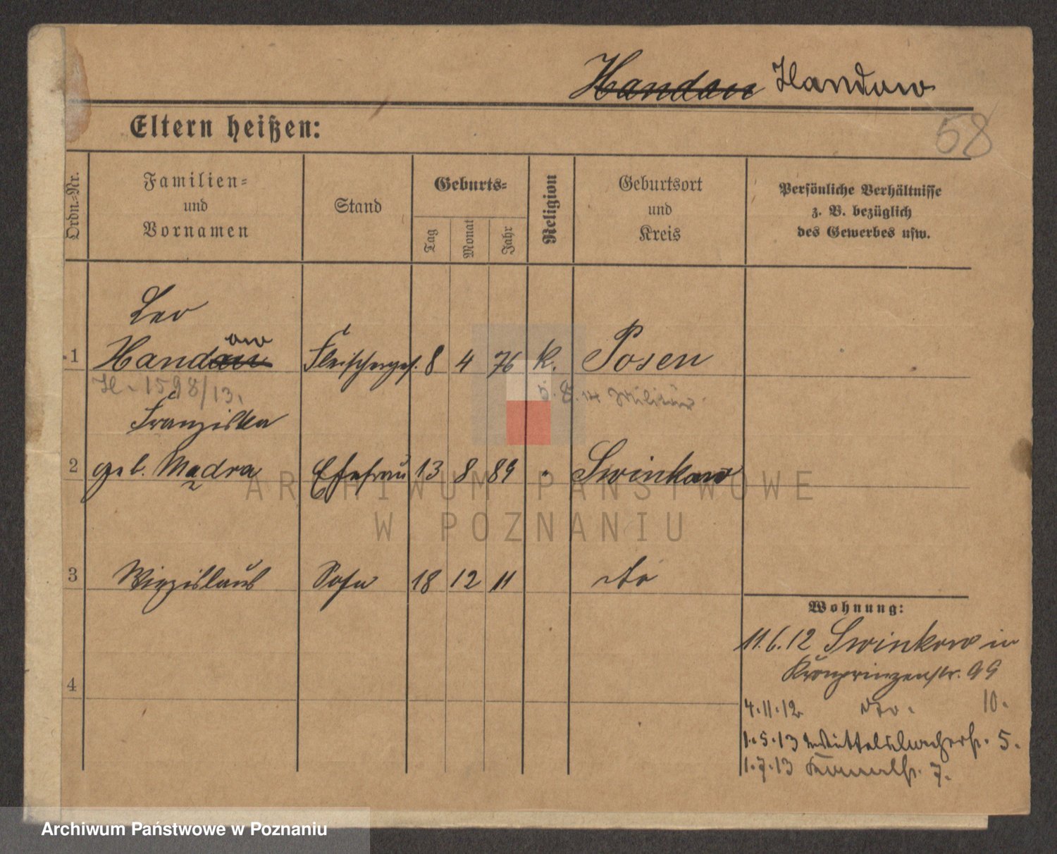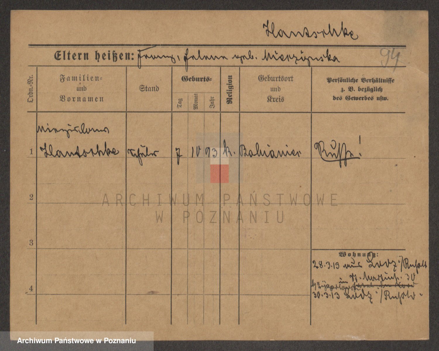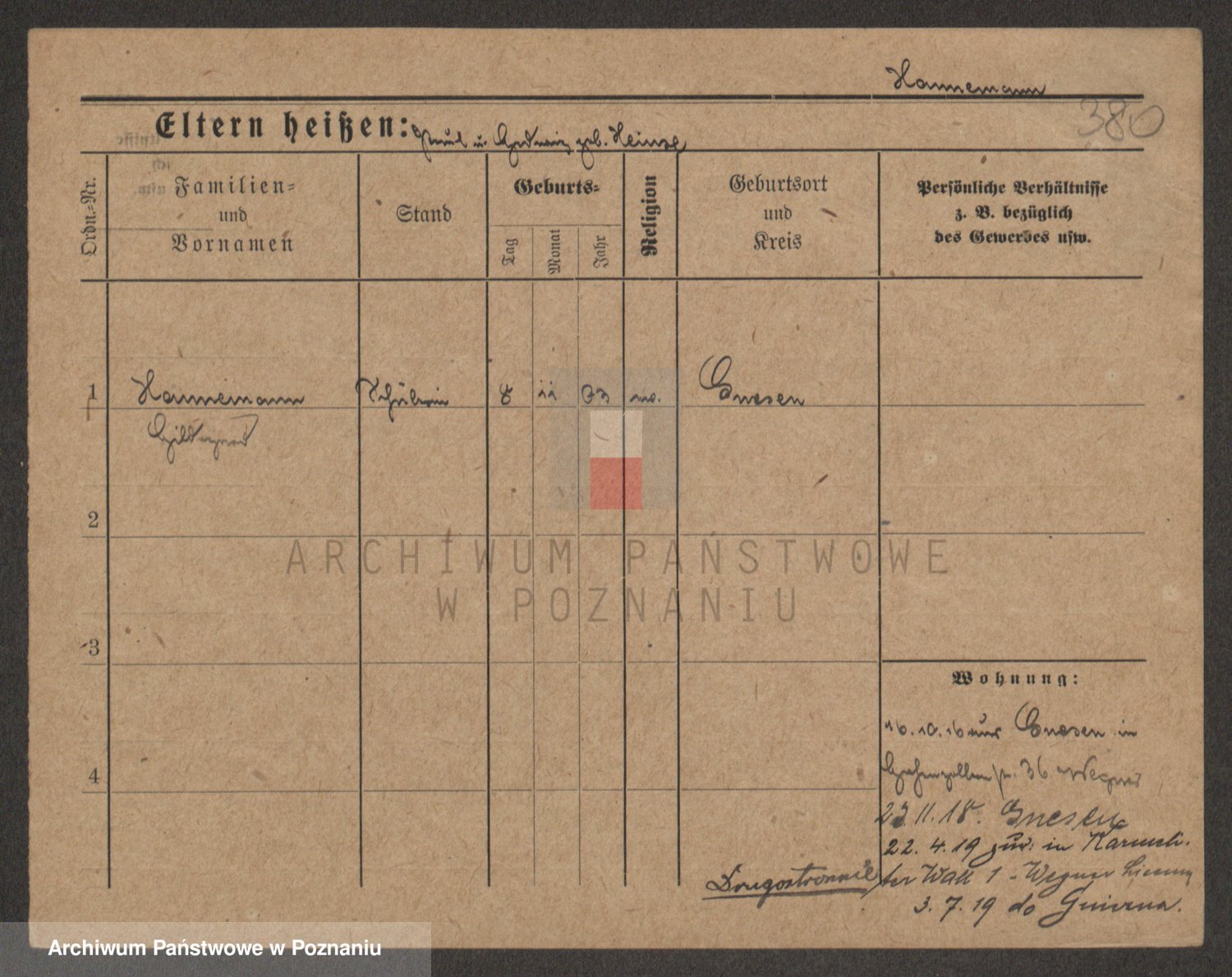 Podgląd karty osobowej dostępny jest po kliknięciu na nazwisko lub ikonkę karty. Można dokonywać powiększenia (ikony na górze) lub przechodzić między kolejnymi skanami (strzałki po bokach).