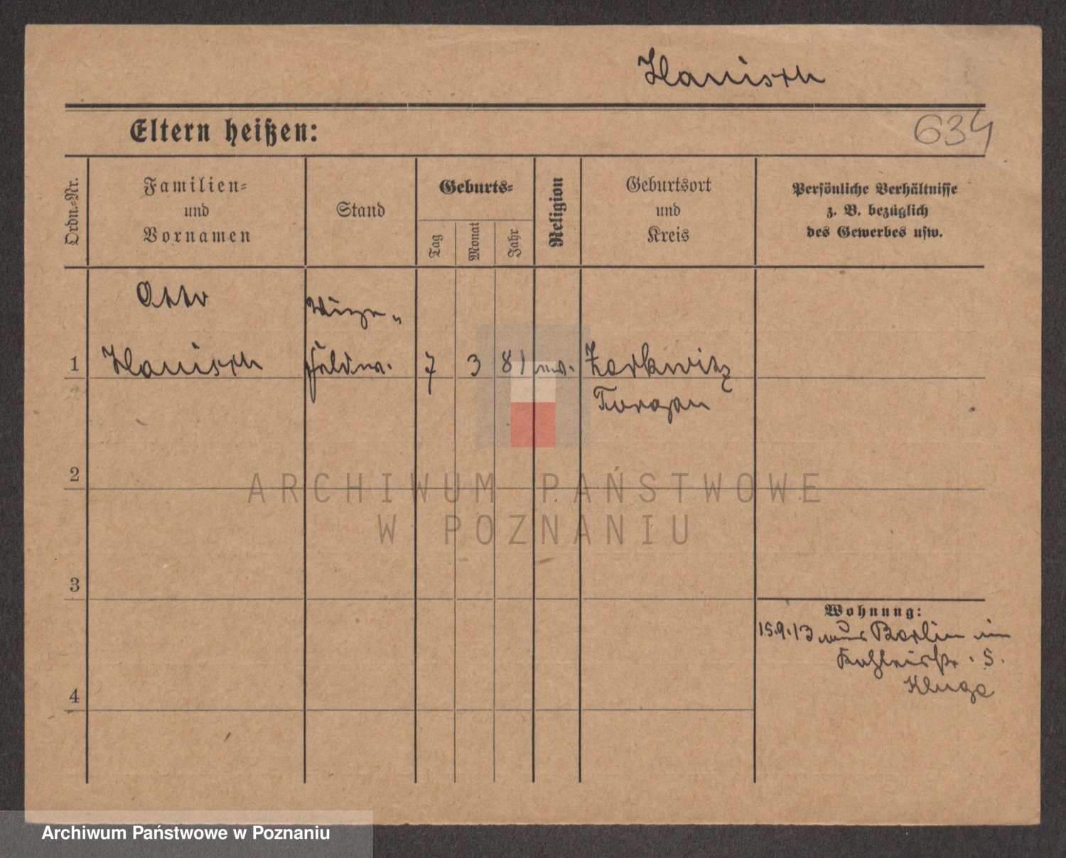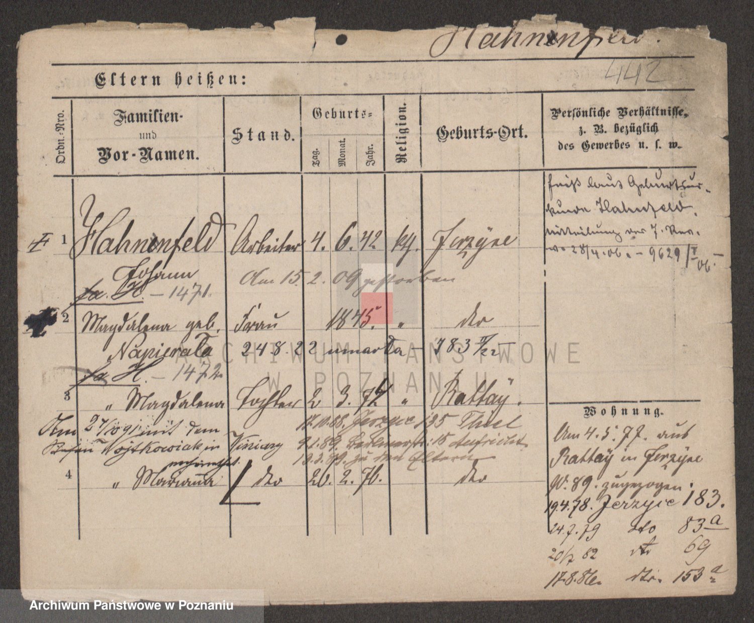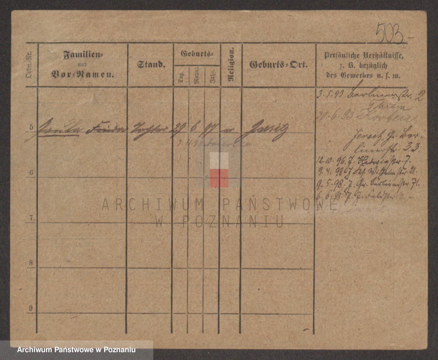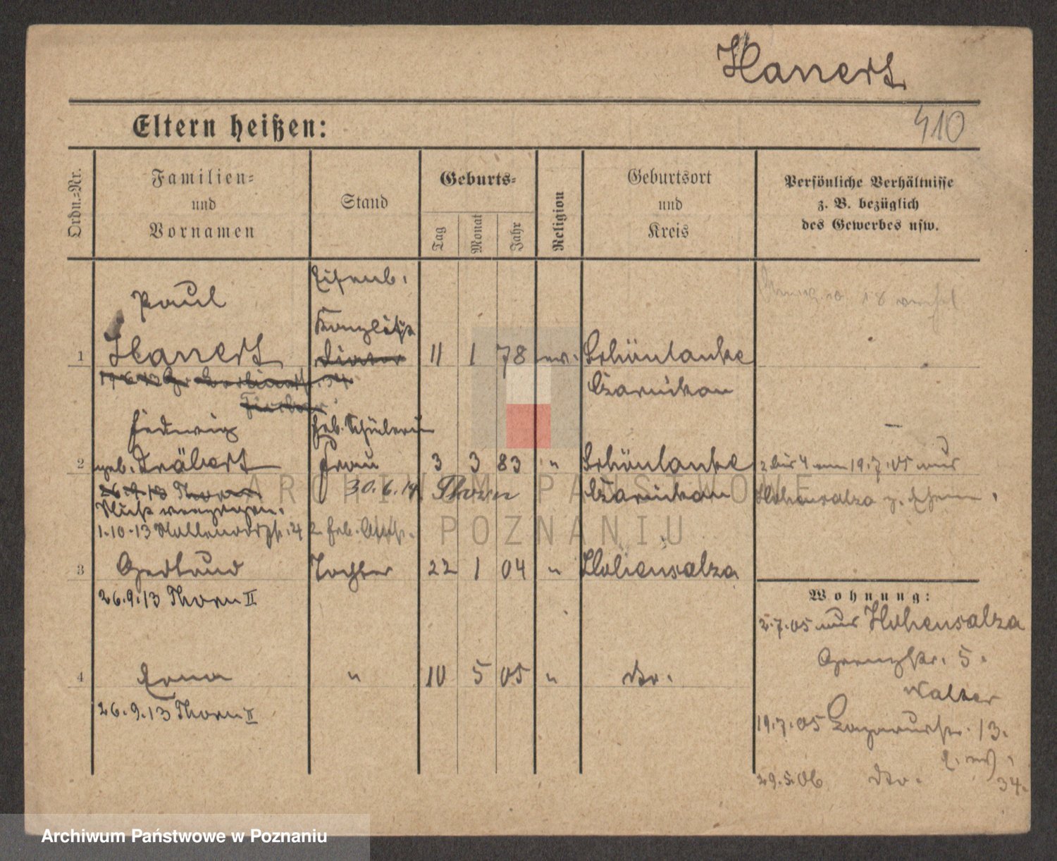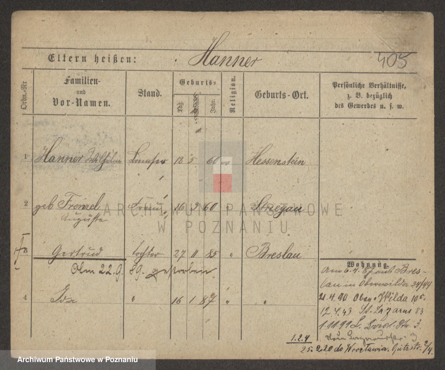 Podgląd karty osobowej dostępny jest po kliknięciu na nazwisko lub ikonkę karty. Można dokonywać powiększenia (ikony na górze) lub przechodzić między kolejnymi skanami (strzałki po bokach).