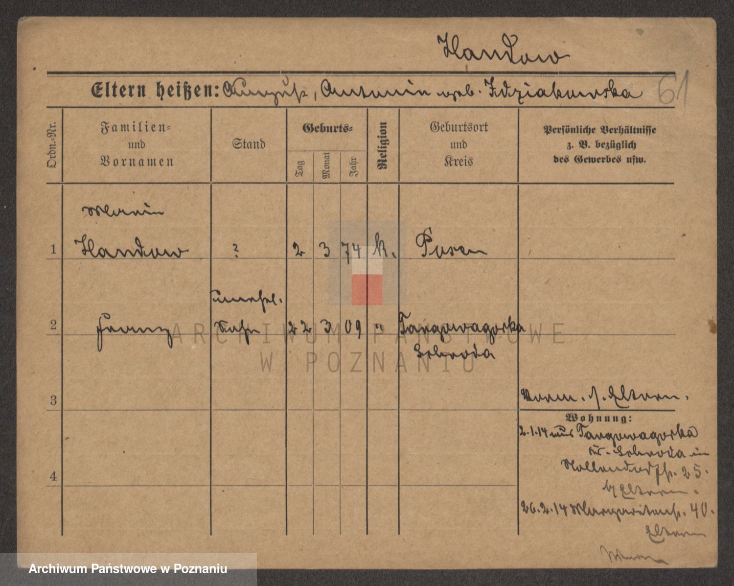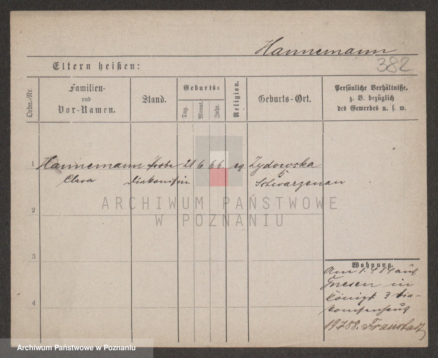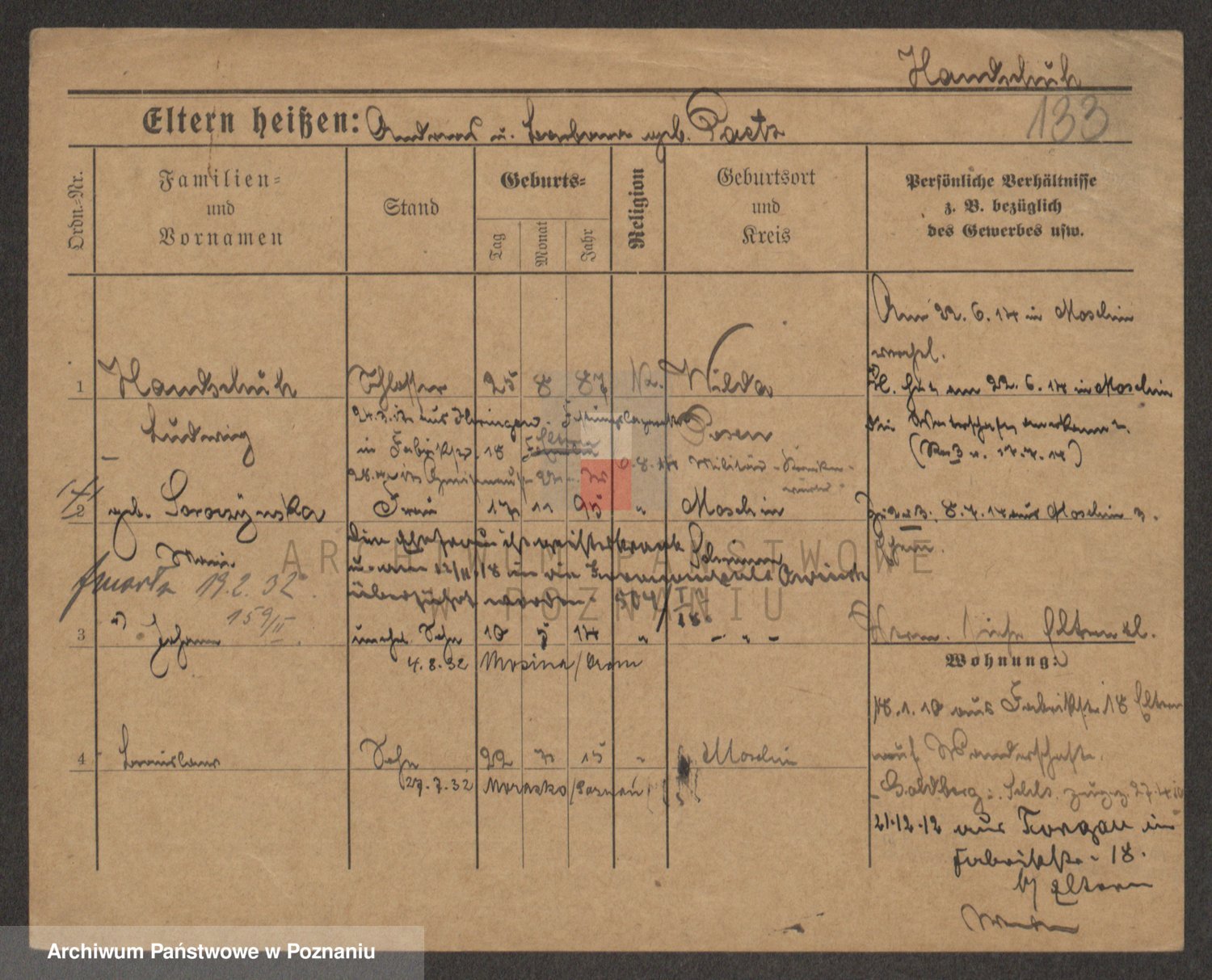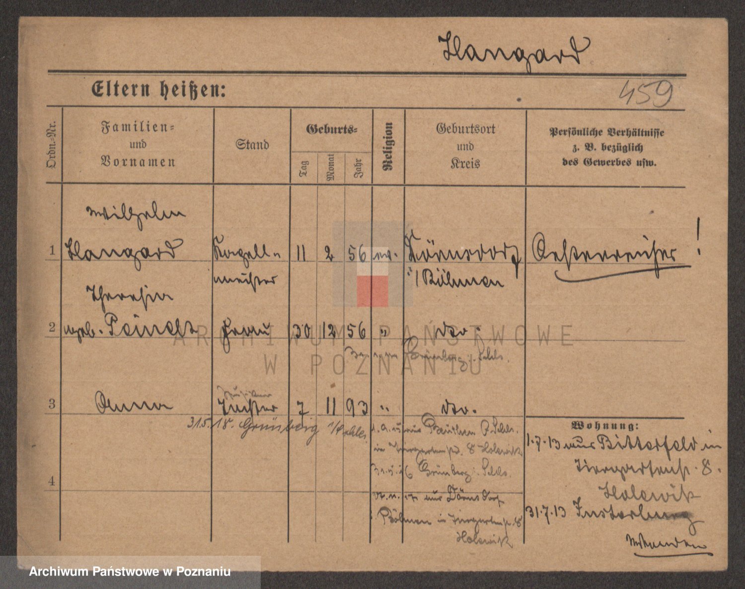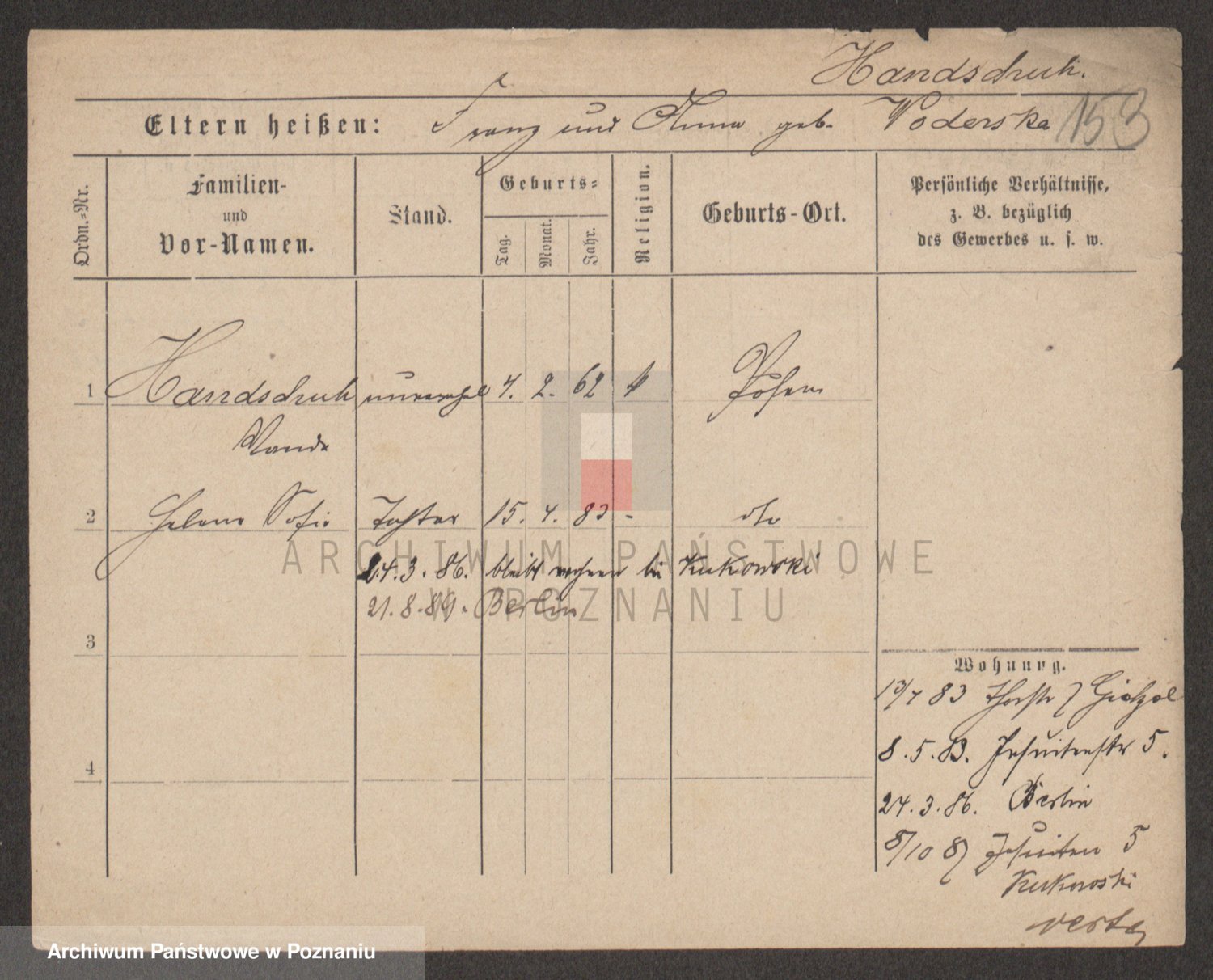 Podgląd karty osobowej dostępny jest po kliknięciu na nazwisko lub ikonkę karty. Można dokonywać powiększenia (ikony na górze) lub przechodzić między kolejnymi skanami (strzałki po bokach).
