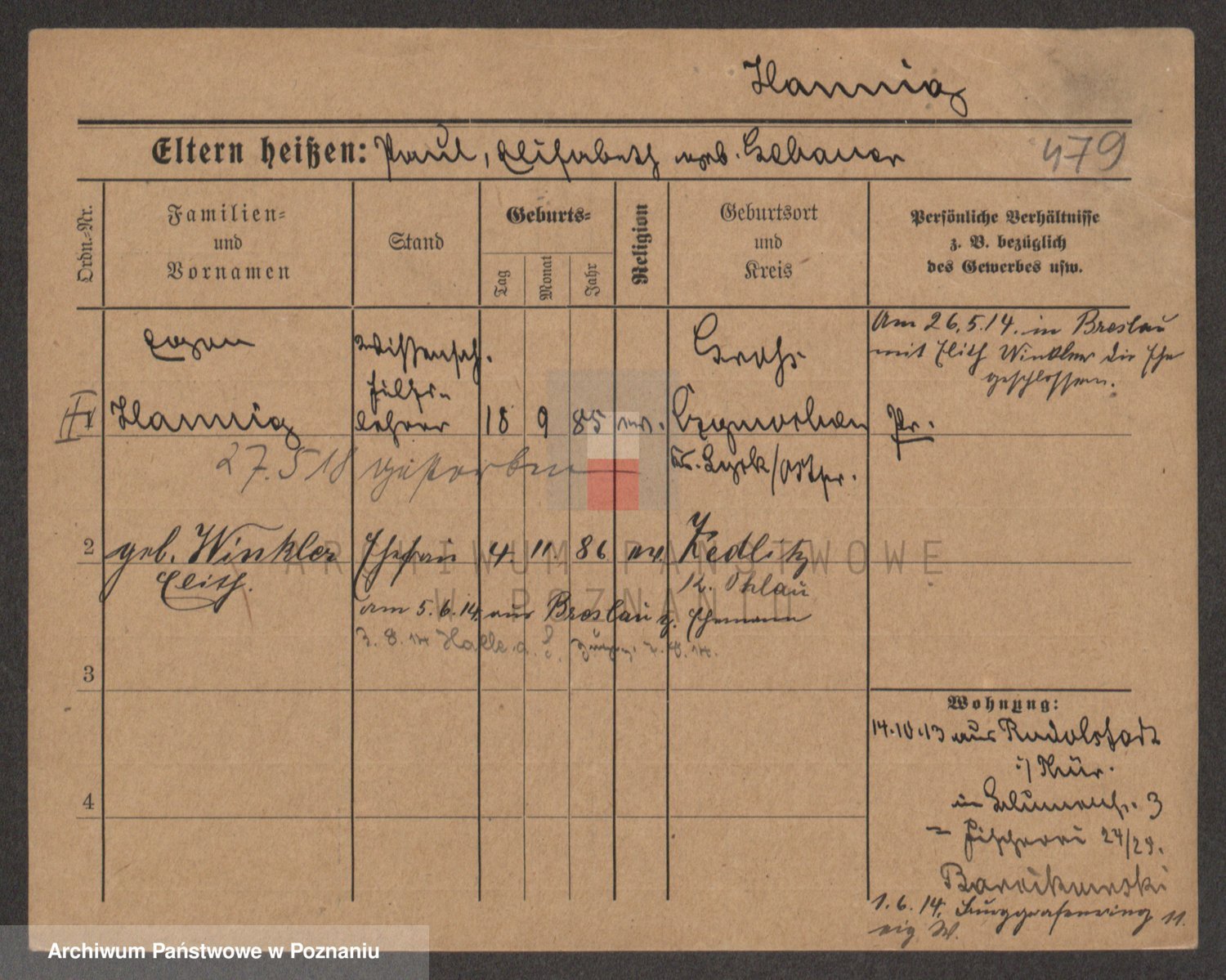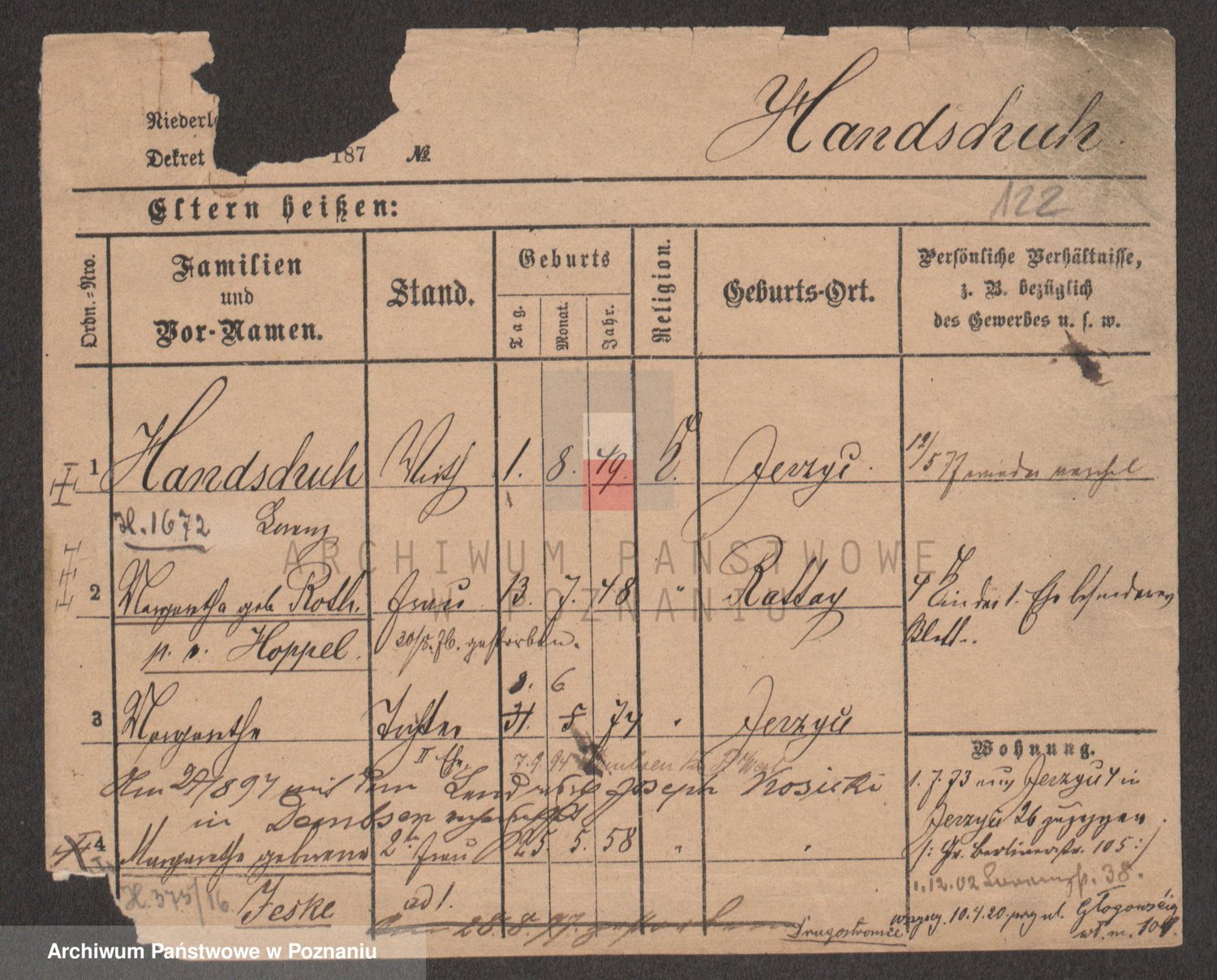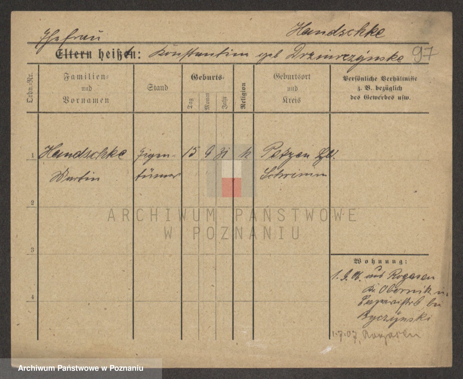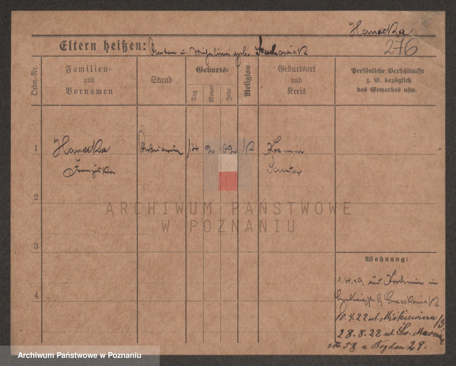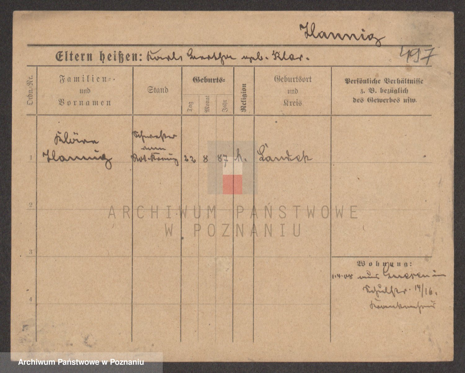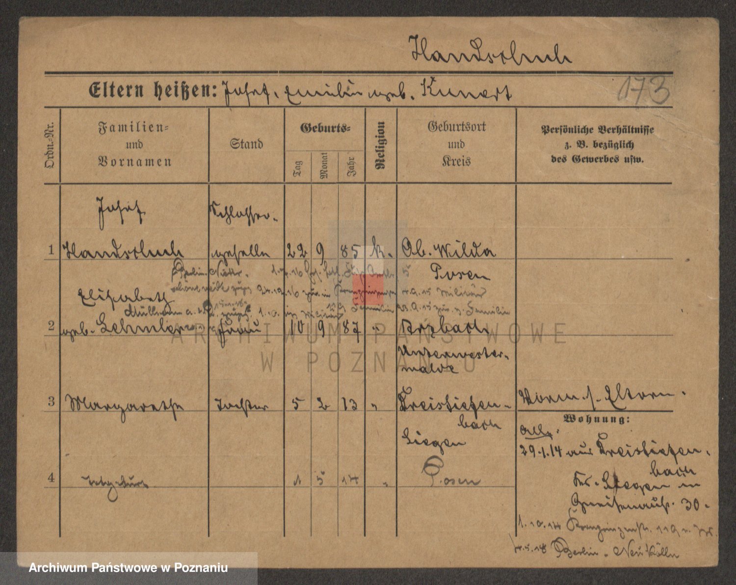 Podgląd karty osobowej dostępny jest po kliknięciu na nazwisko lub ikonkę karty. Można dokonywać powiększenia (ikony na górze) lub przechodzić między kolejnymi skanami (strzałki po bokach).