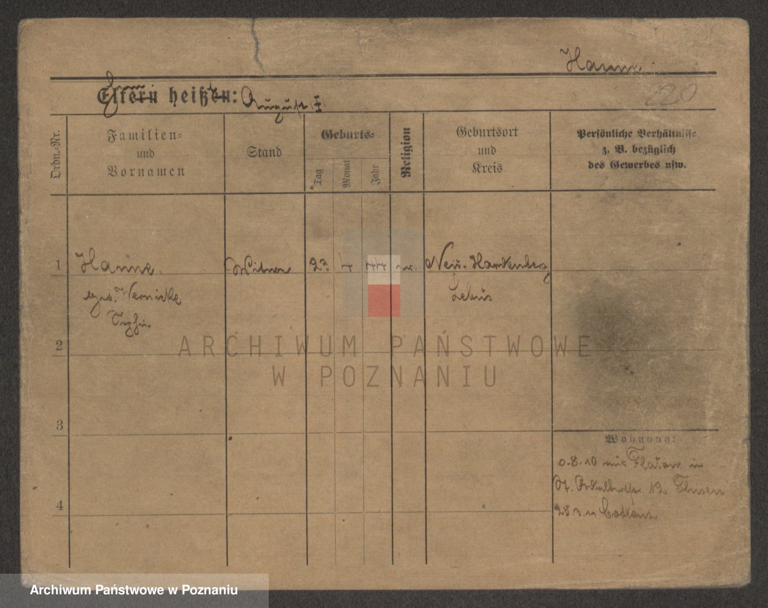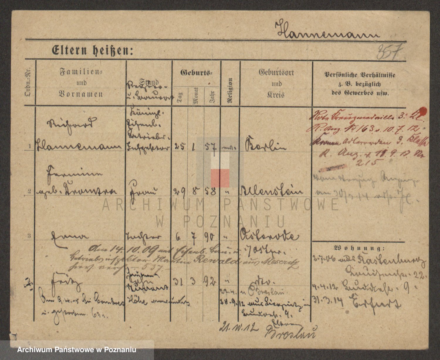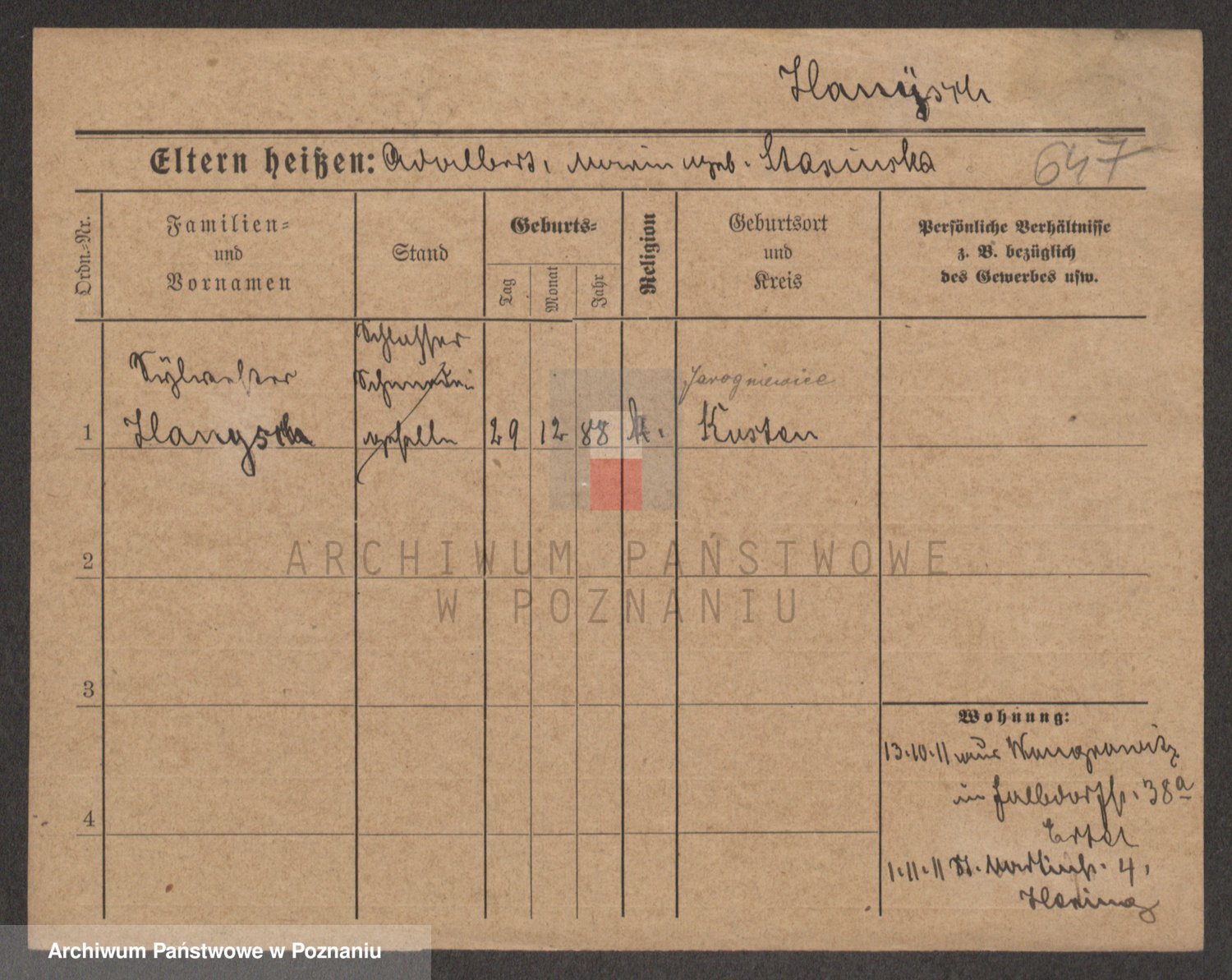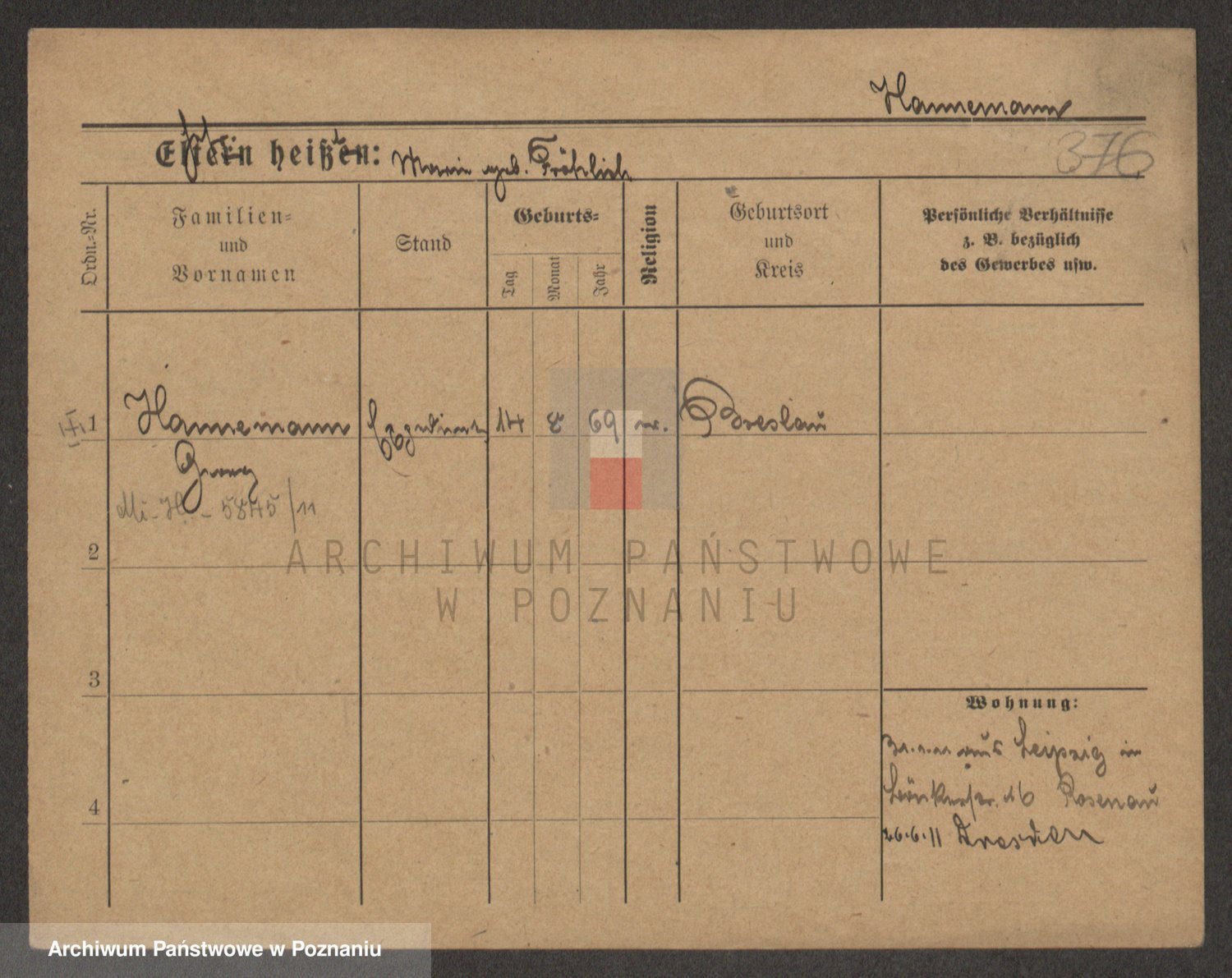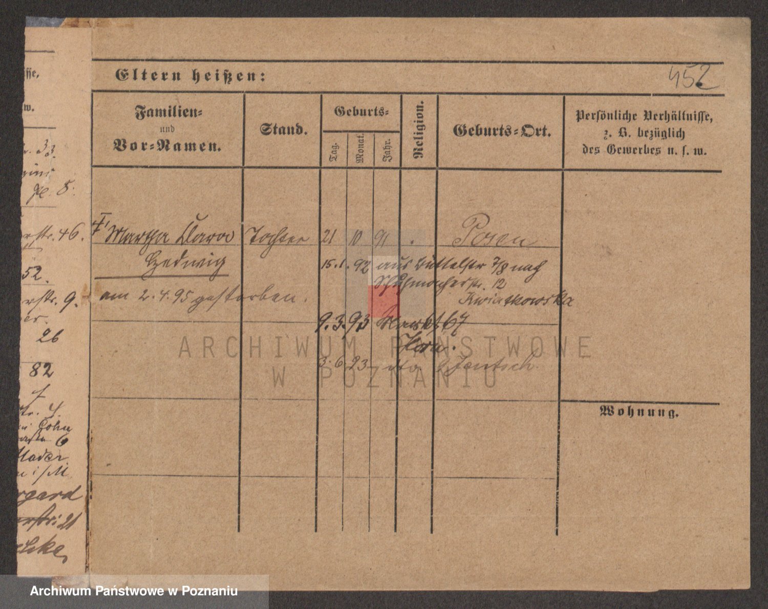 Podgląd karty osobowej dostępny jest po kliknięciu na nazwisko lub ikonkę karty. Można dokonywać powiększenia (ikony na górze) lub przechodzić między kolejnymi skanami (strzałki po bokach).