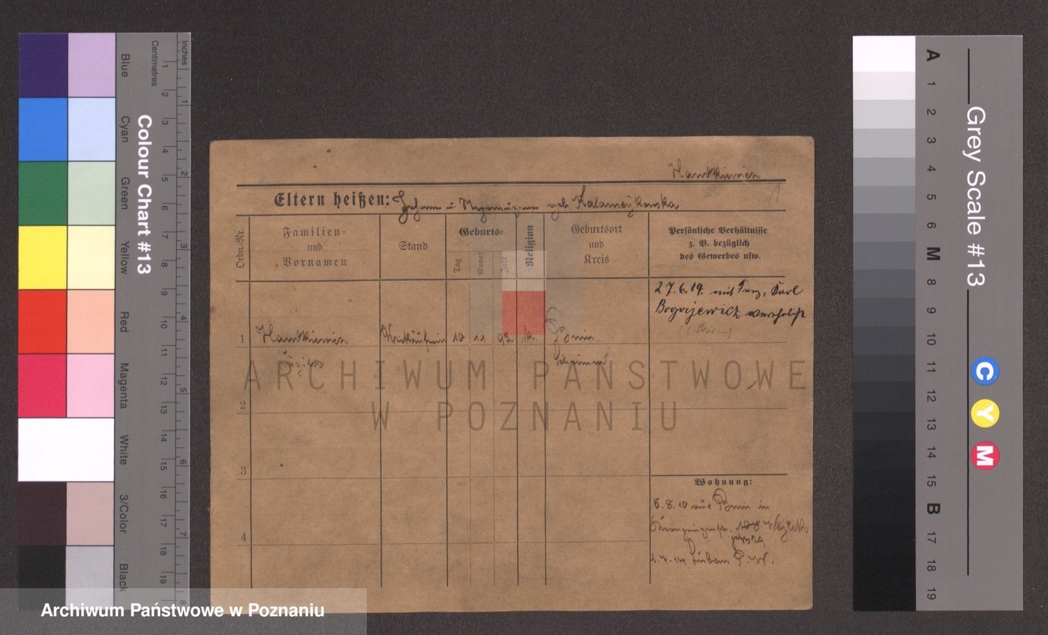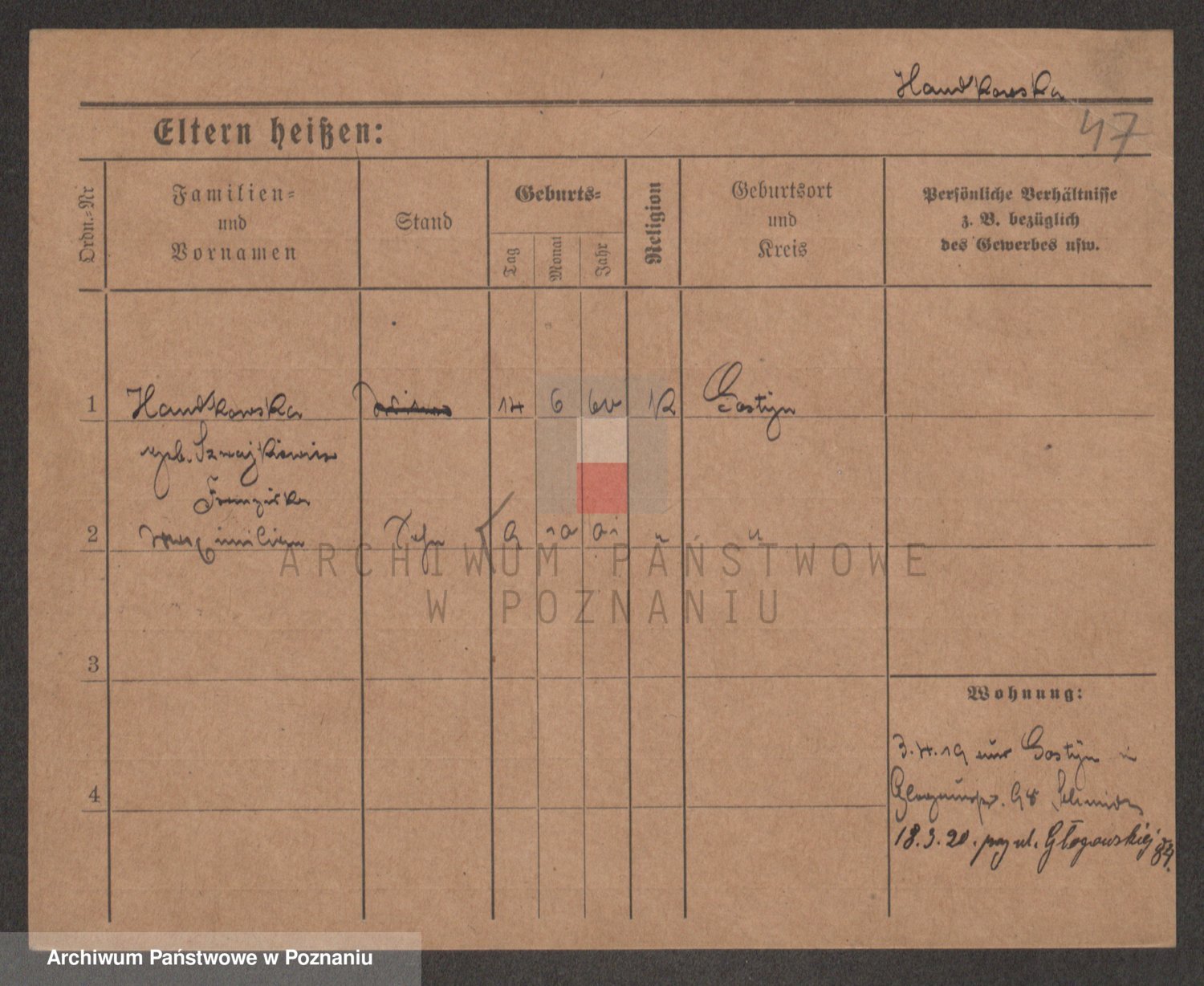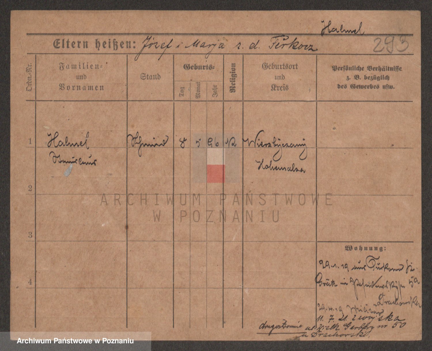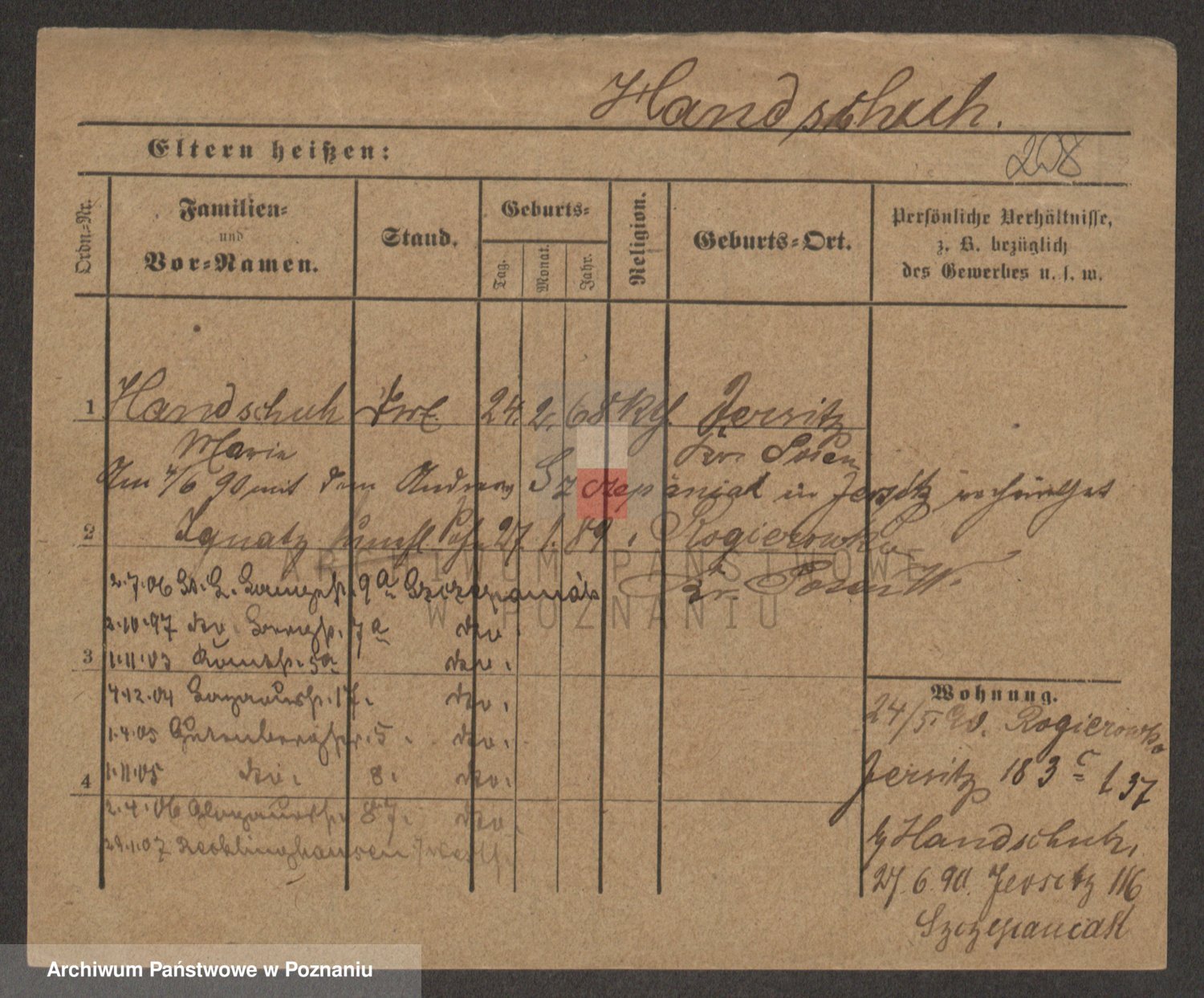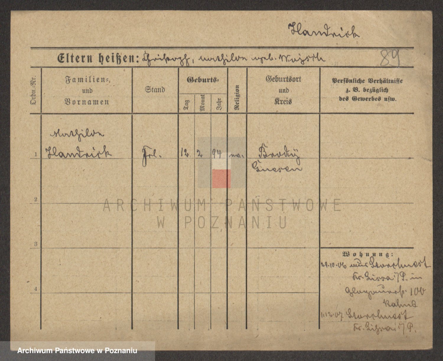 Podgląd karty osobowej dostępny jest po kliknięciu na nazwisko lub ikonkę karty. Można dokonywać powiększenia (ikony na górze) lub przechodzić między kolejnymi skanami (strzałki po bokach).