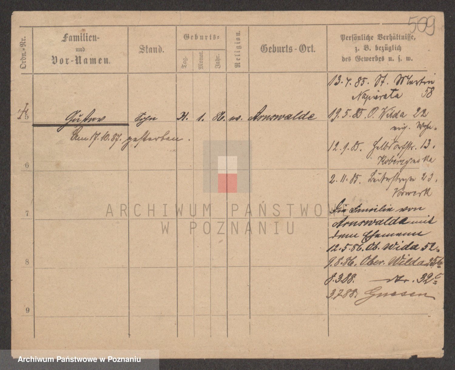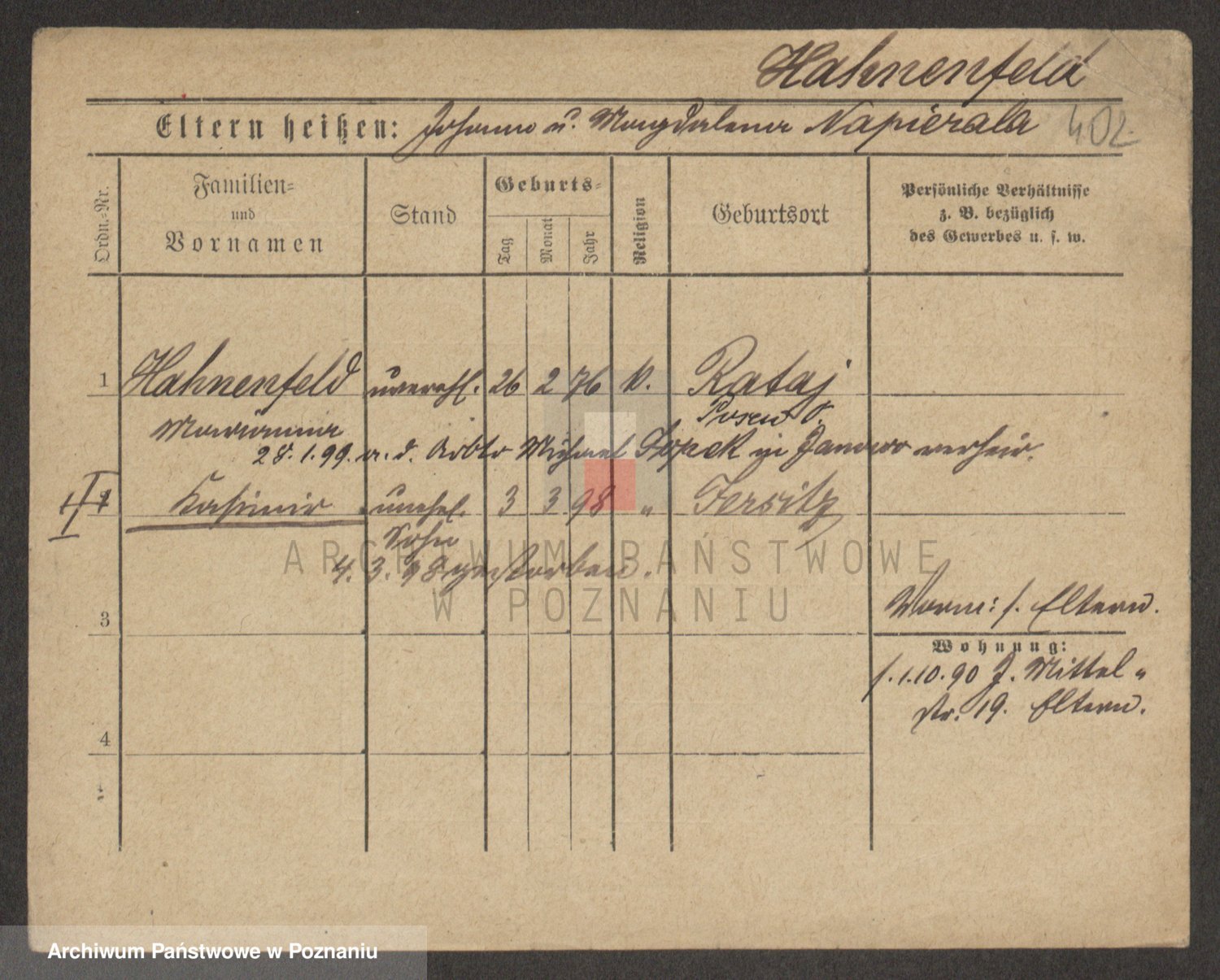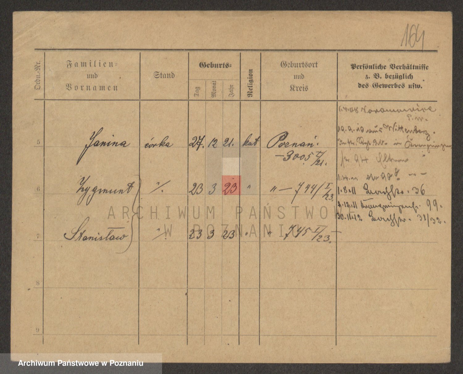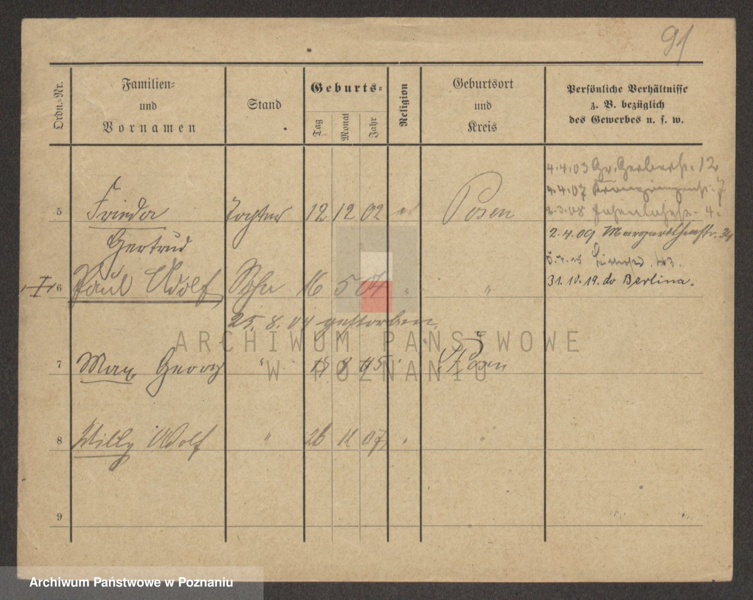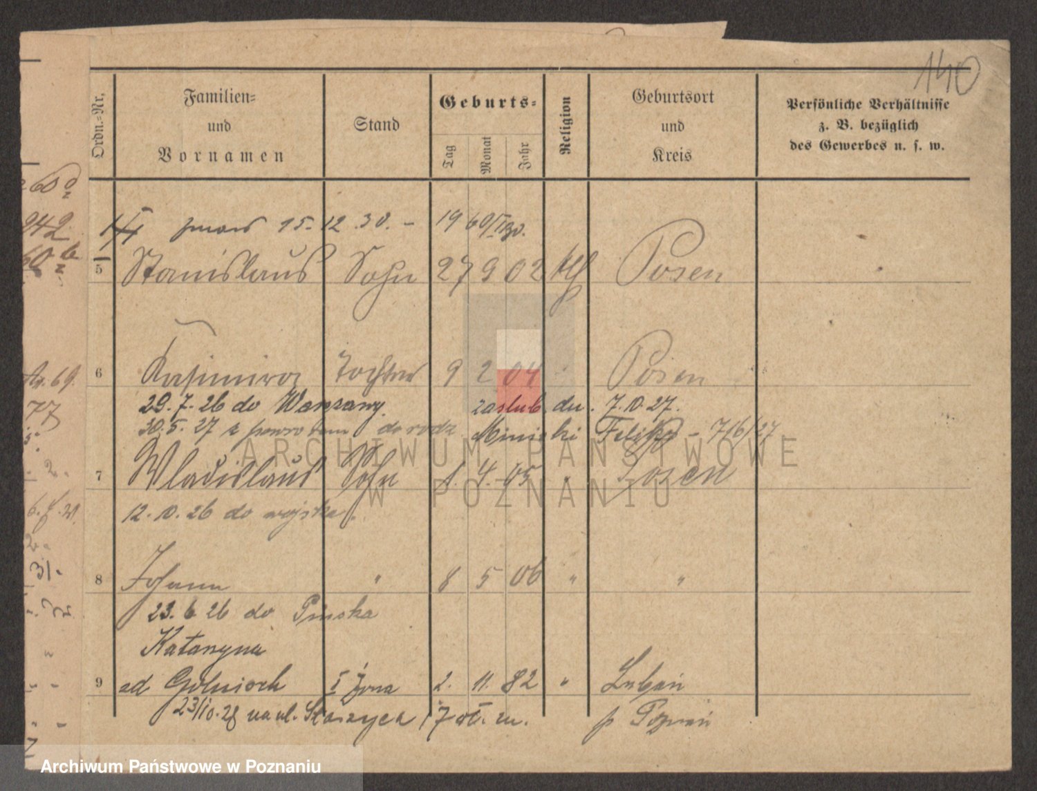 Podgląd karty osobowej dostępny jest po kliknięciu na nazwisko lub ikonkę karty. Można dokonywać powiększenia (ikony na górze) lub przechodzić między kolejnymi skanami (strzałki po bokach).