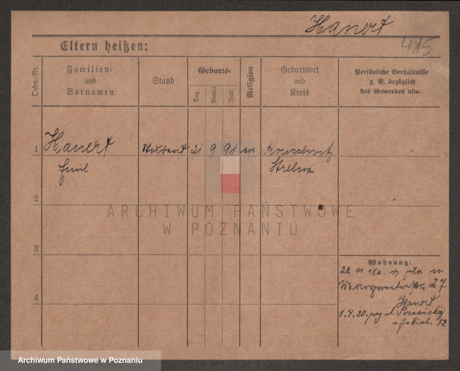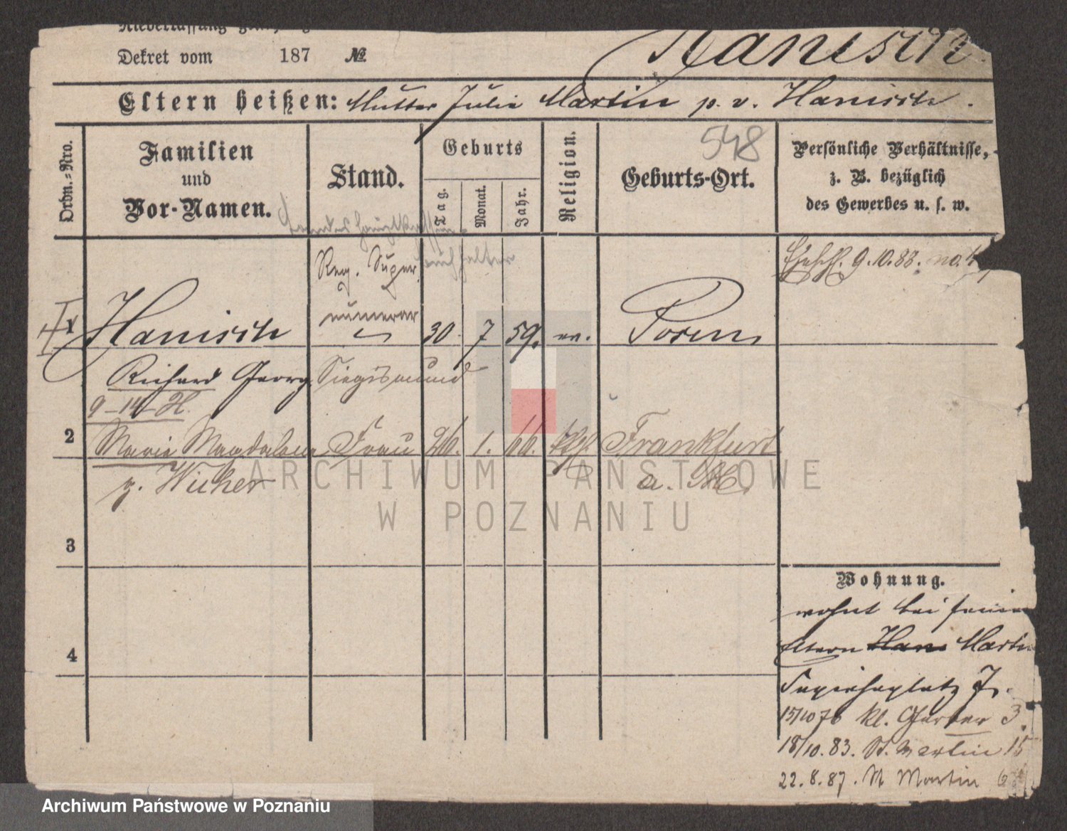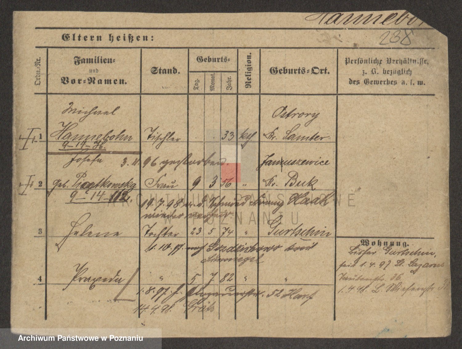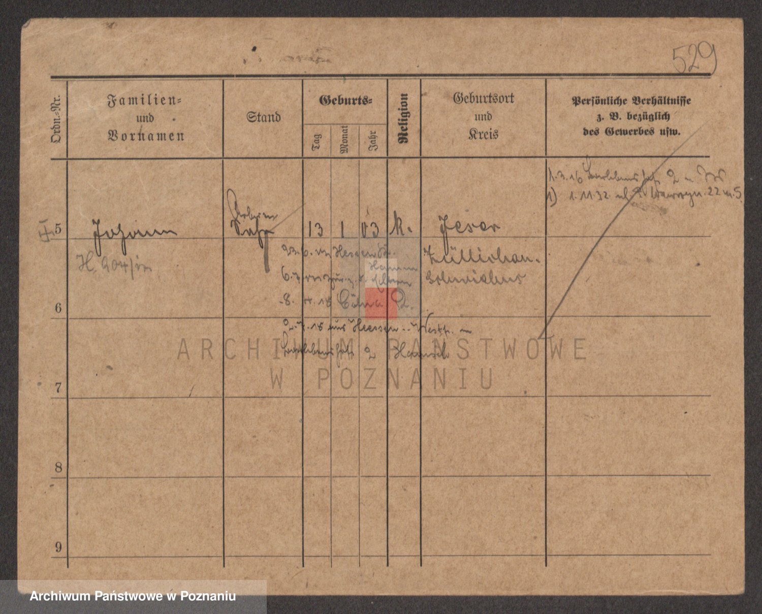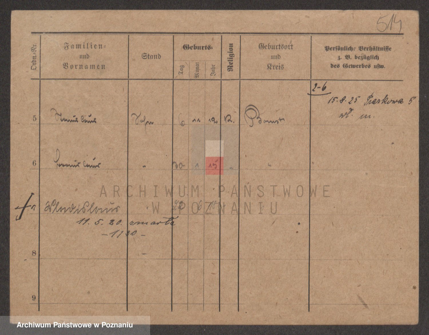 Podgląd karty osobowej dostępny jest po kliknięciu na nazwisko lub ikonkę karty. Można dokonywać powiększenia (ikony na górze) lub przechodzić między kolejnymi skanami (strzałki po bokach).