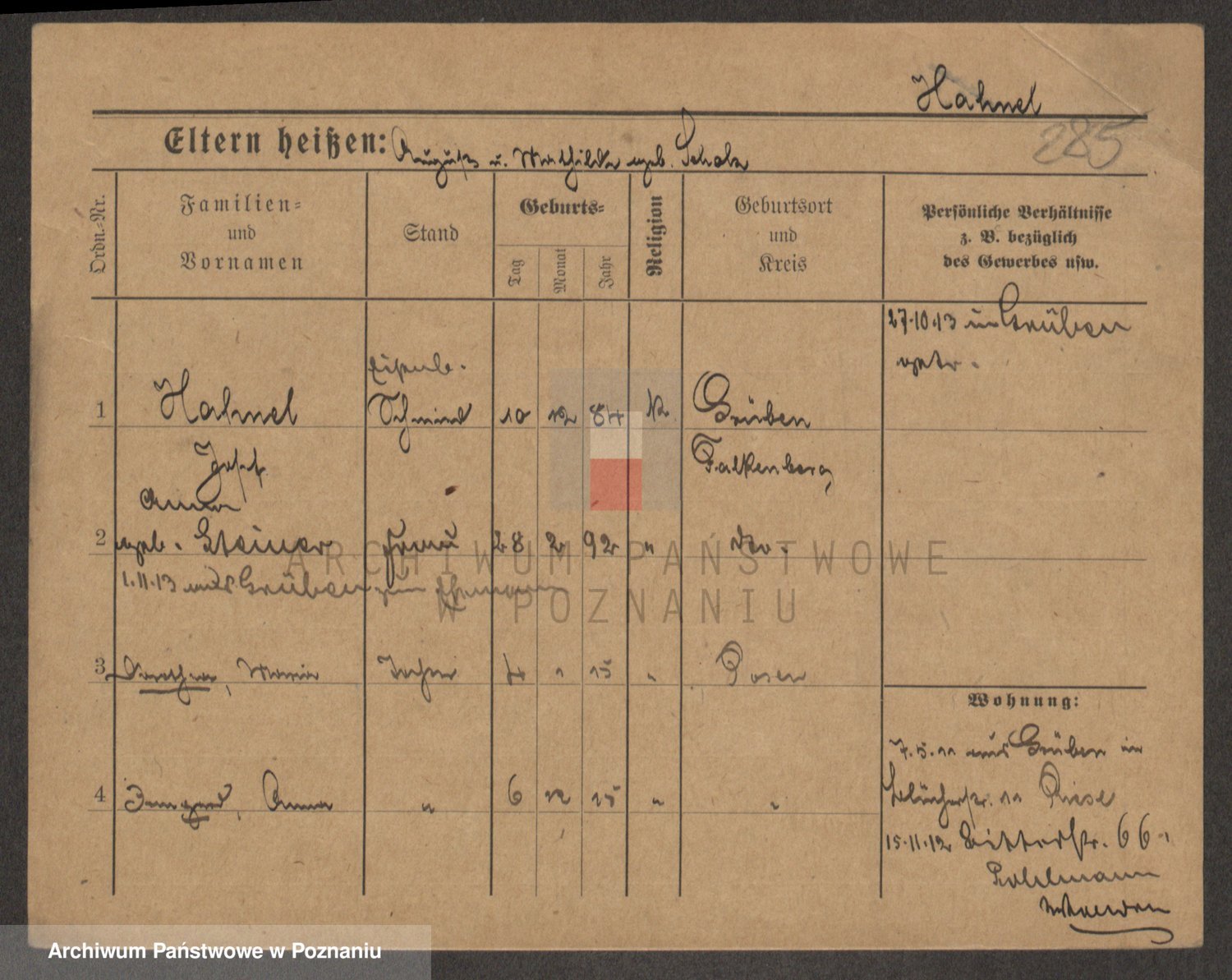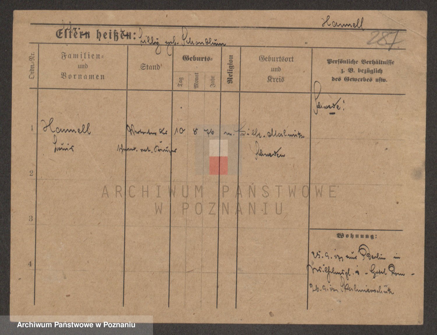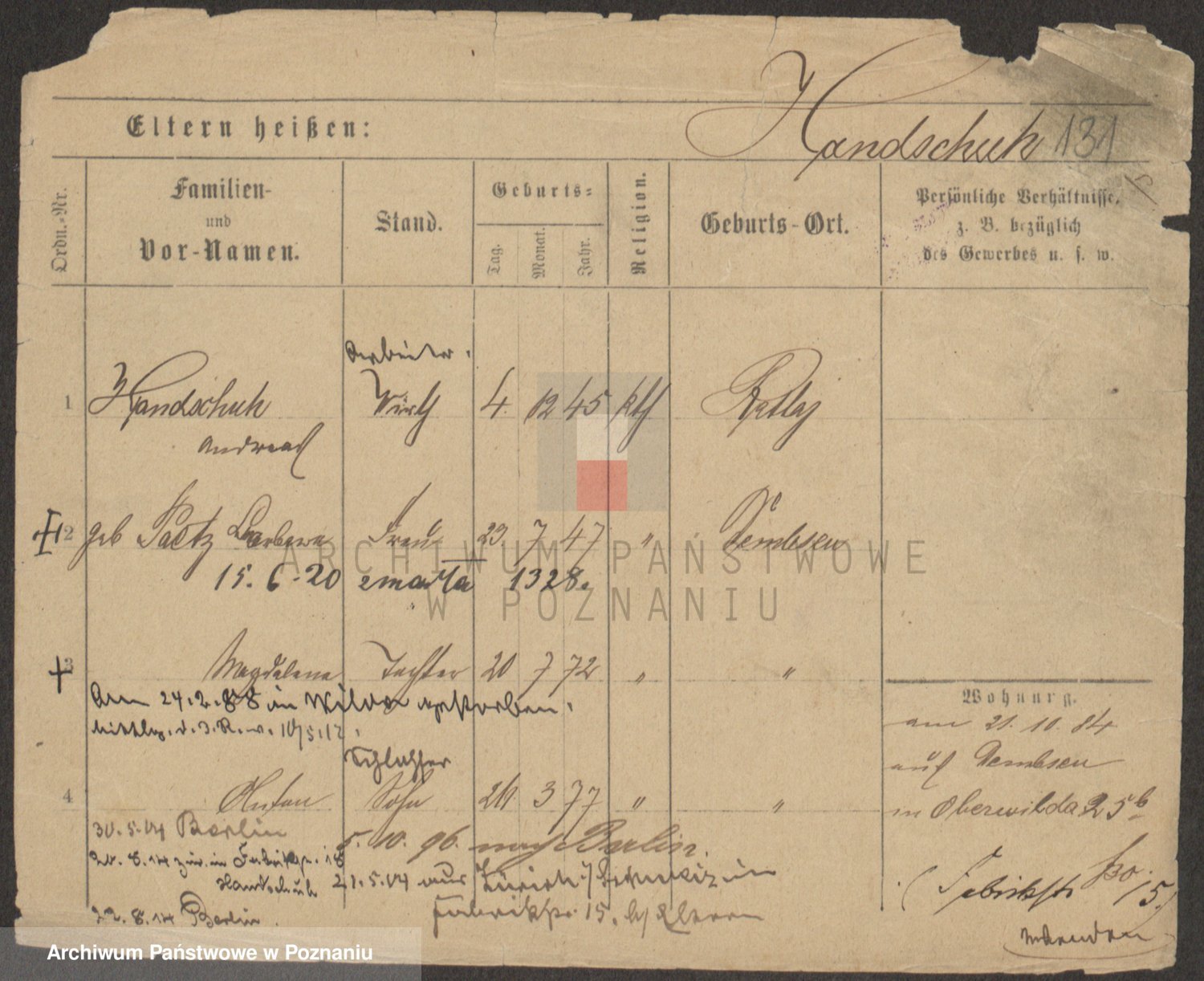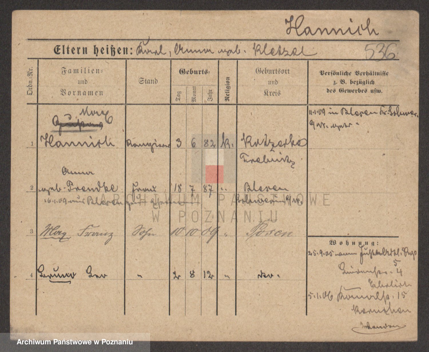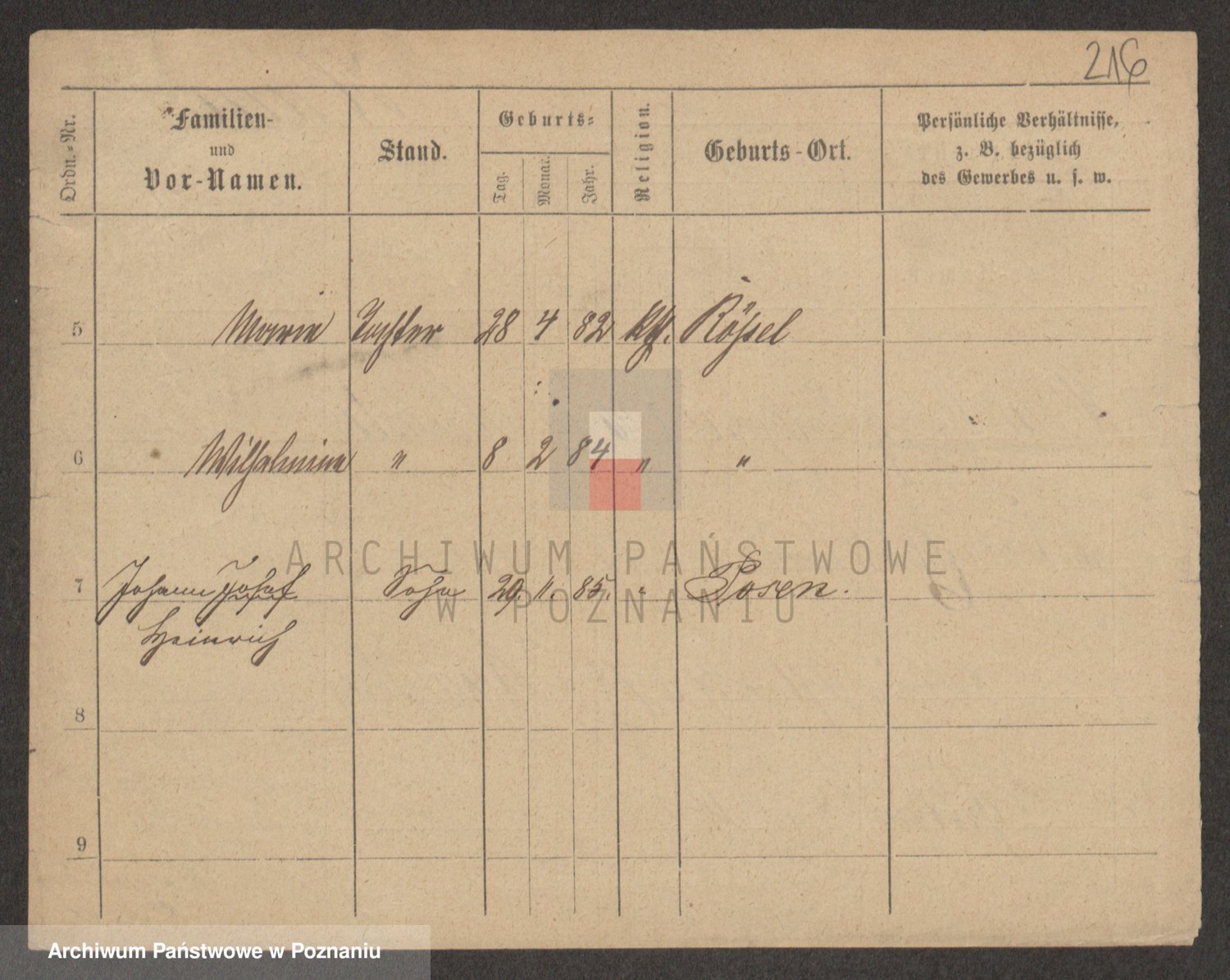 Podgląd karty osobowej dostępny jest po kliknięciu na nazwisko lub ikonkę karty. Można dokonywać powiększenia (ikony na górze) lub przechodzić między kolejnymi skanami (strzałki po bokach).