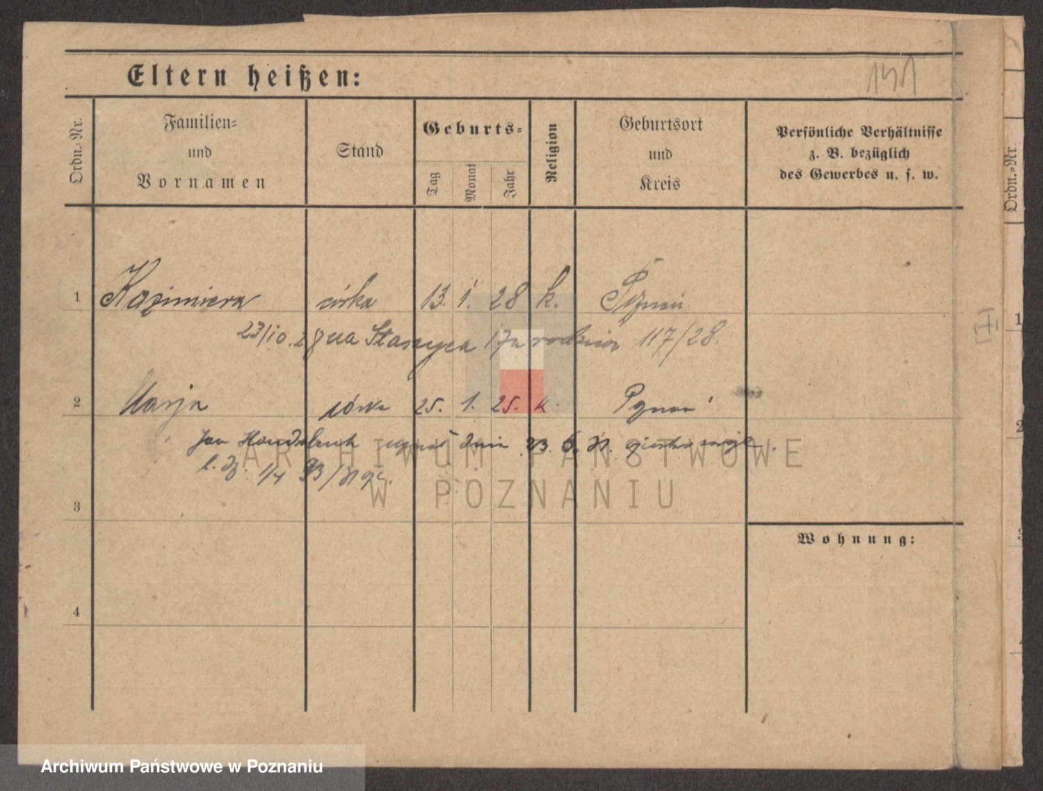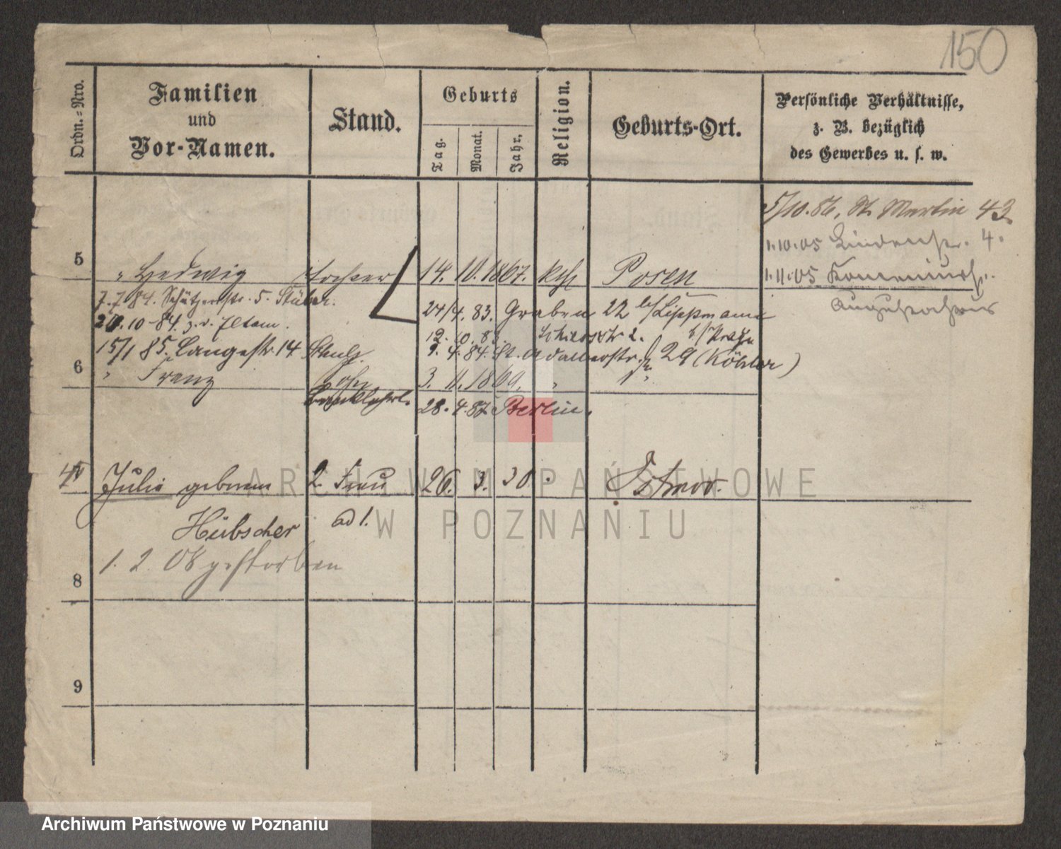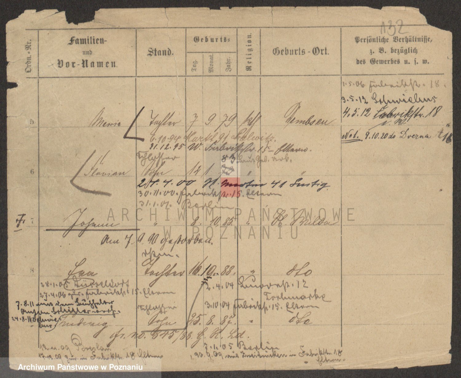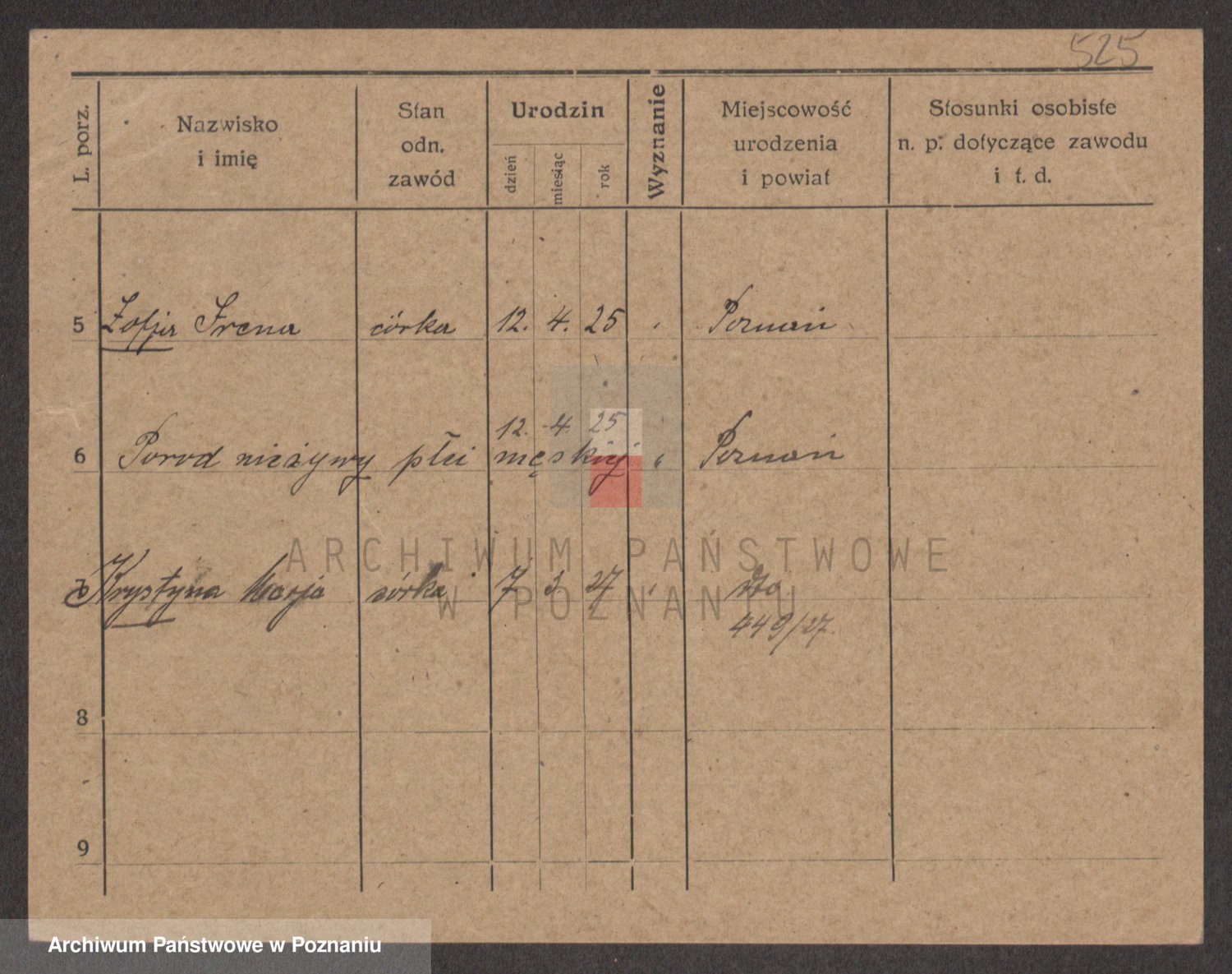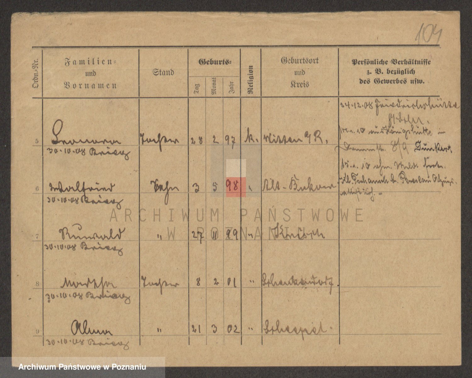 Podgląd karty osobowej dostępny jest po kliknięciu na nazwisko lub ikonkę karty. Można dokonywać powiększenia (ikony na górze) lub przechodzić między kolejnymi skanami (strzałki po bokach).