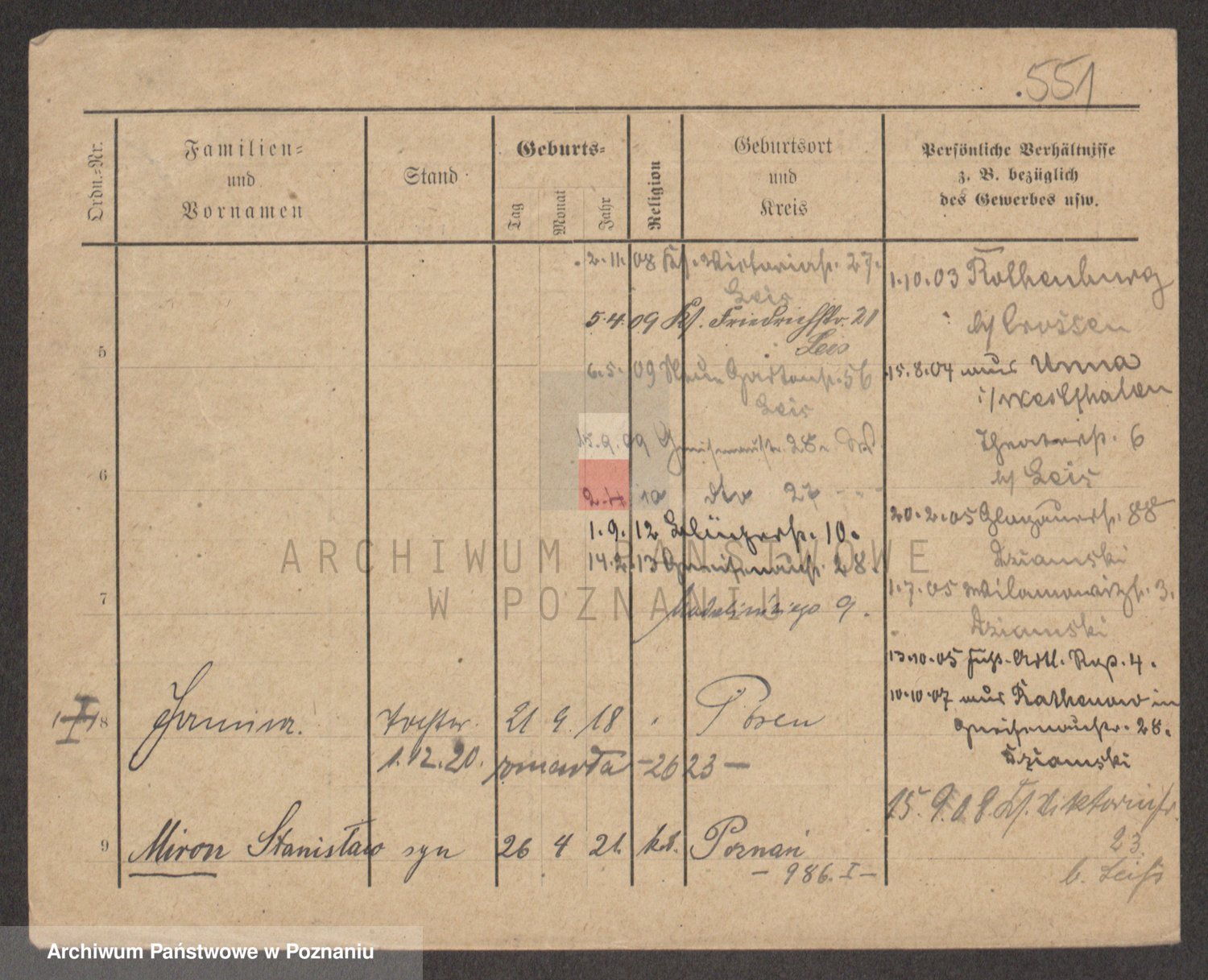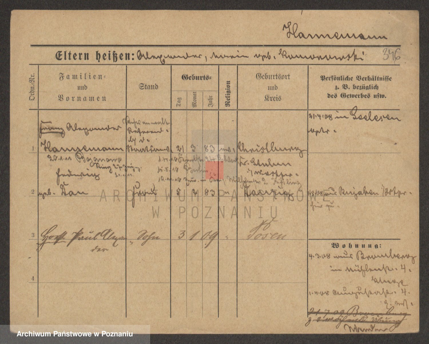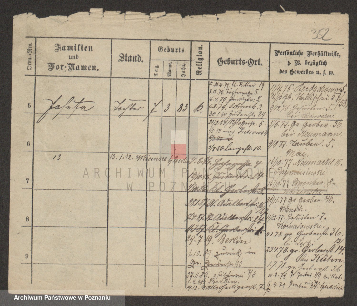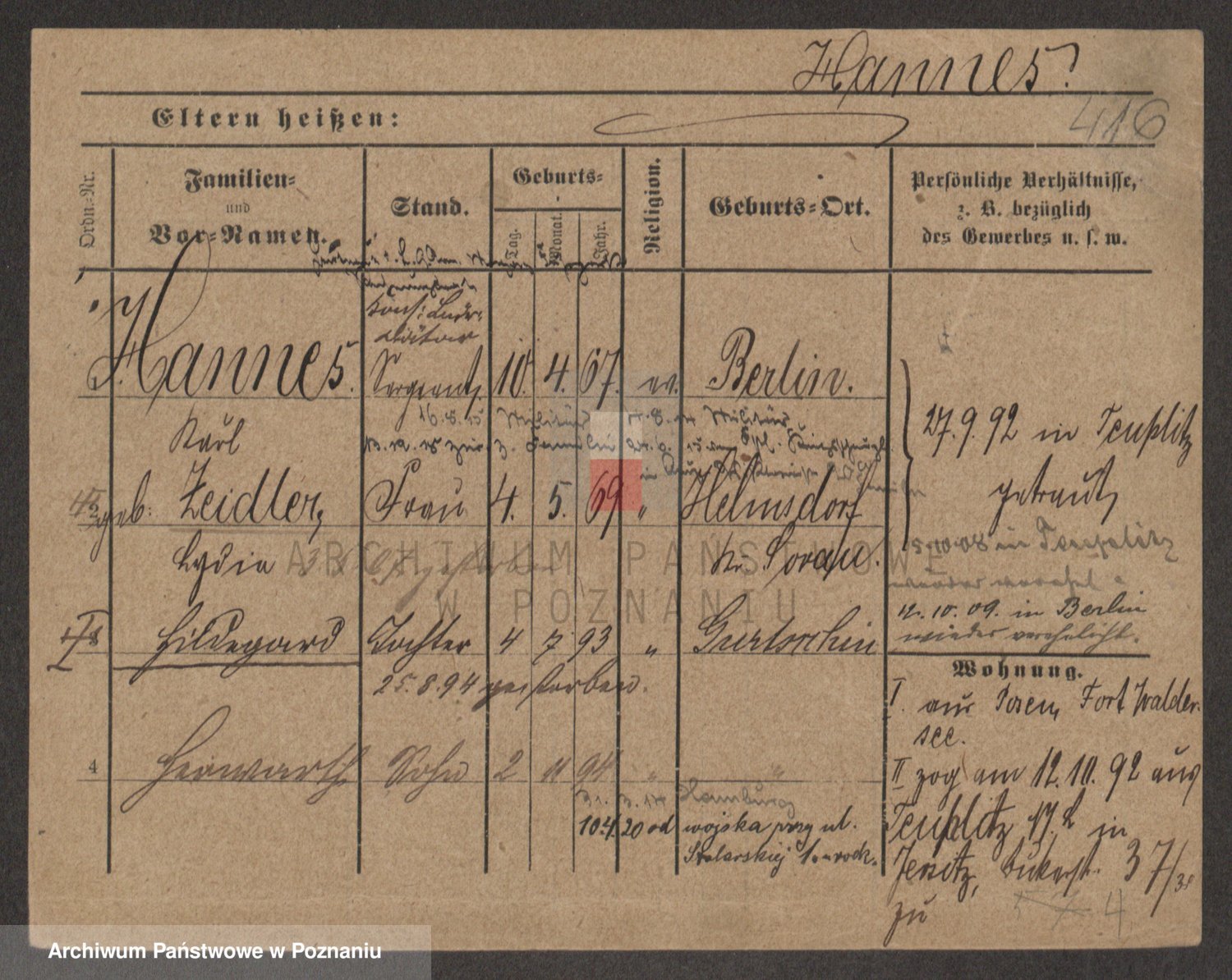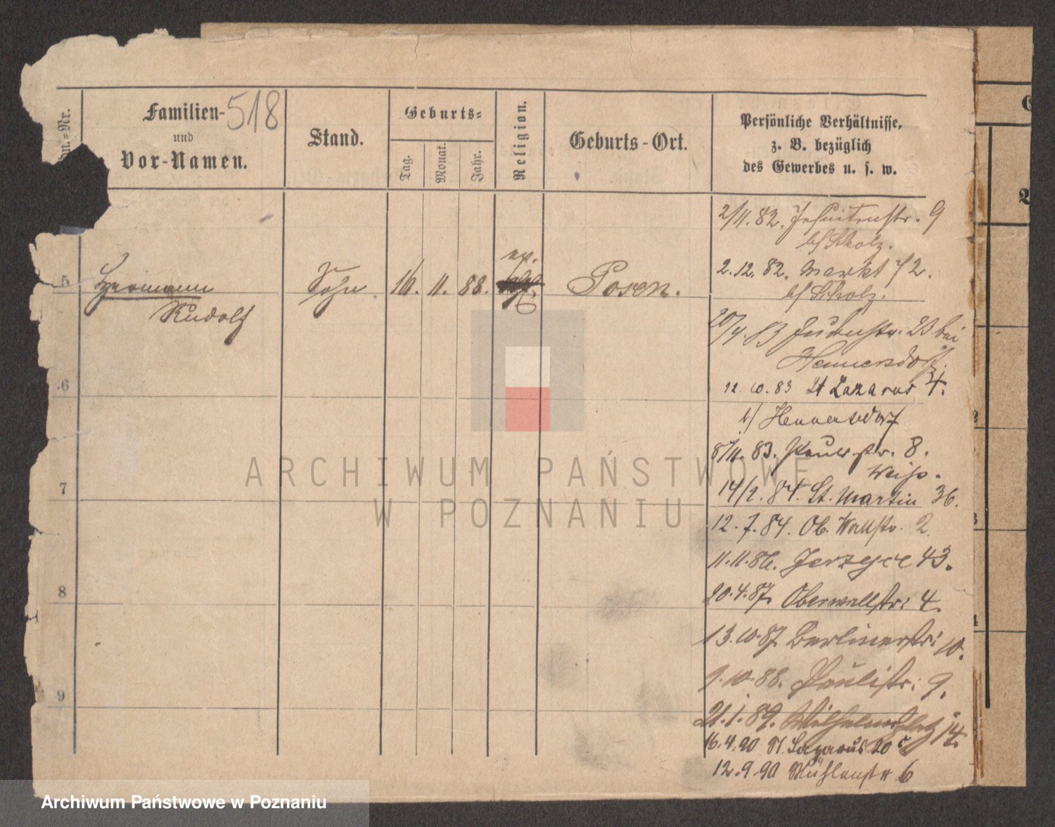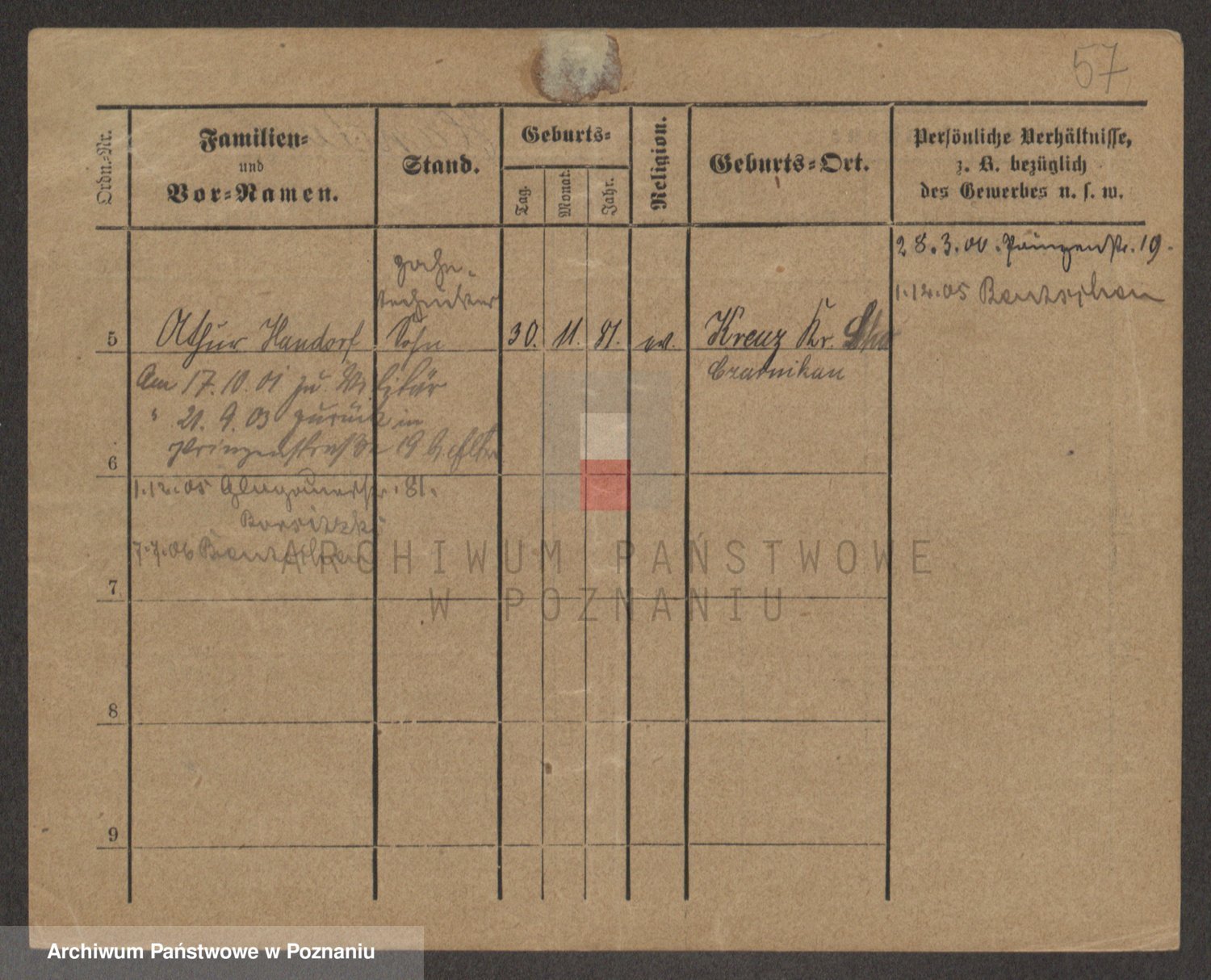 Podgląd karty osobowej dostępny jest po kliknięciu na nazwisko lub ikonkę karty. Można dokonywać powiększenia (ikony na górze) lub przechodzić między kolejnymi skanami (strzałki po bokach).