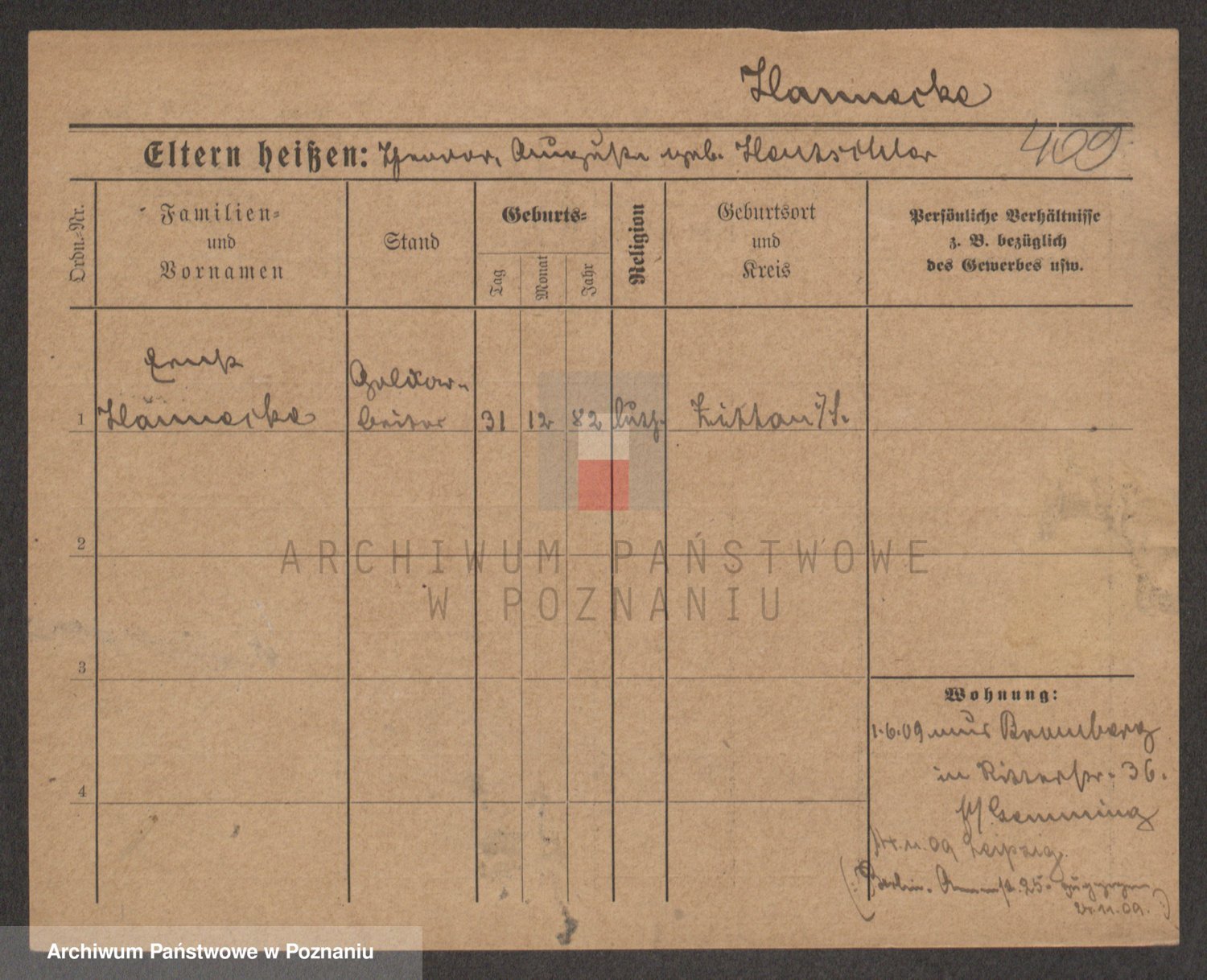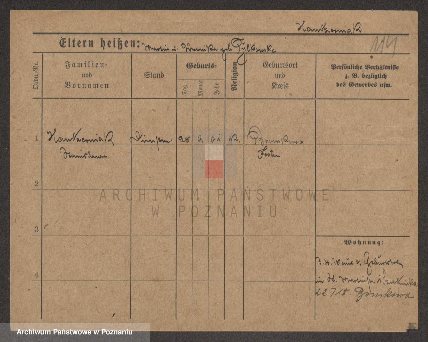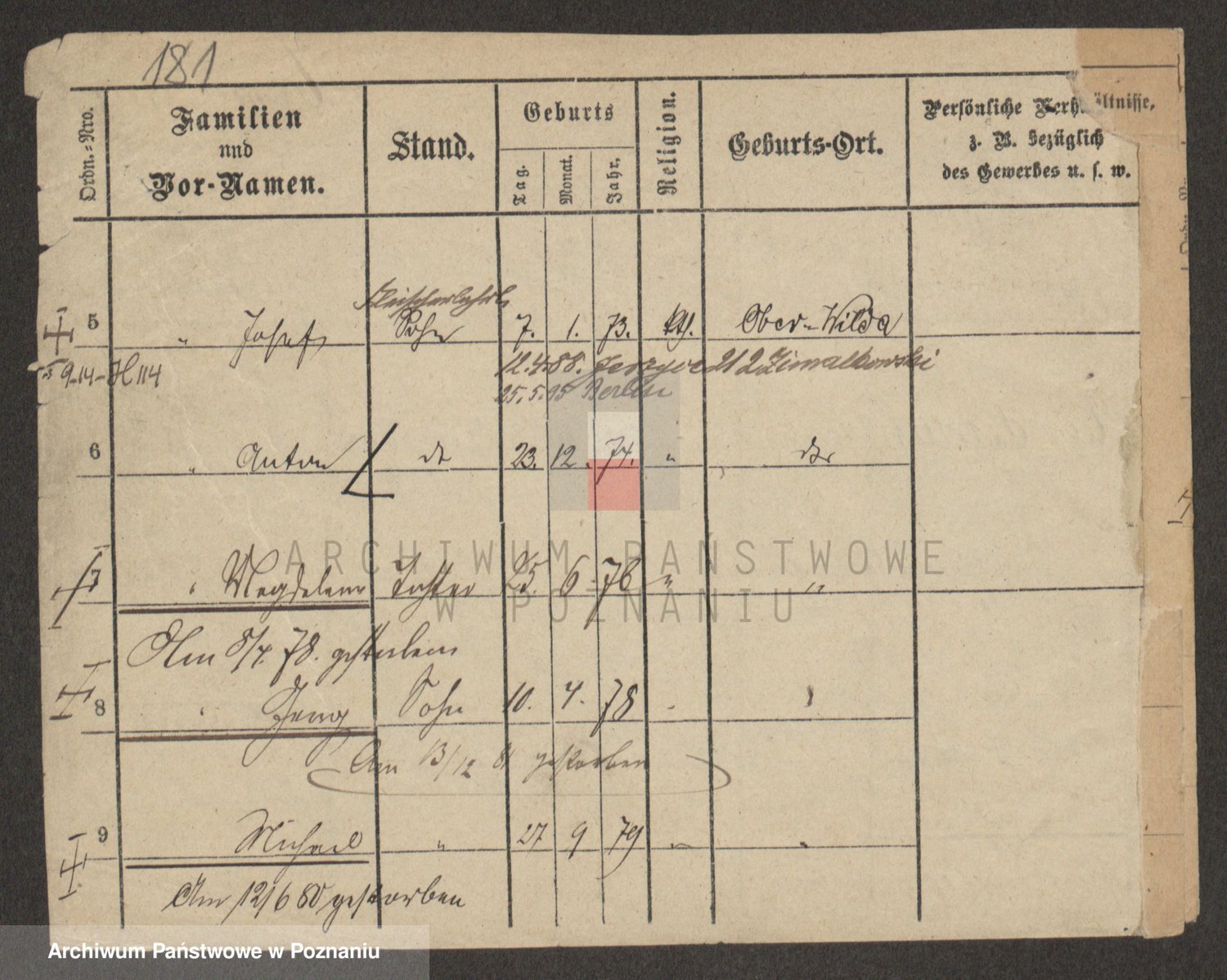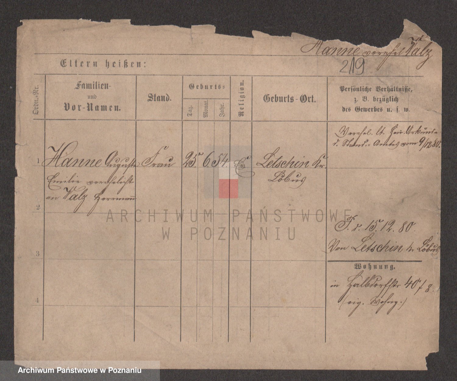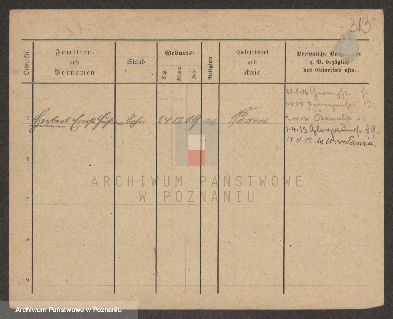 Podgląd karty osobowej dostępny jest po kliknięciu na nazwisko lub ikonkę karty. Można dokonywać powiększenia (ikony na górze) lub przechodzić między kolejnymi skanami (strzałki po bokach).