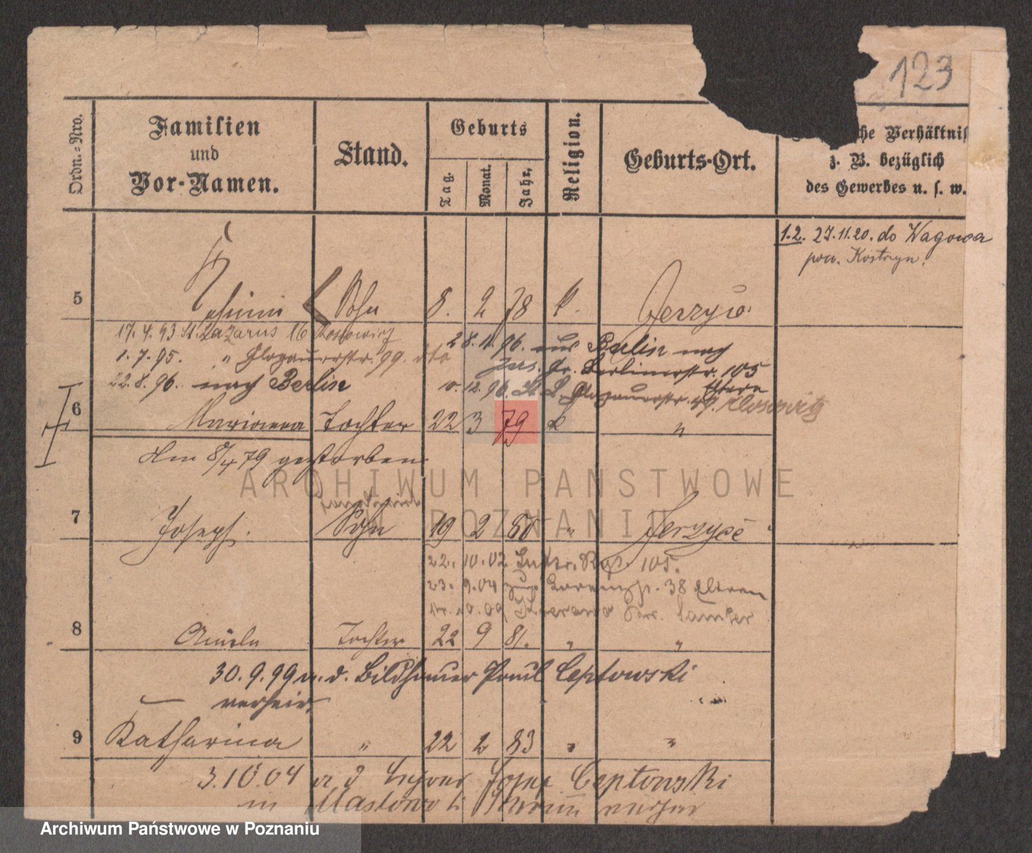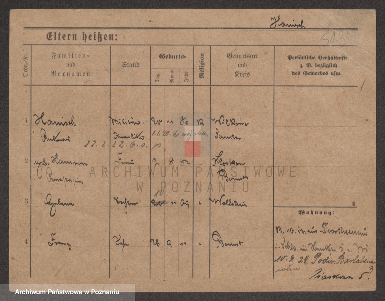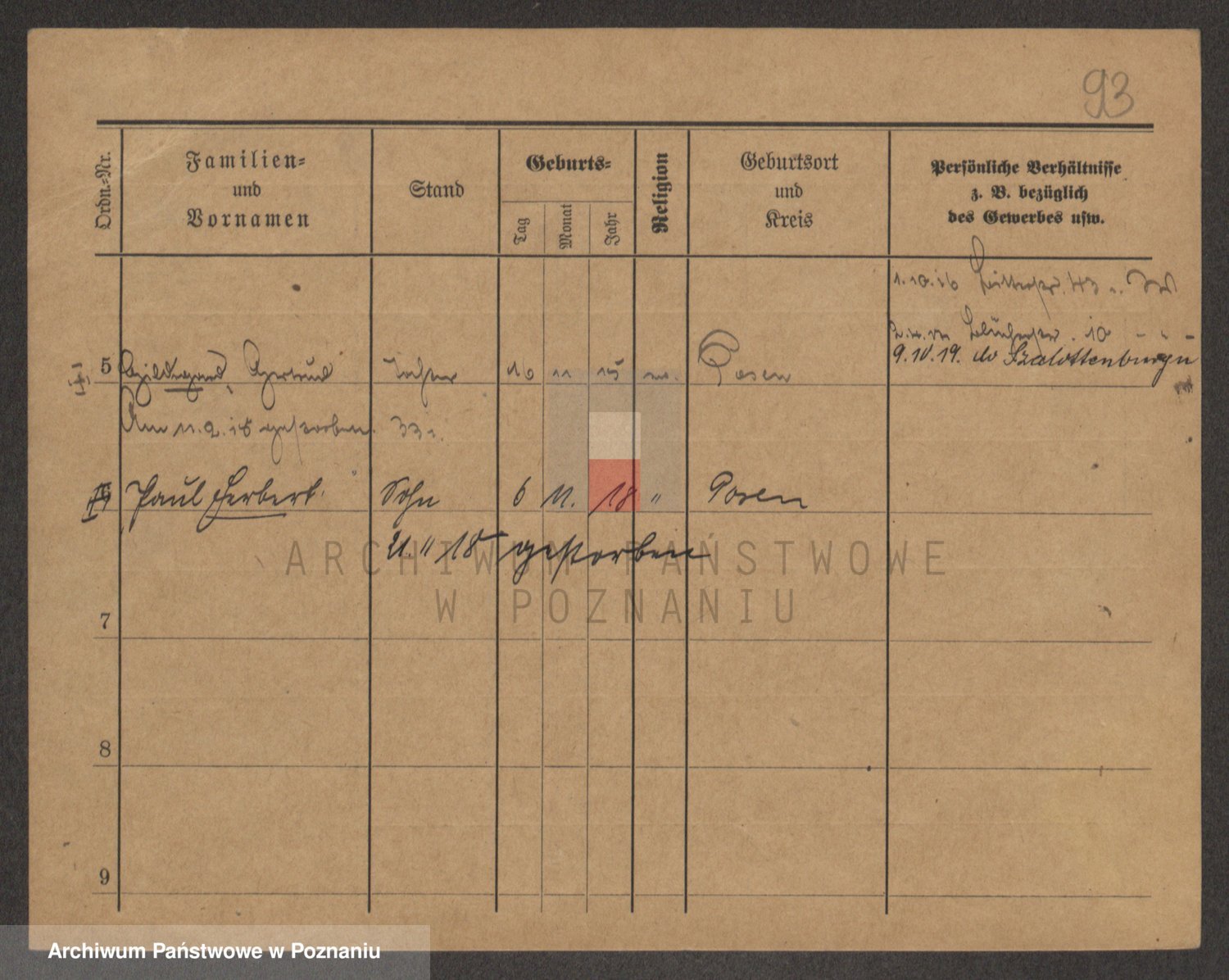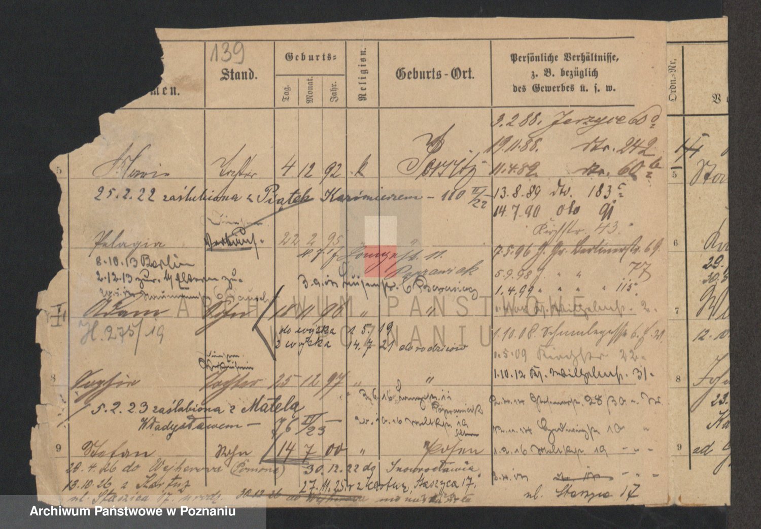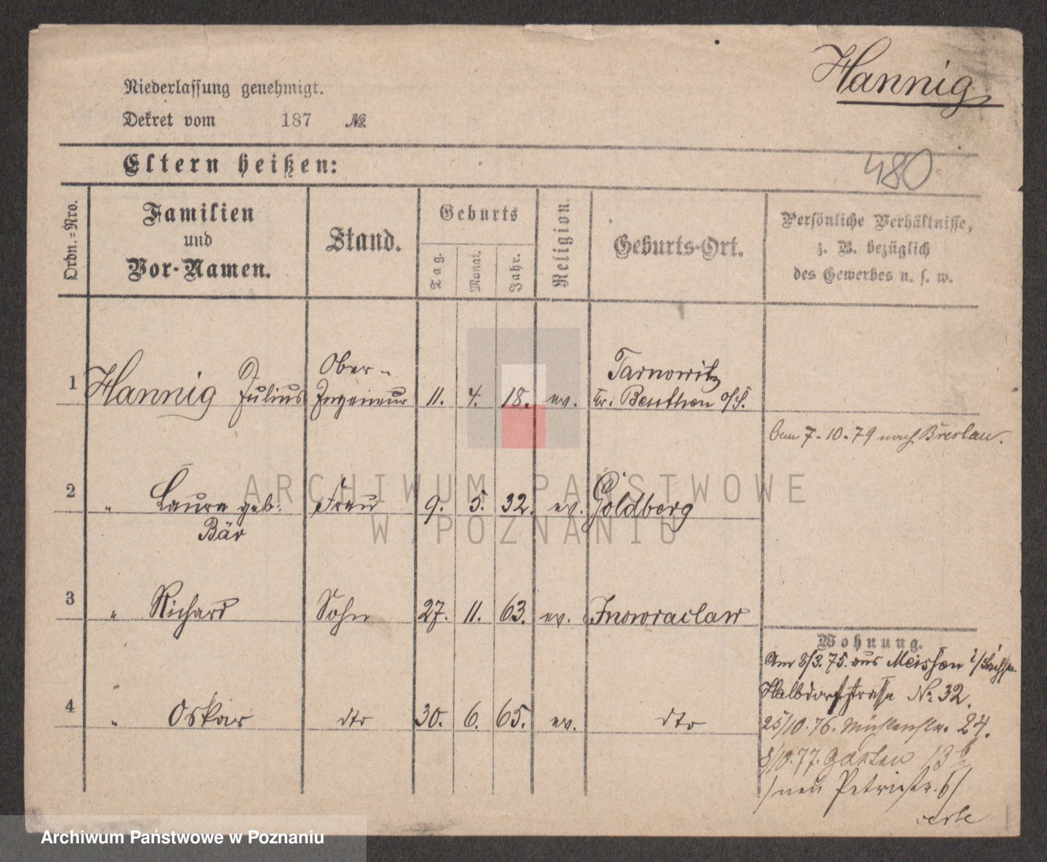 Podgląd karty osobowej dostępny jest po kliknięciu na nazwisko lub ikonkę karty. Można dokonywać powiększenia (ikony na górze) lub przechodzić między kolejnymi skanami (strzałki po bokach).
