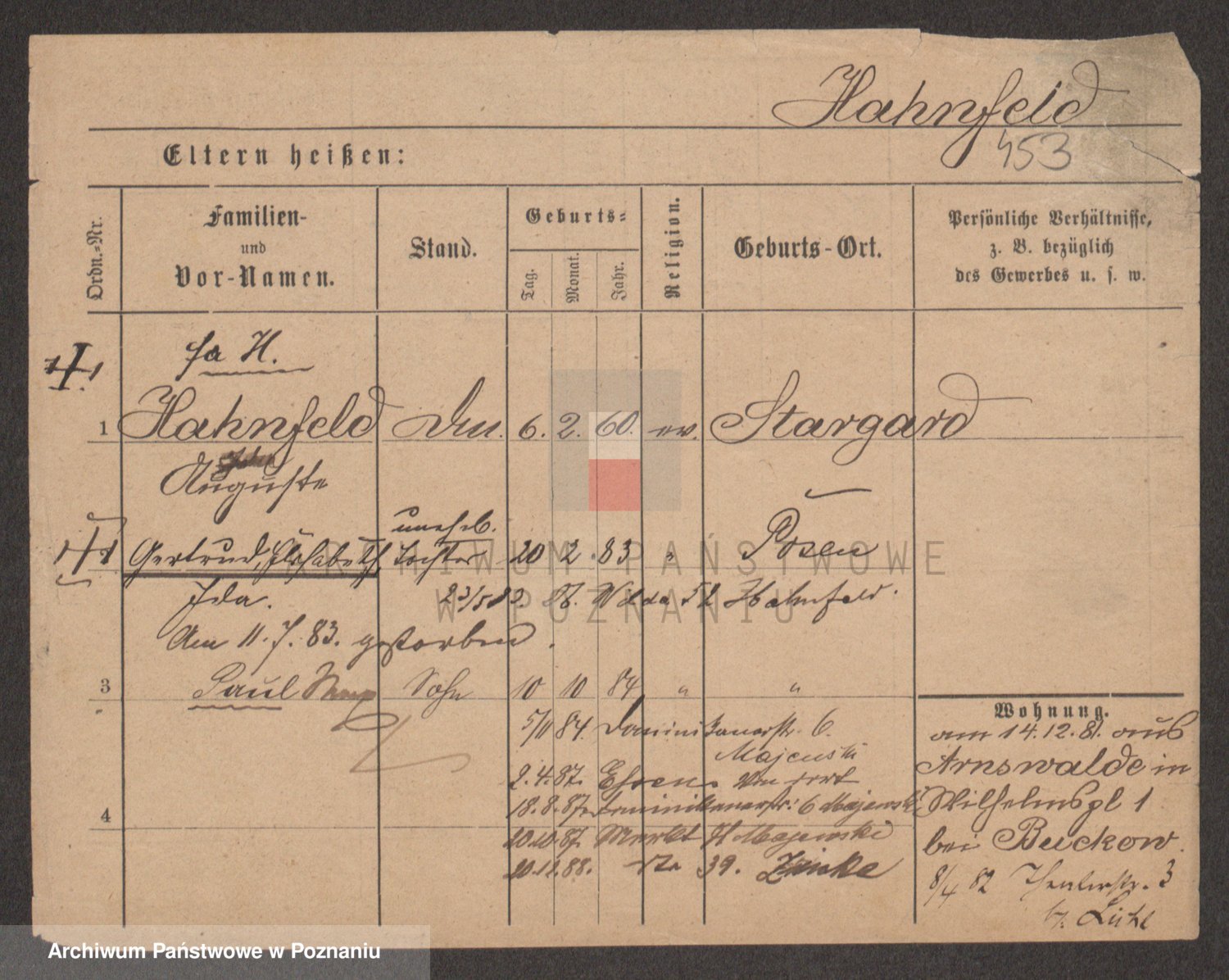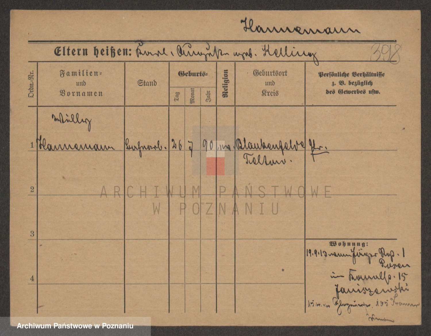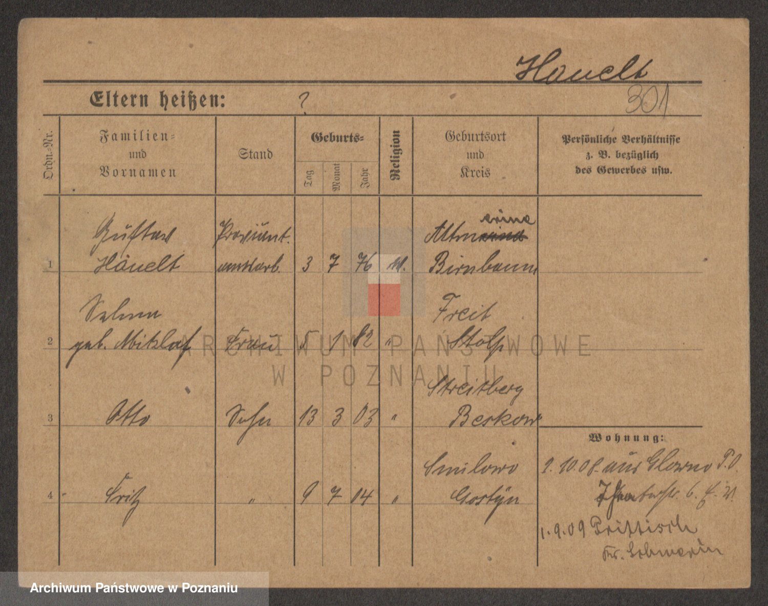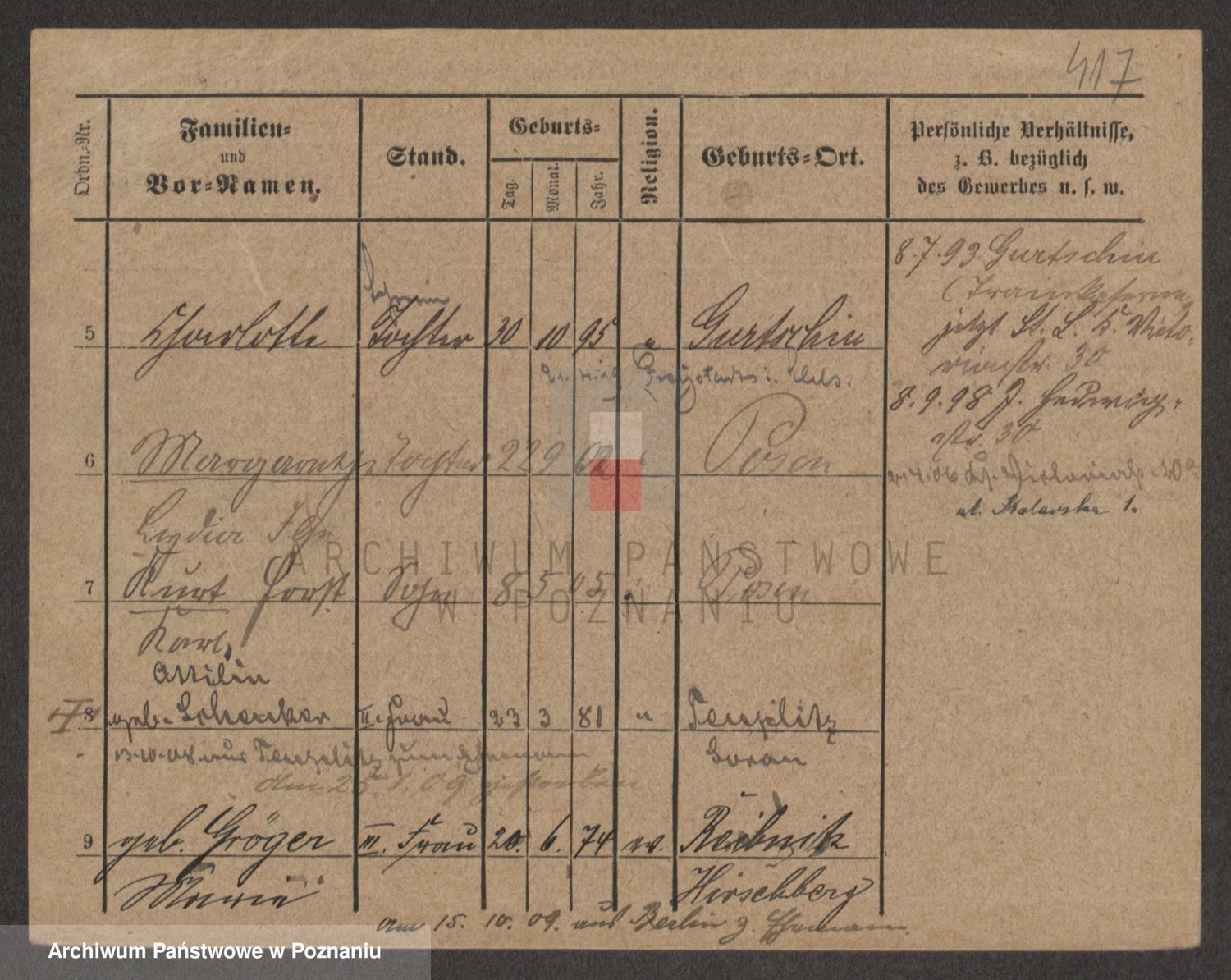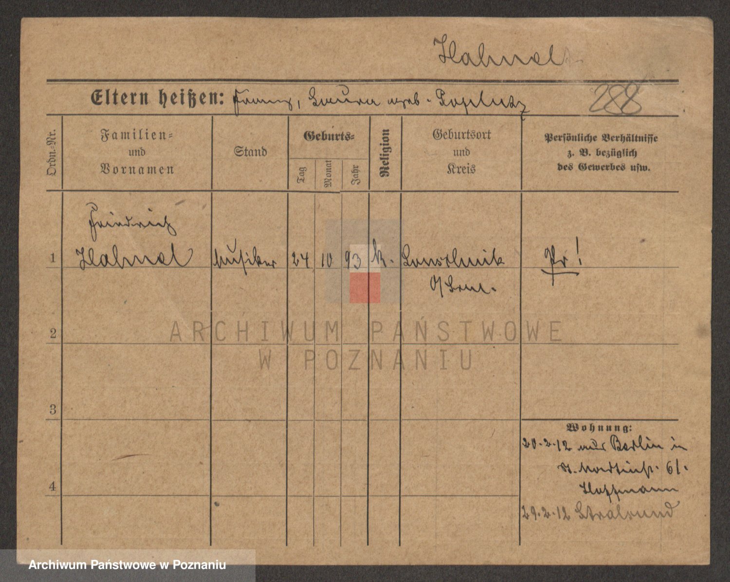 Podgląd karty osobowej dostępny jest po kliknięciu na nazwisko lub ikonkę karty. Można dokonywać powiększenia (ikony na górze) lub przechodzić między kolejnymi skanami (strzałki po bokach).