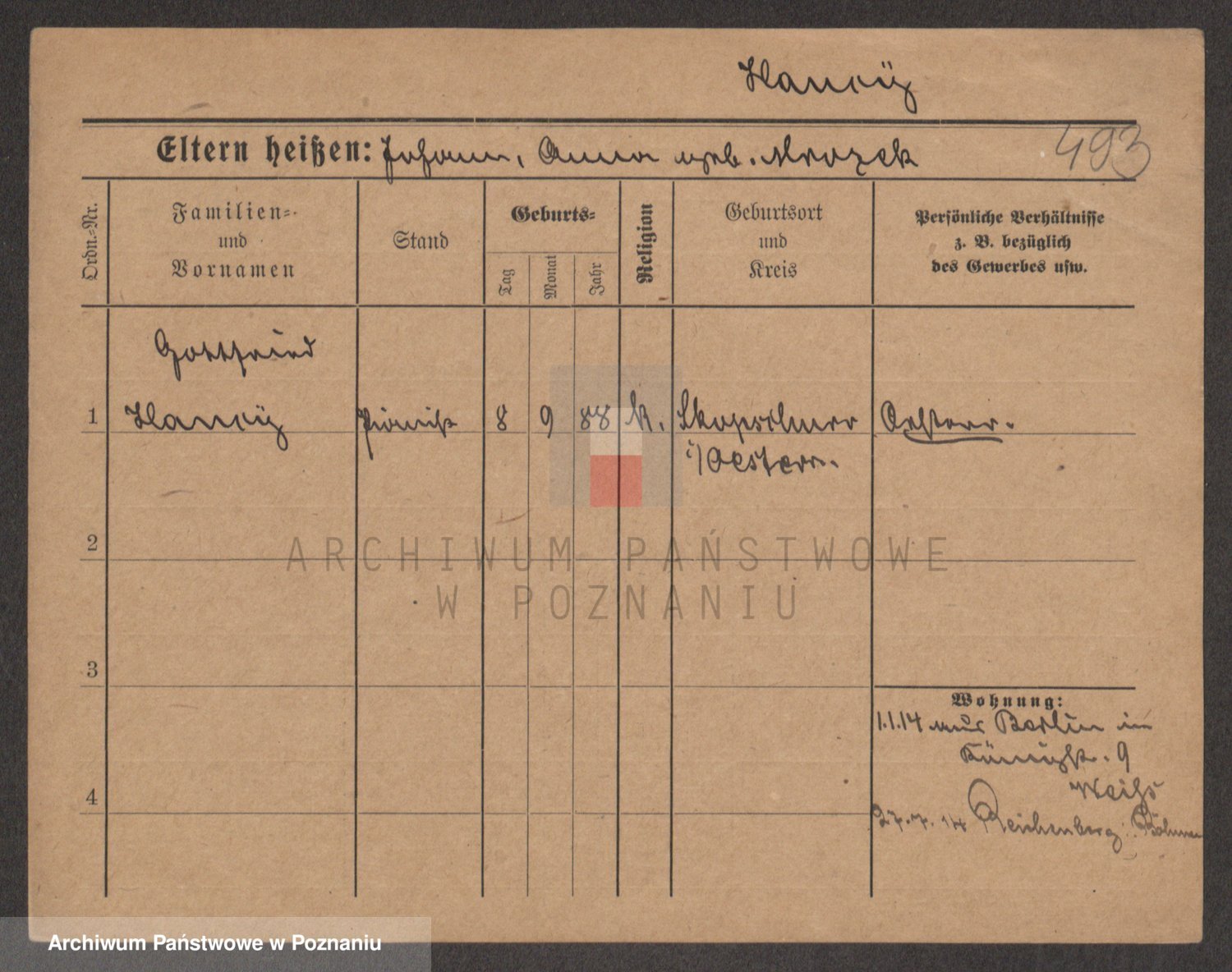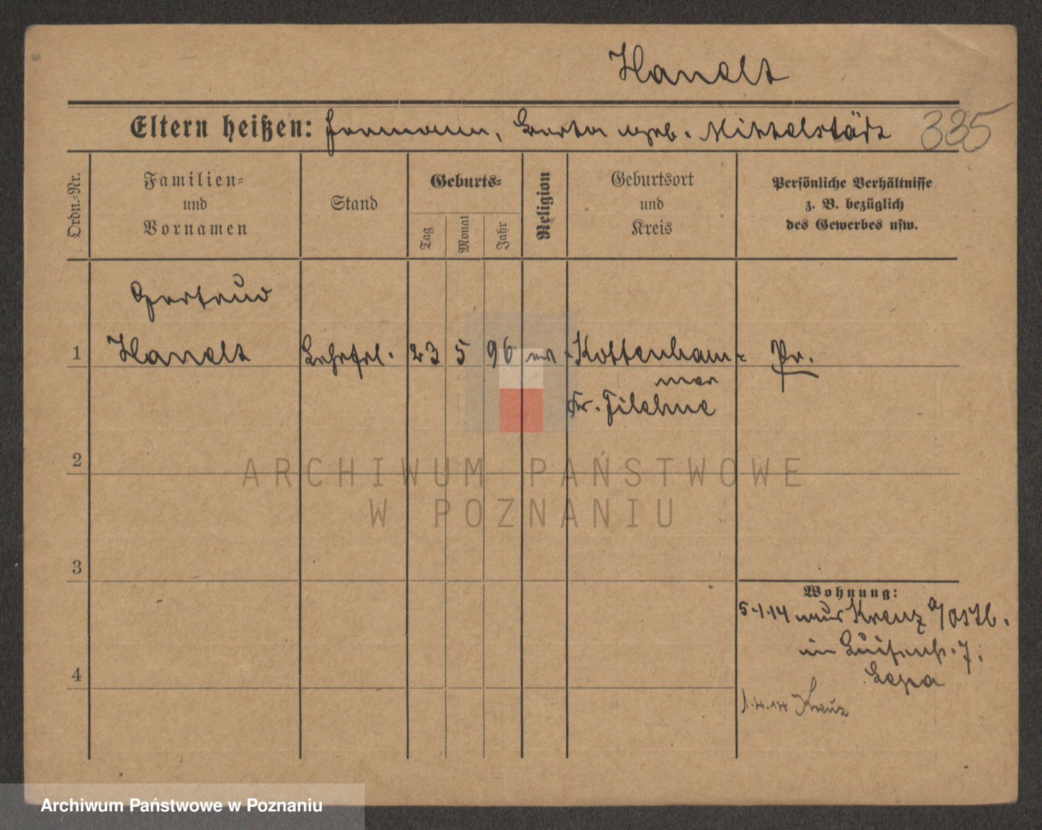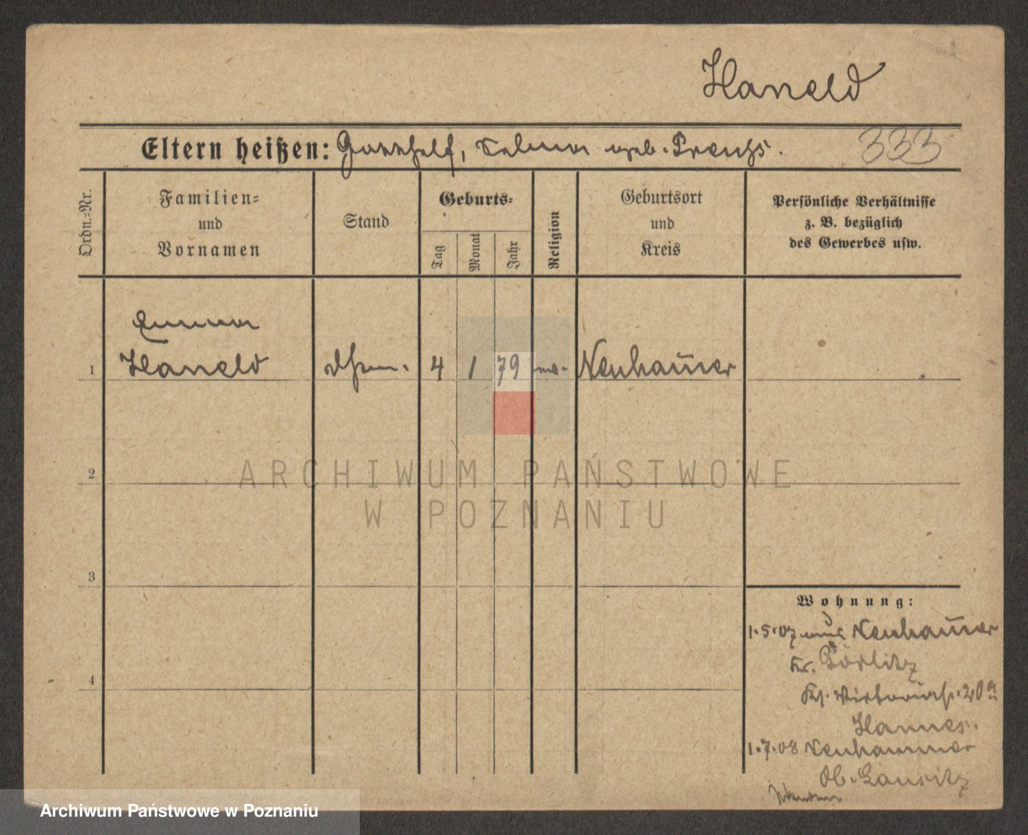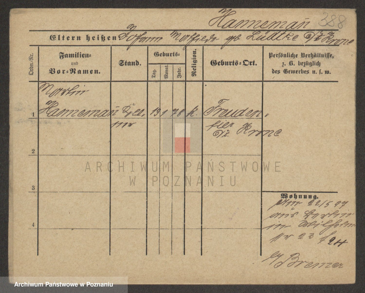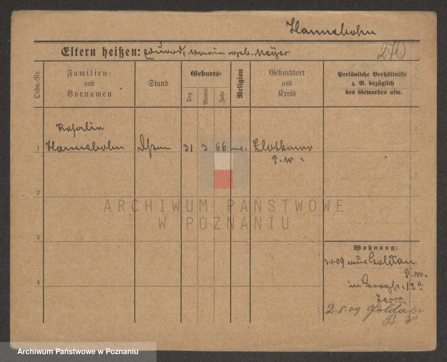 Podgląd karty osobowej dostępny jest po kliknięciu na nazwisko lub ikonkę karty. Można dokonywać powiększenia (ikony na górze) lub przechodzić między kolejnymi skanami (strzałki po bokach).