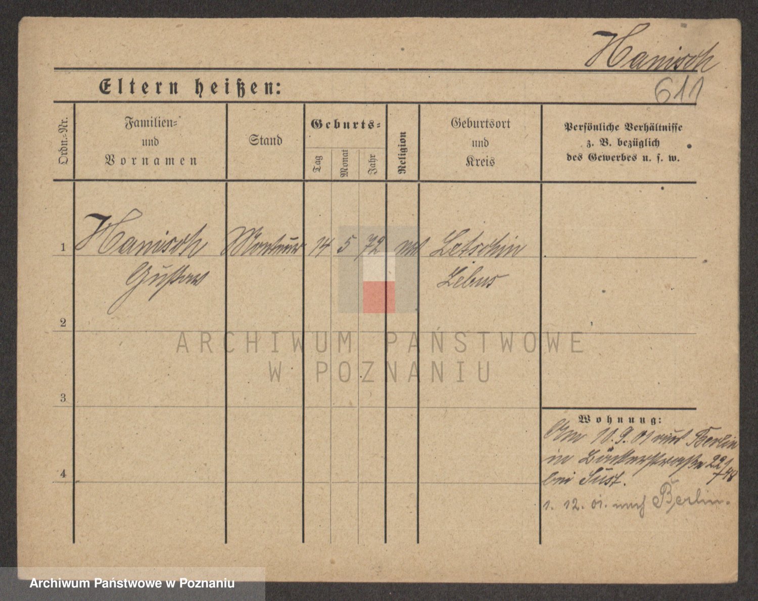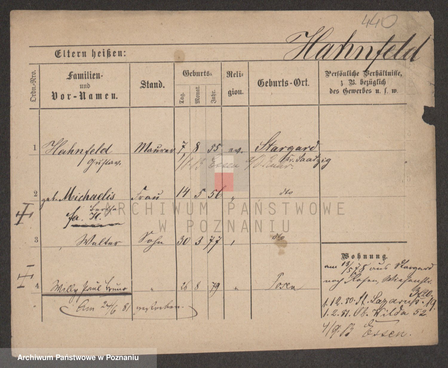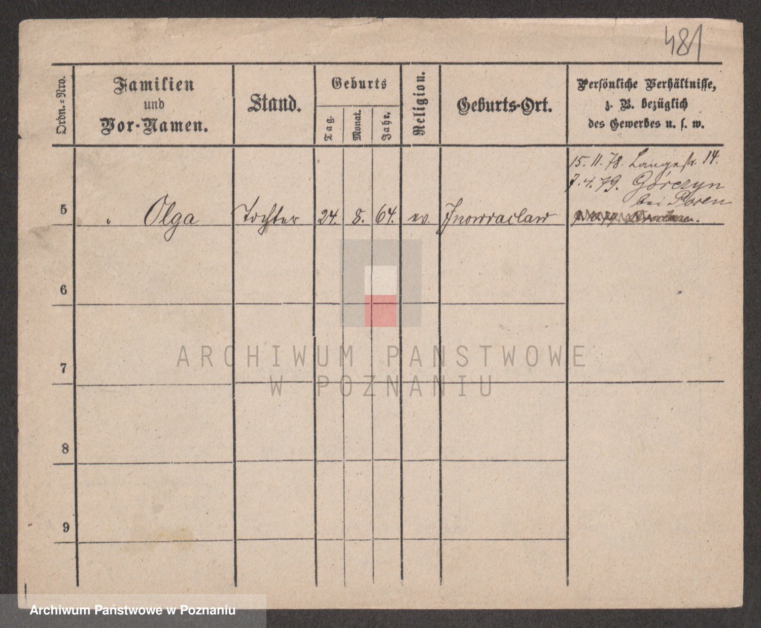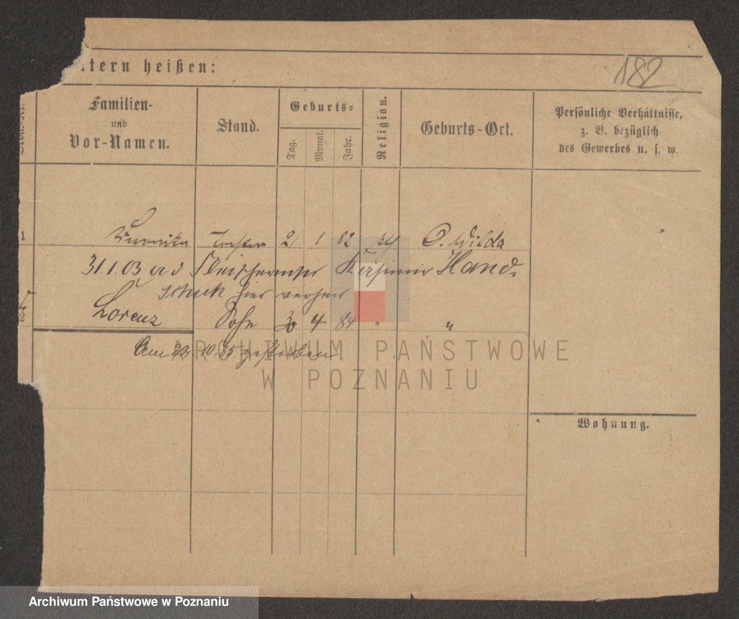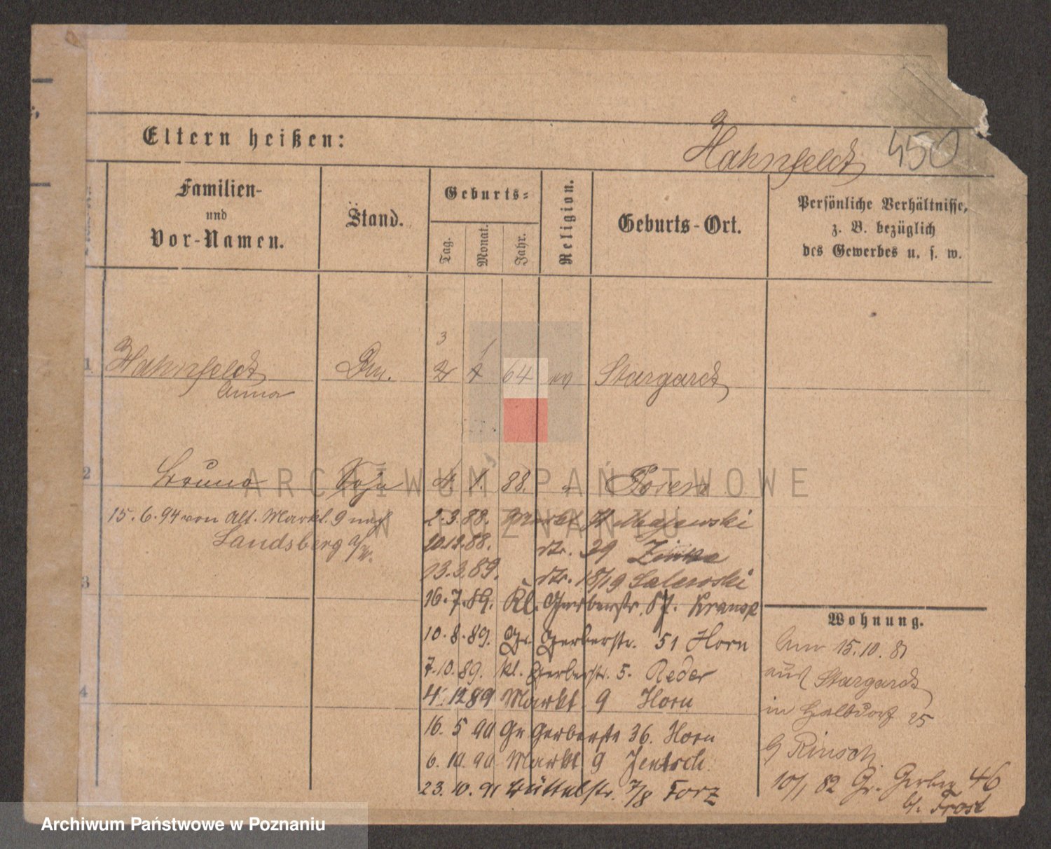 Podgląd karty osobowej dostępny jest po kliknięciu na nazwisko lub ikonkę karty. Można dokonywać powiększenia (ikony na górze) lub przechodzić między kolejnymi skanami (strzałki po bokach).