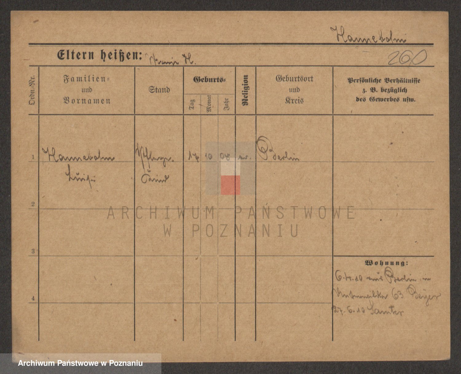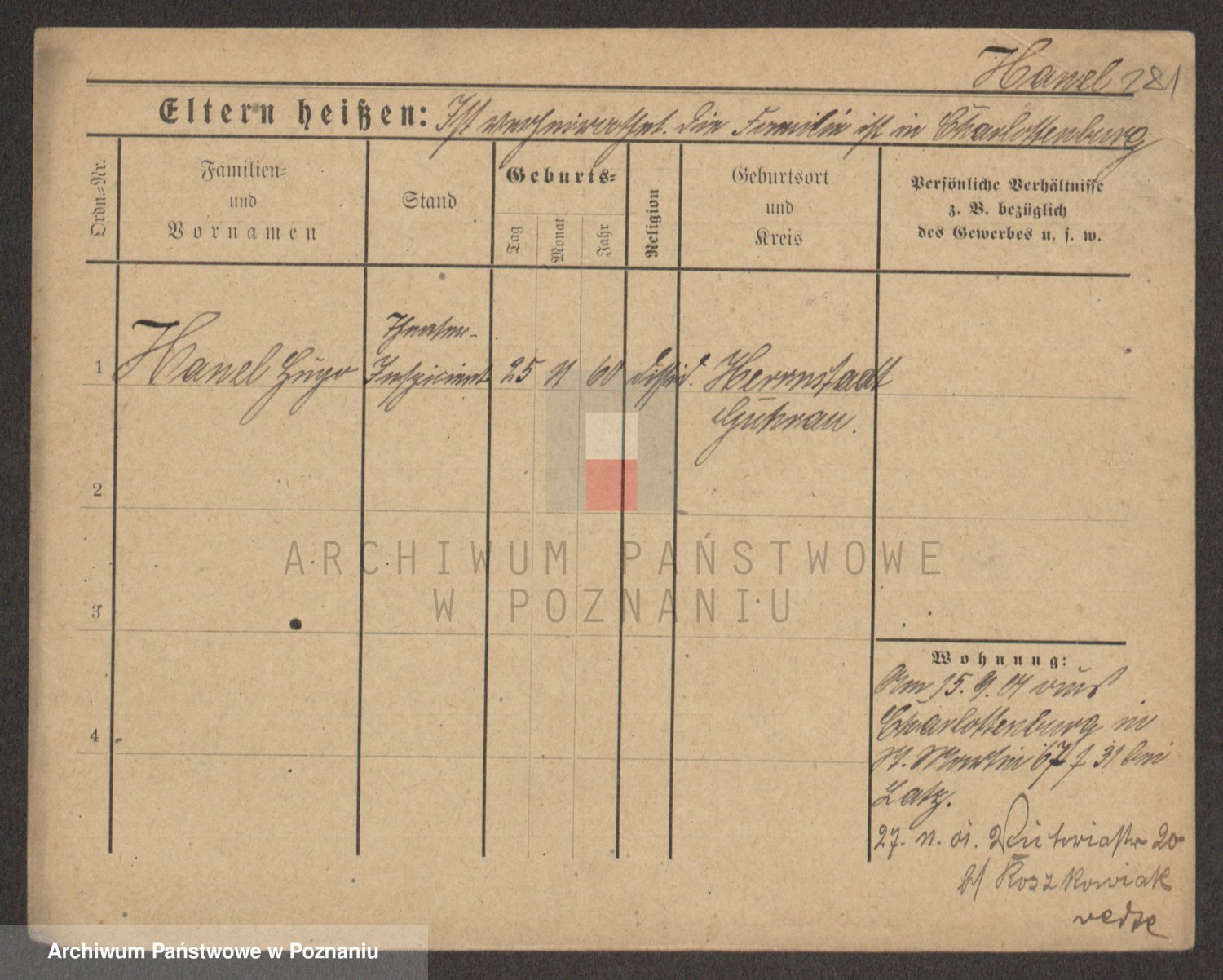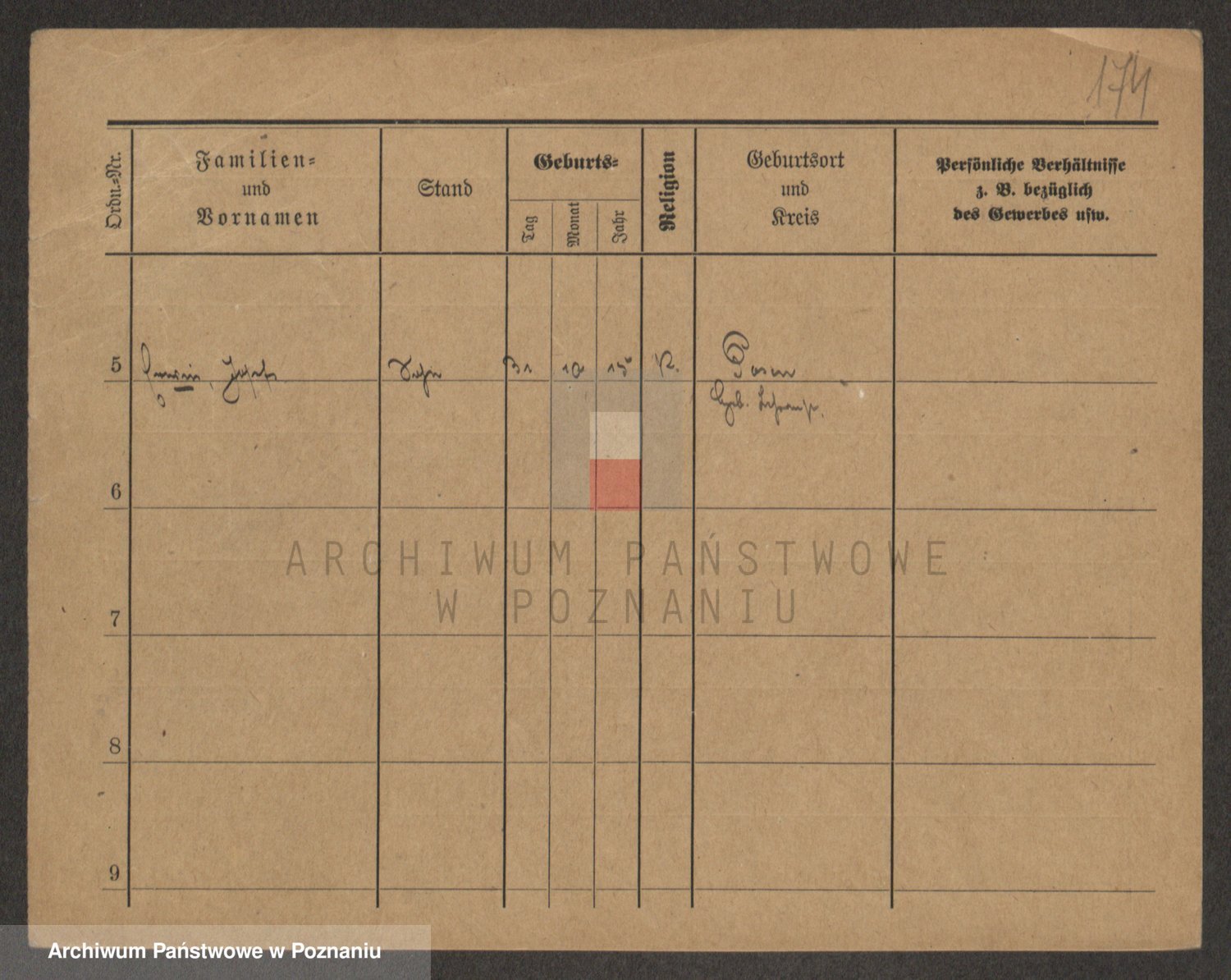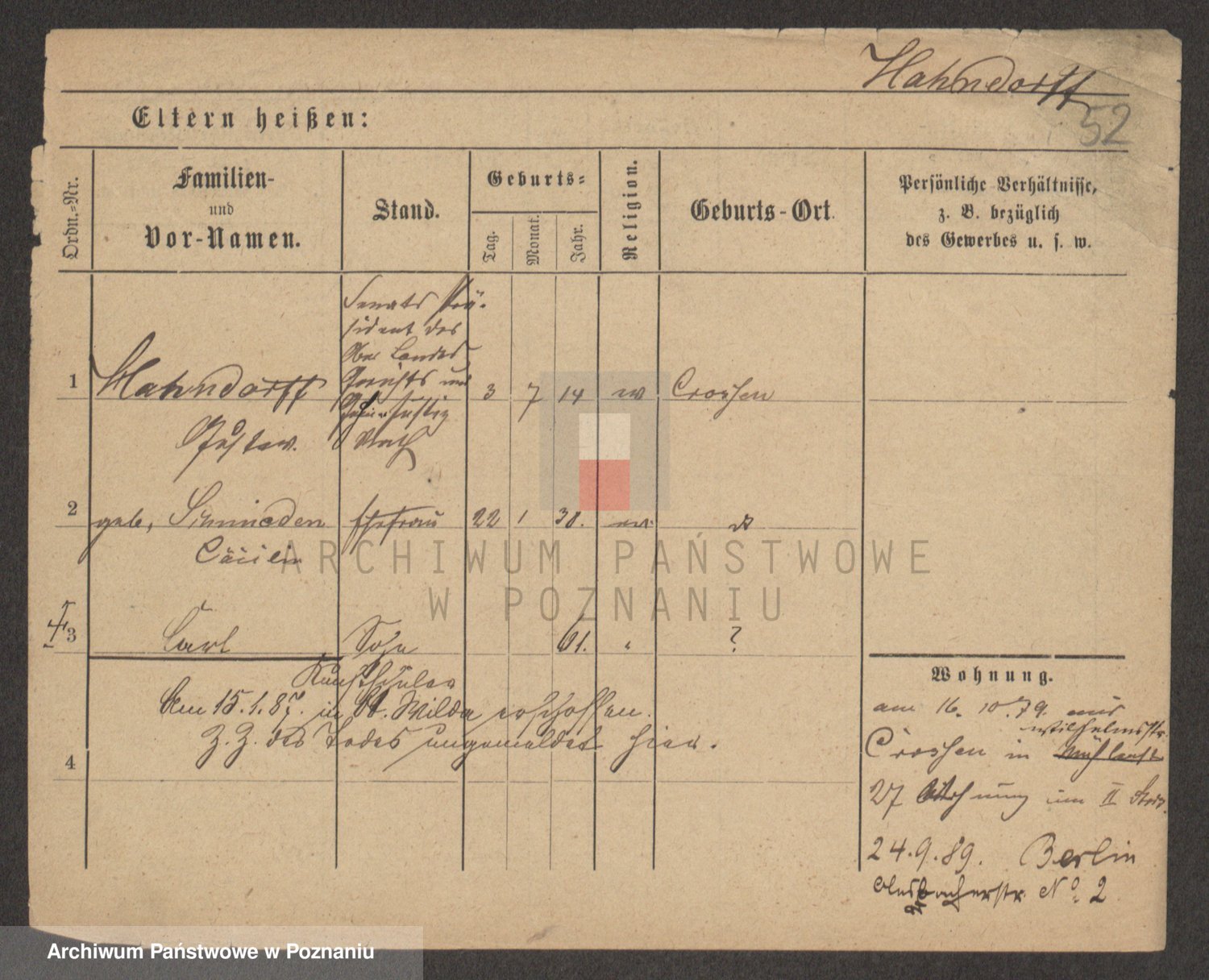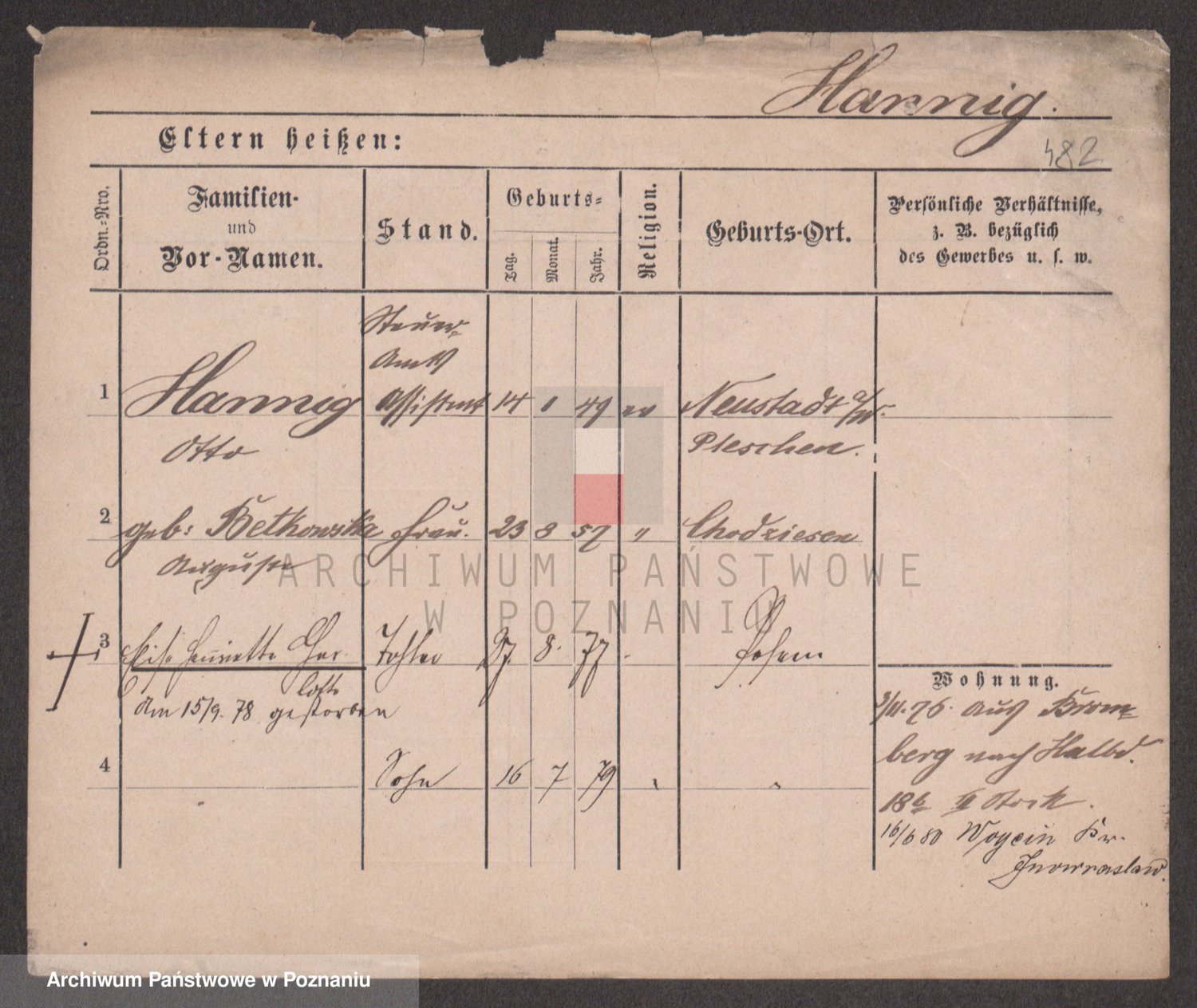 Podgląd karty osobowej dostępny jest po kliknięciu na nazwisko lub ikonkę karty. Można dokonywać powiększenia (ikony na górze) lub przechodzić między kolejnymi skanami (strzałki po bokach).