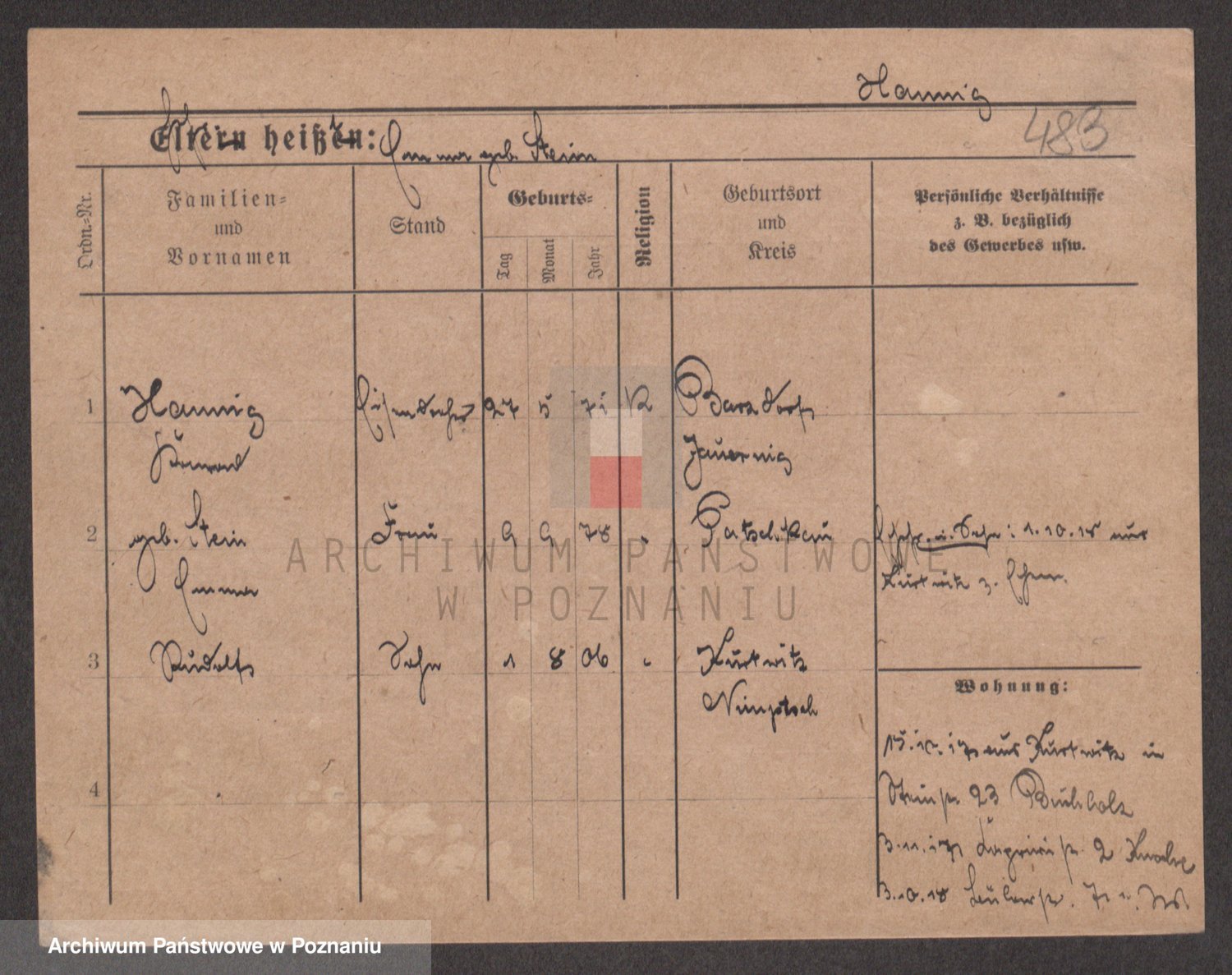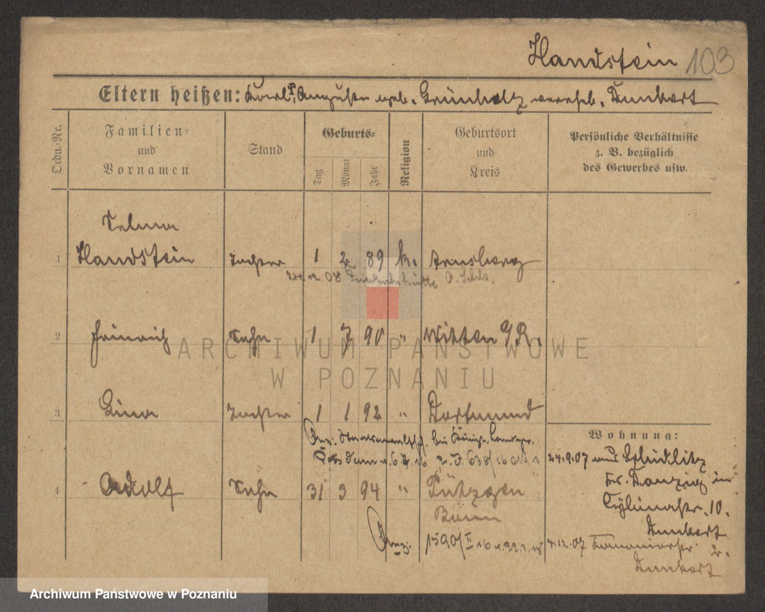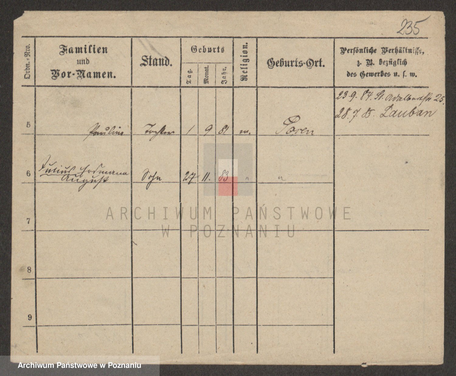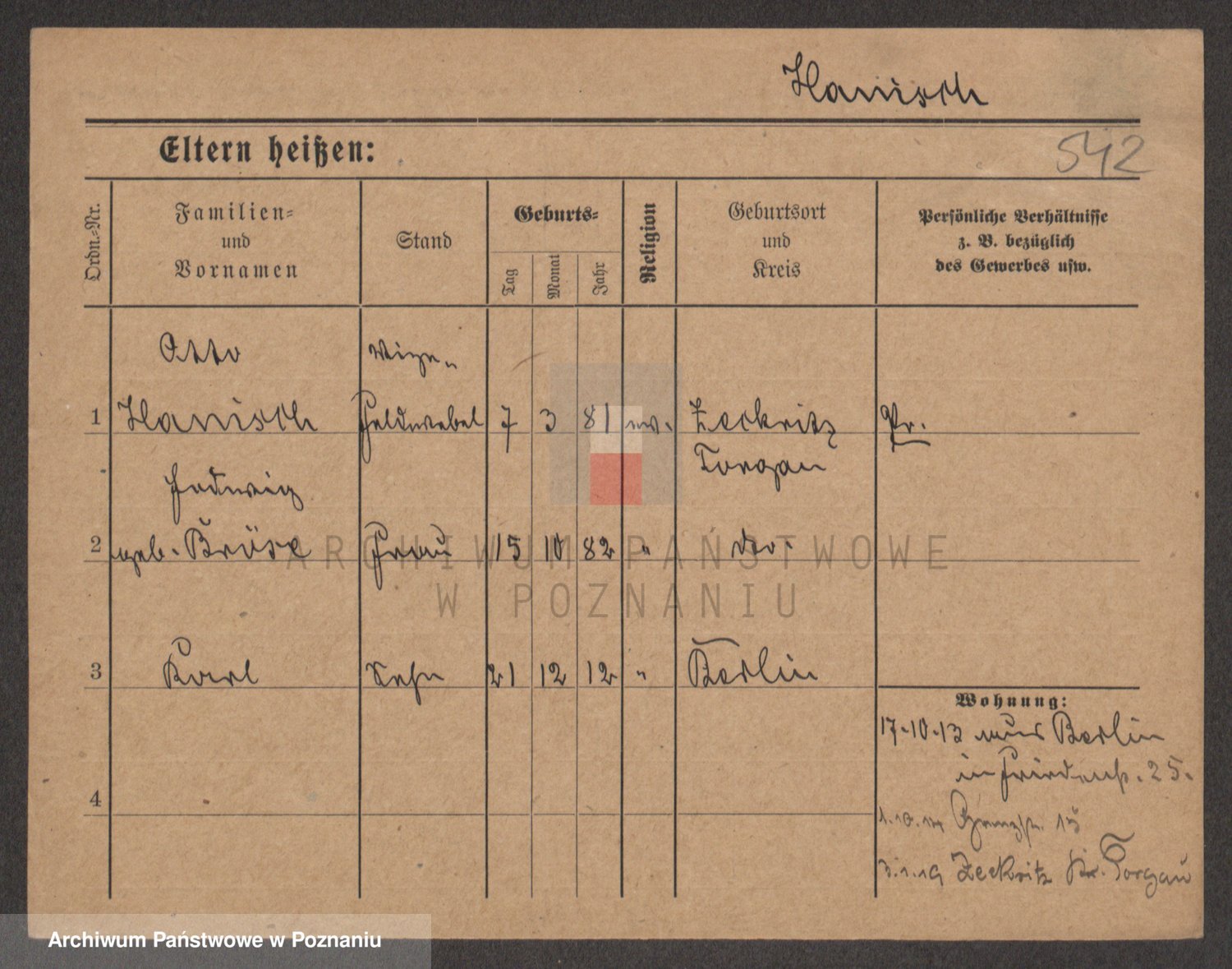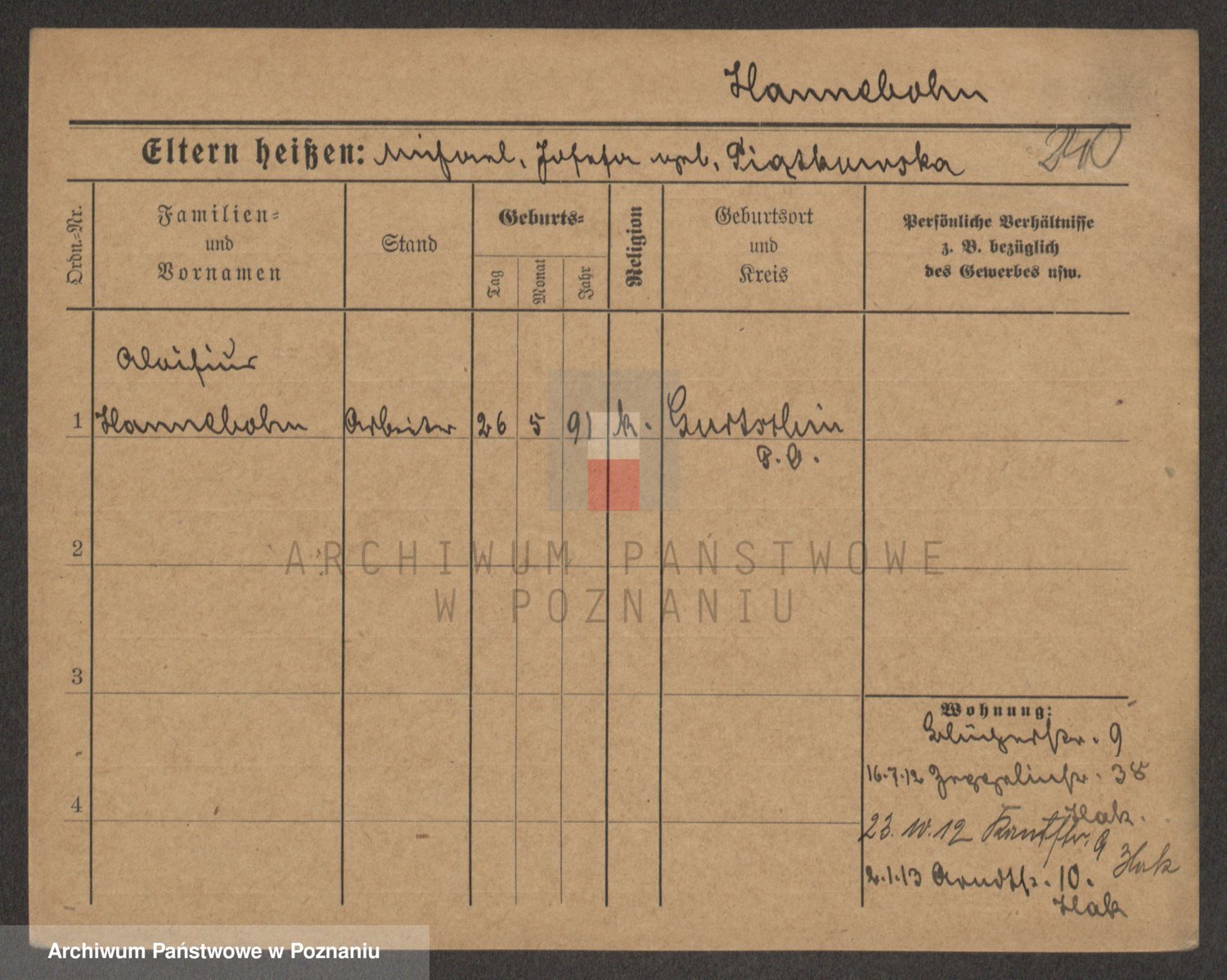 Podgląd karty osobowej dostępny jest po kliknięciu na nazwisko lub ikonkę karty. Można dokonywać powiększenia (ikony na górze) lub przechodzić między kolejnymi skanami (strzałki po bokach).