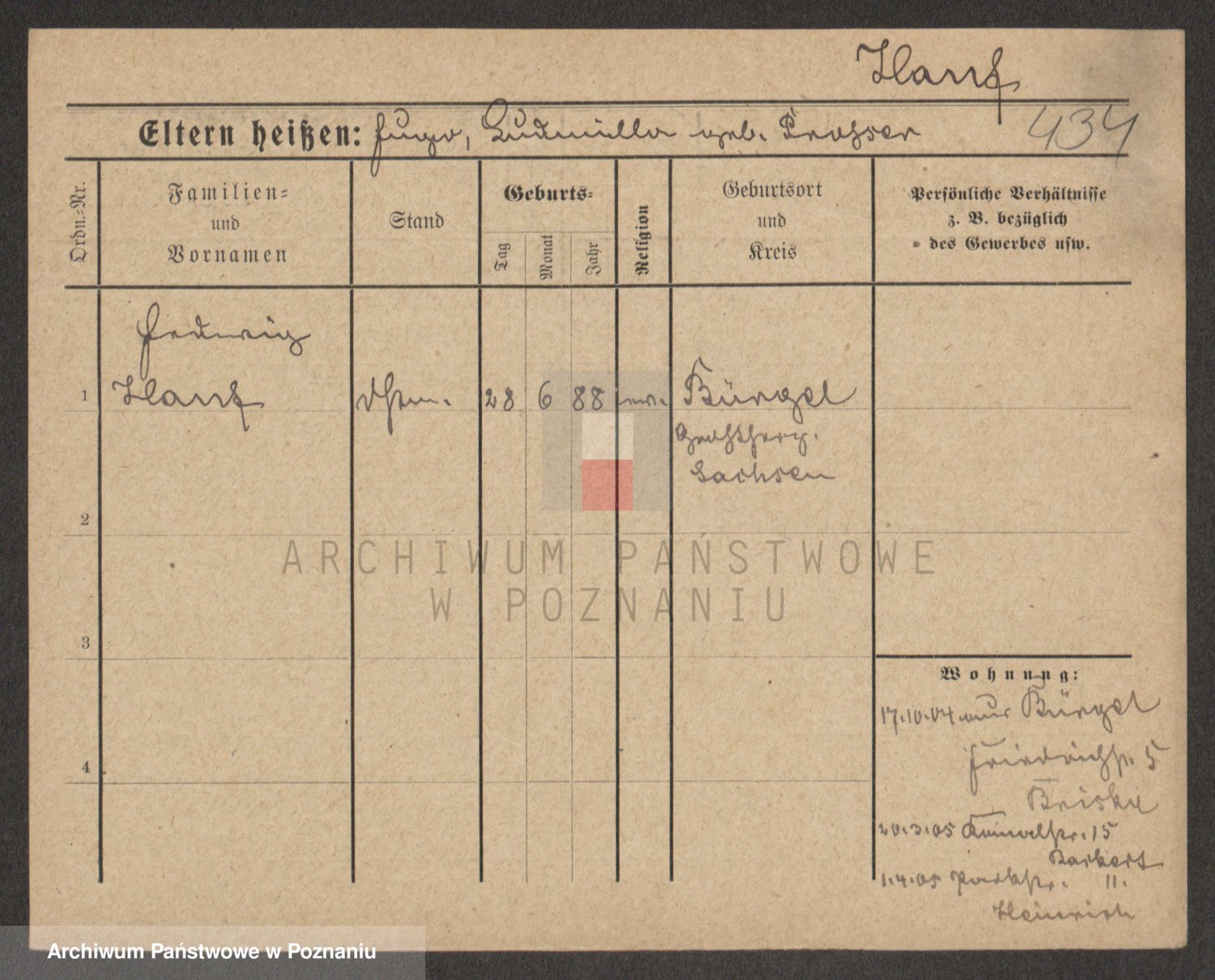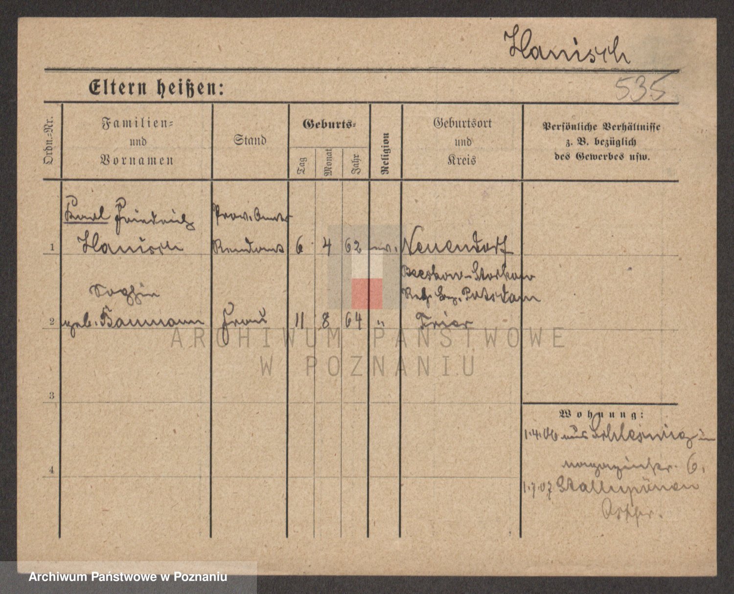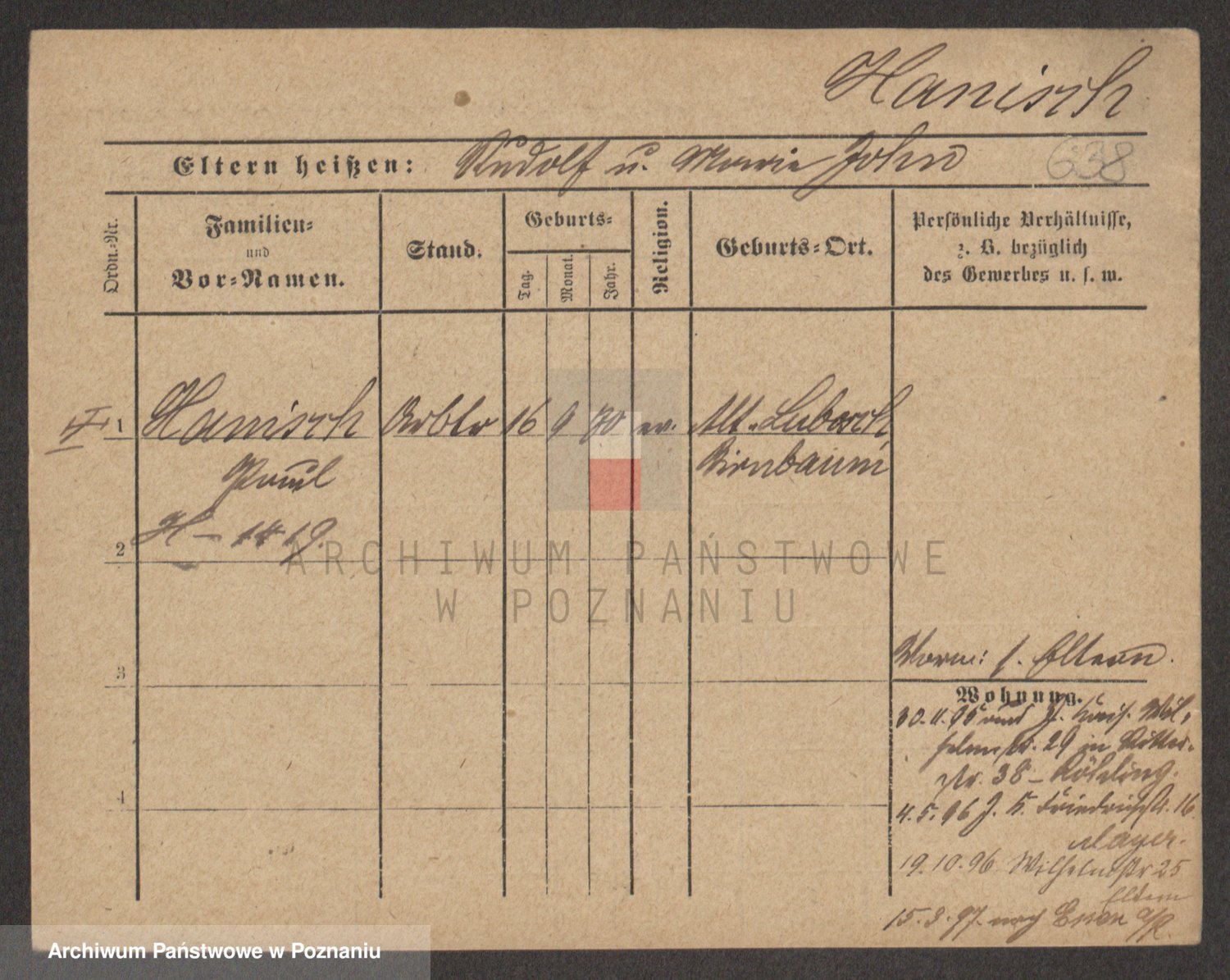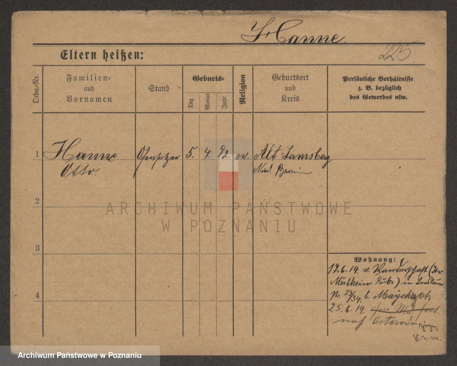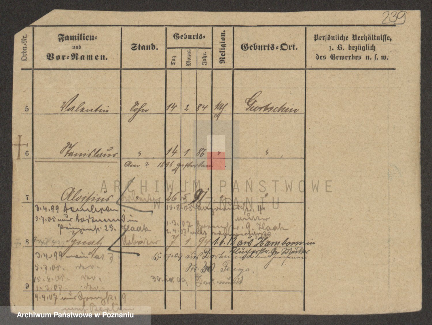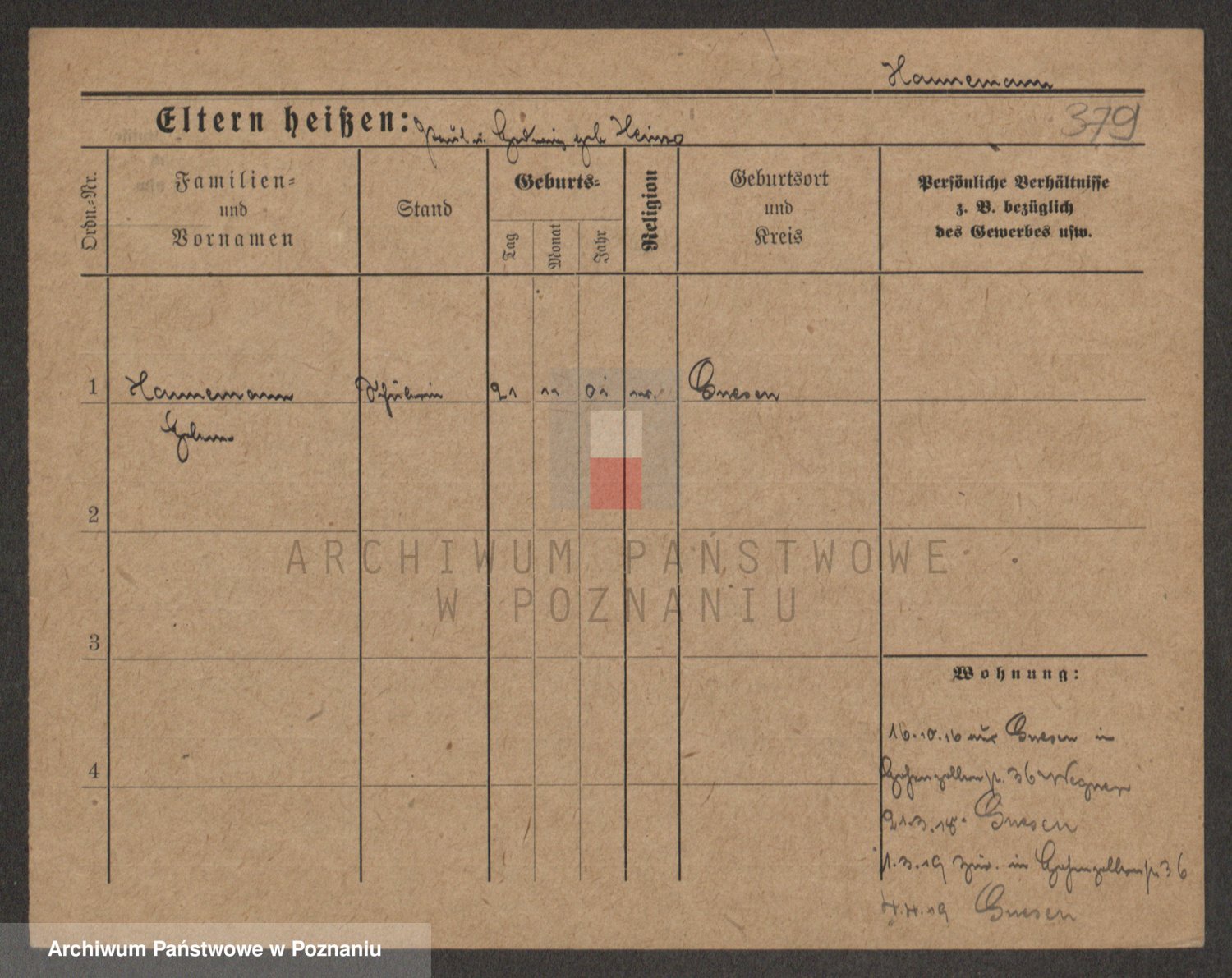 Podgląd karty osobowej dostępny jest po kliknięciu na nazwisko lub ikonkę karty. Można dokonywać powiększenia (ikony na górze) lub przechodzić między kolejnymi skanami (strzałki po bokach).