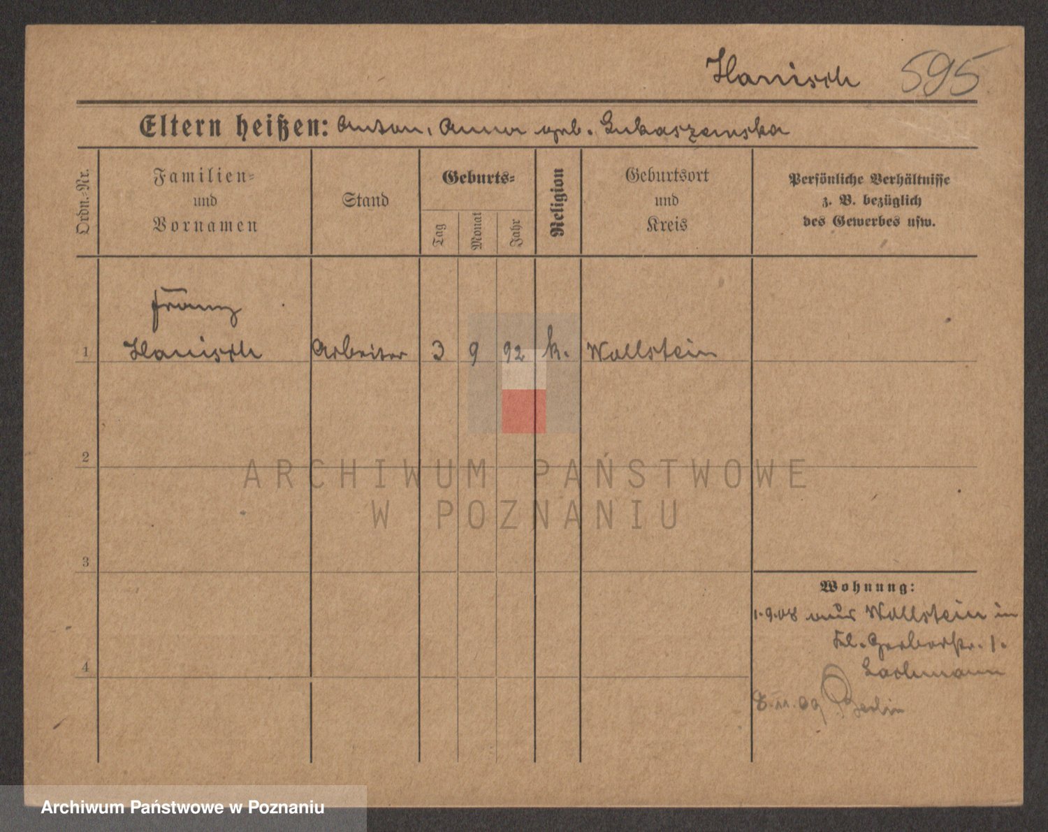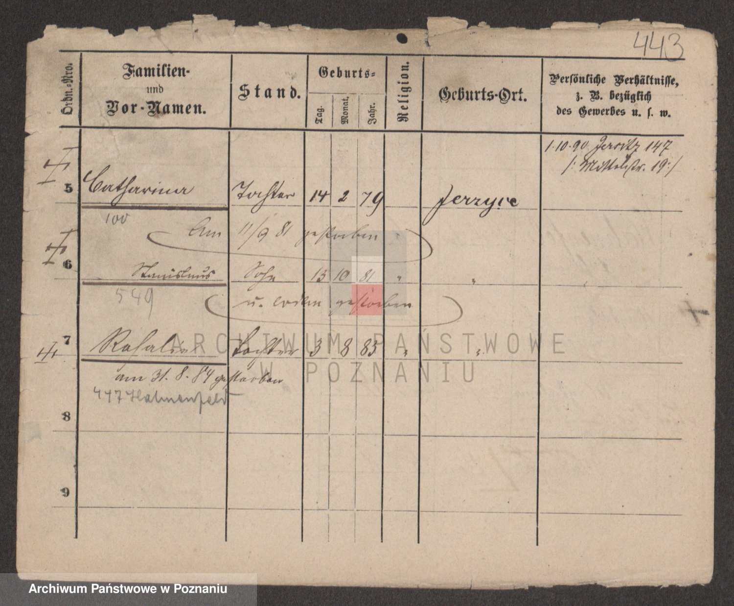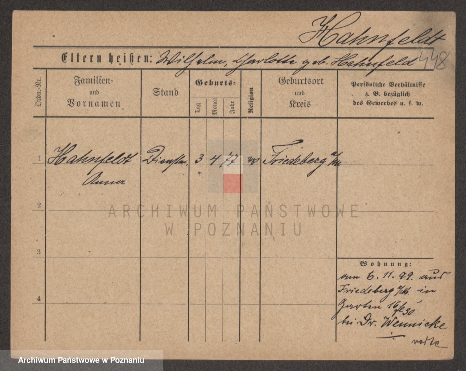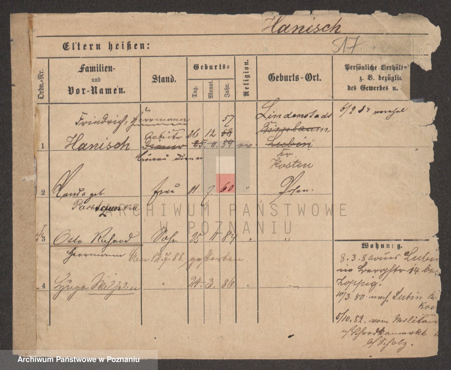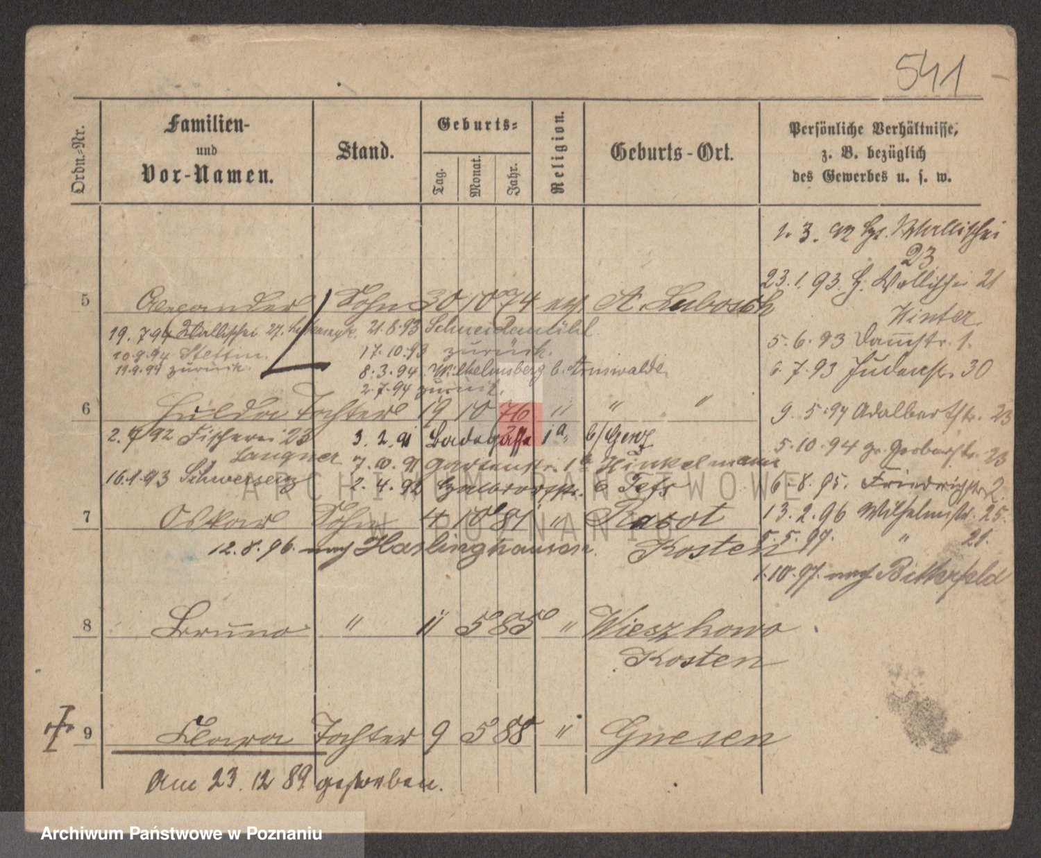 Podgląd karty osobowej dostępny jest po kliknięciu na nazwisko lub ikonkę karty. Można dokonywać powiększenia (ikony na górze) lub przechodzić między kolejnymi skanami (strzałki po bokach).