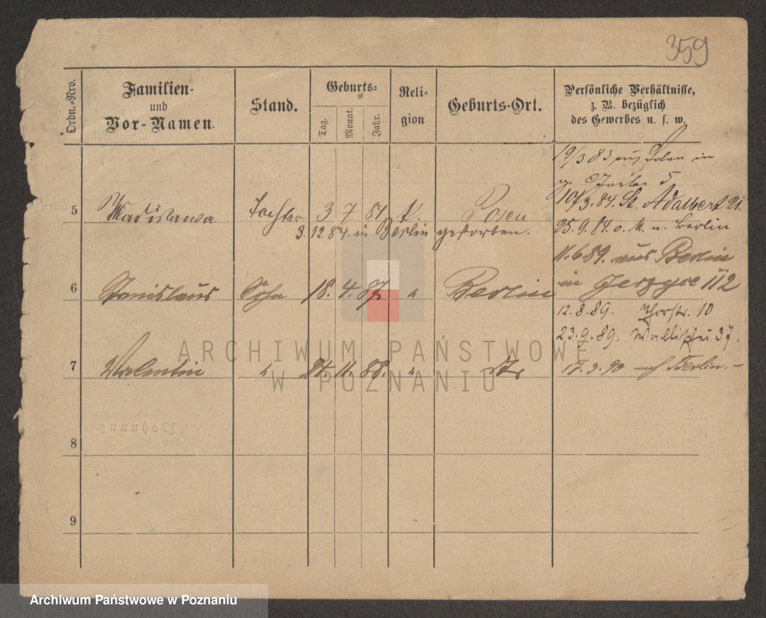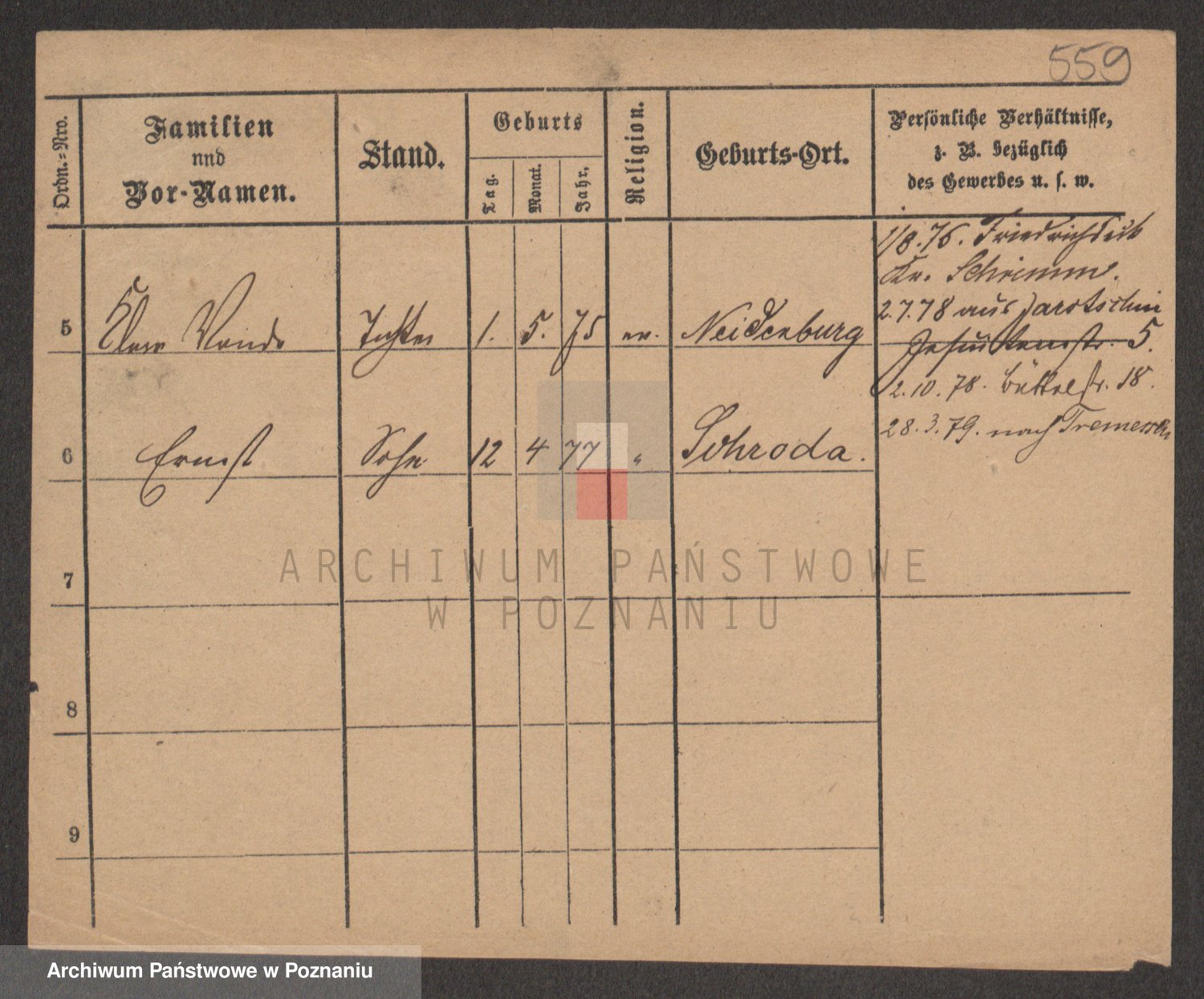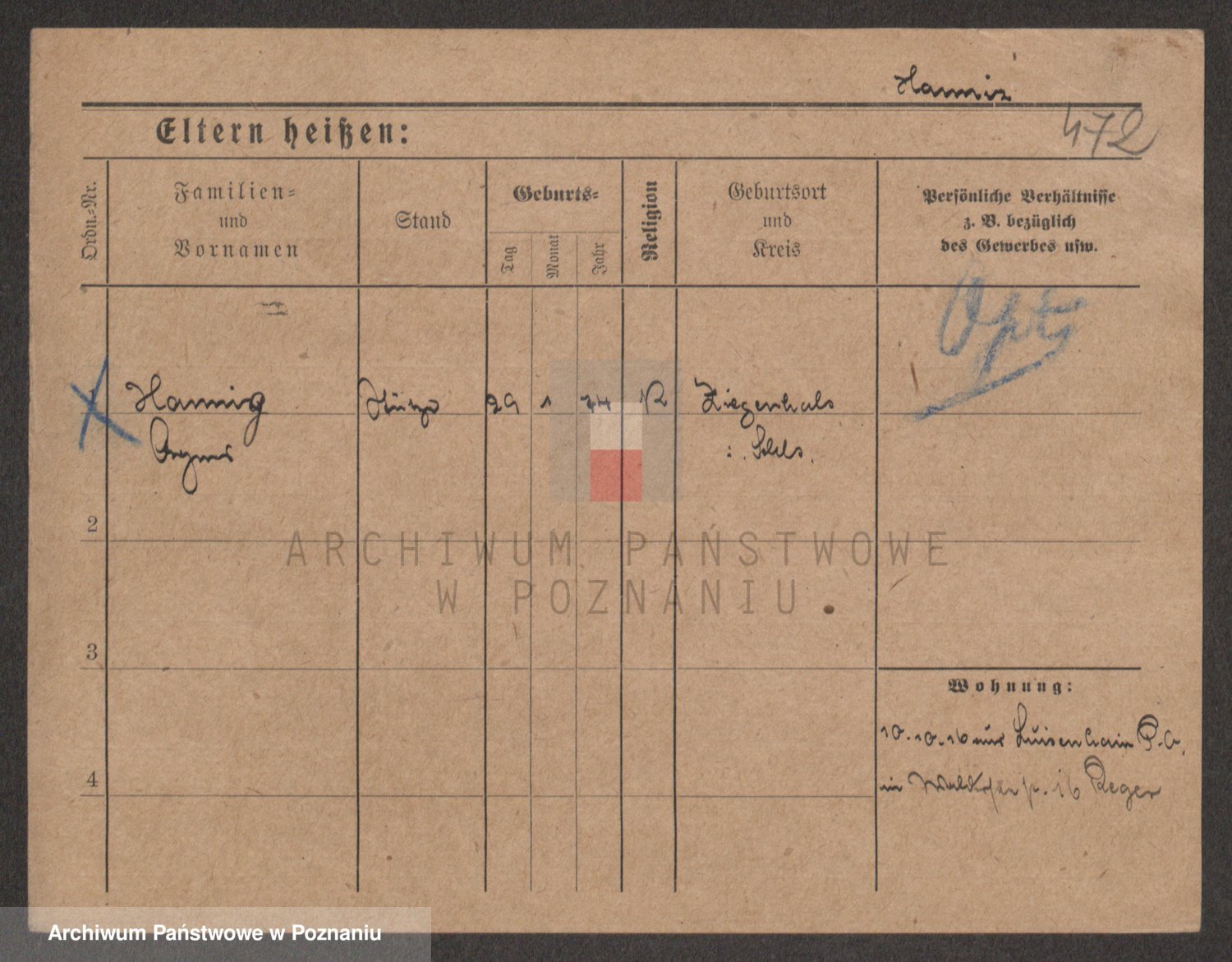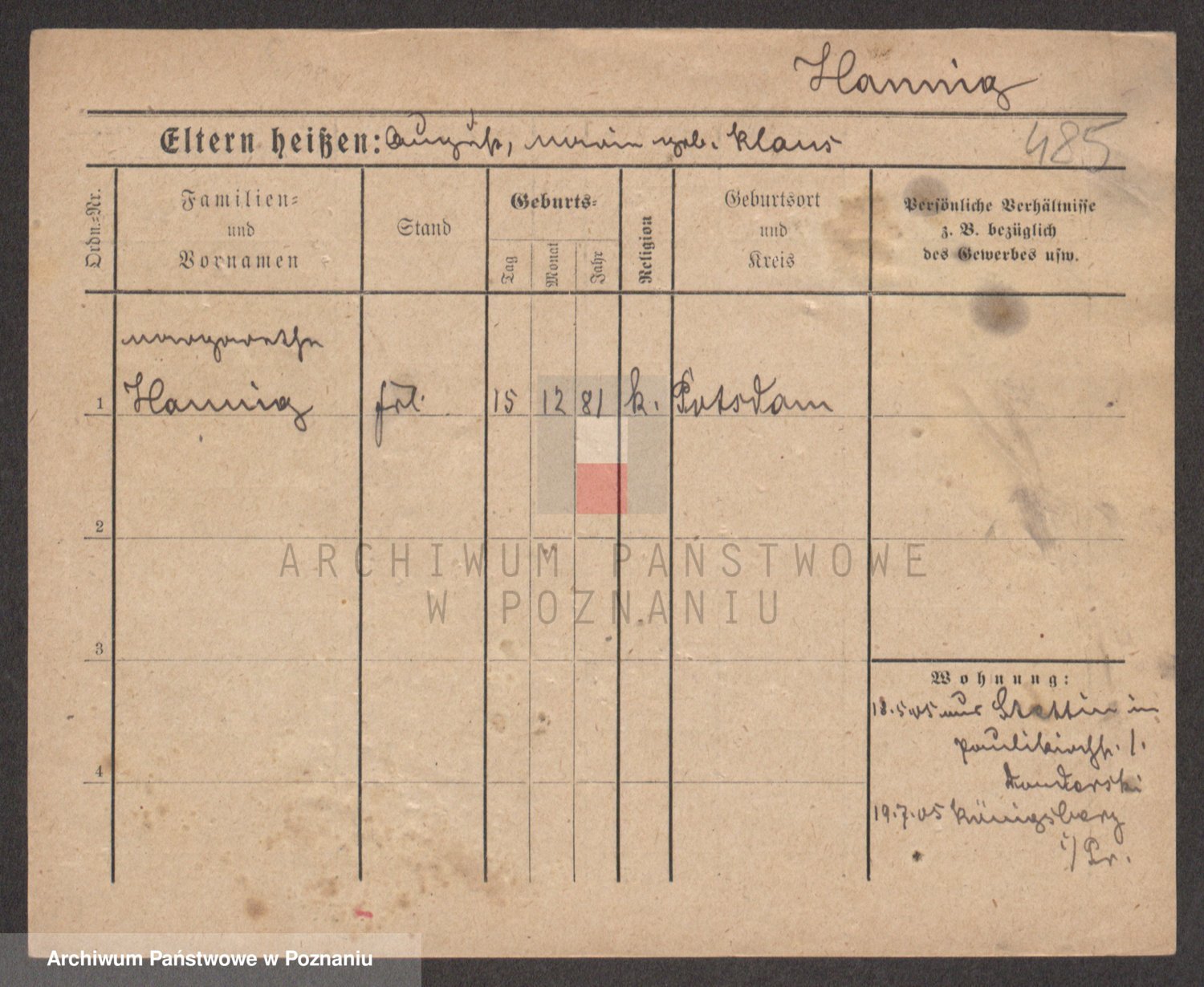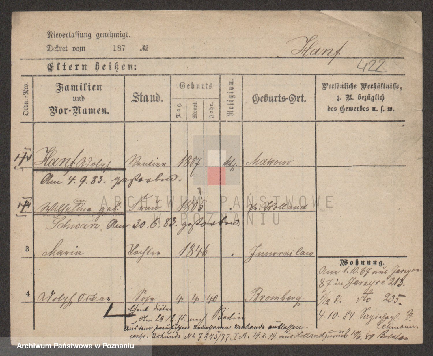 Podgląd karty osobowej dostępny jest po kliknięciu na nazwisko lub ikonkę karty. Można dokonywać powiększenia (ikony na górze) lub przechodzić między kolejnymi skanami (strzałki po bokach).