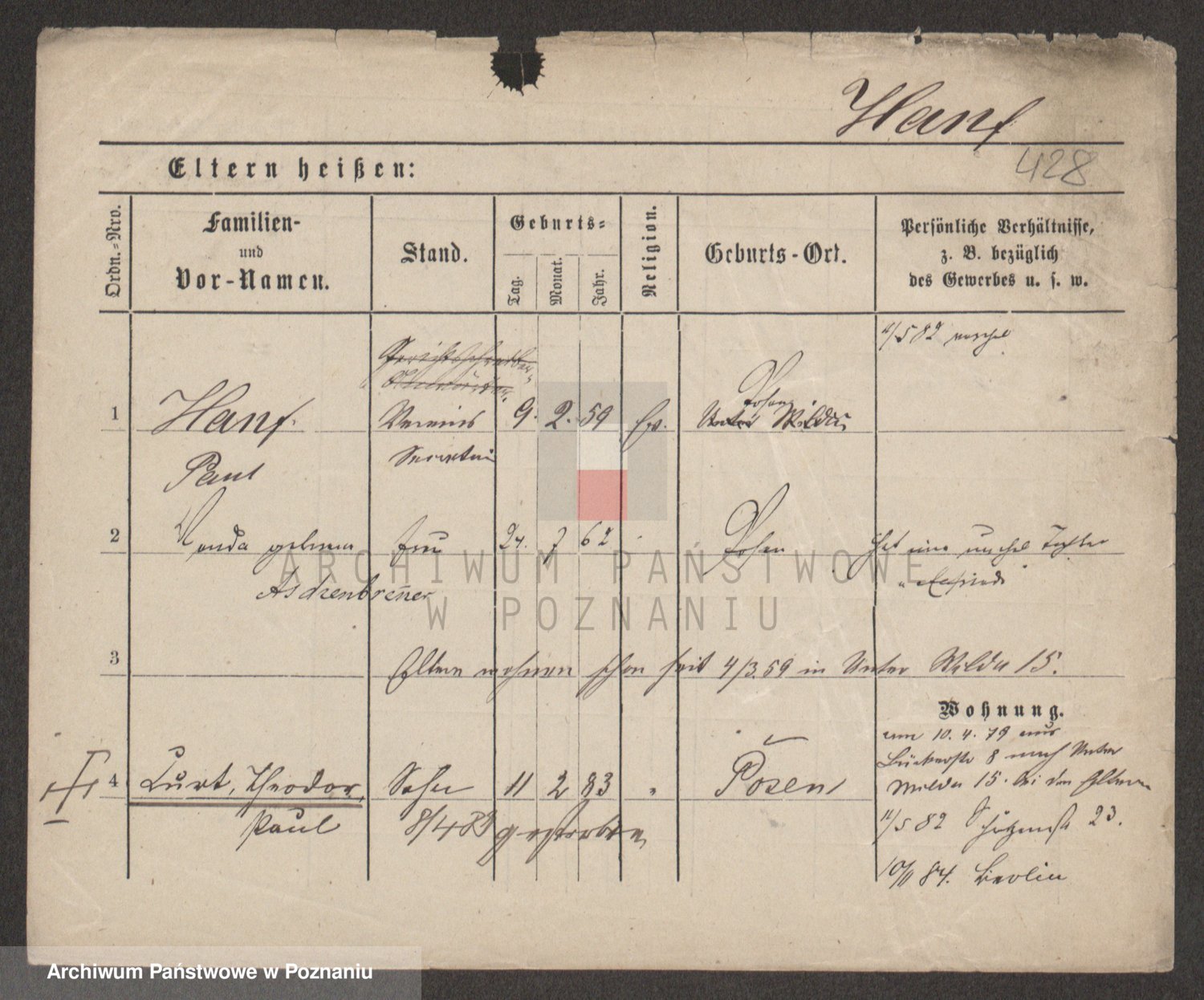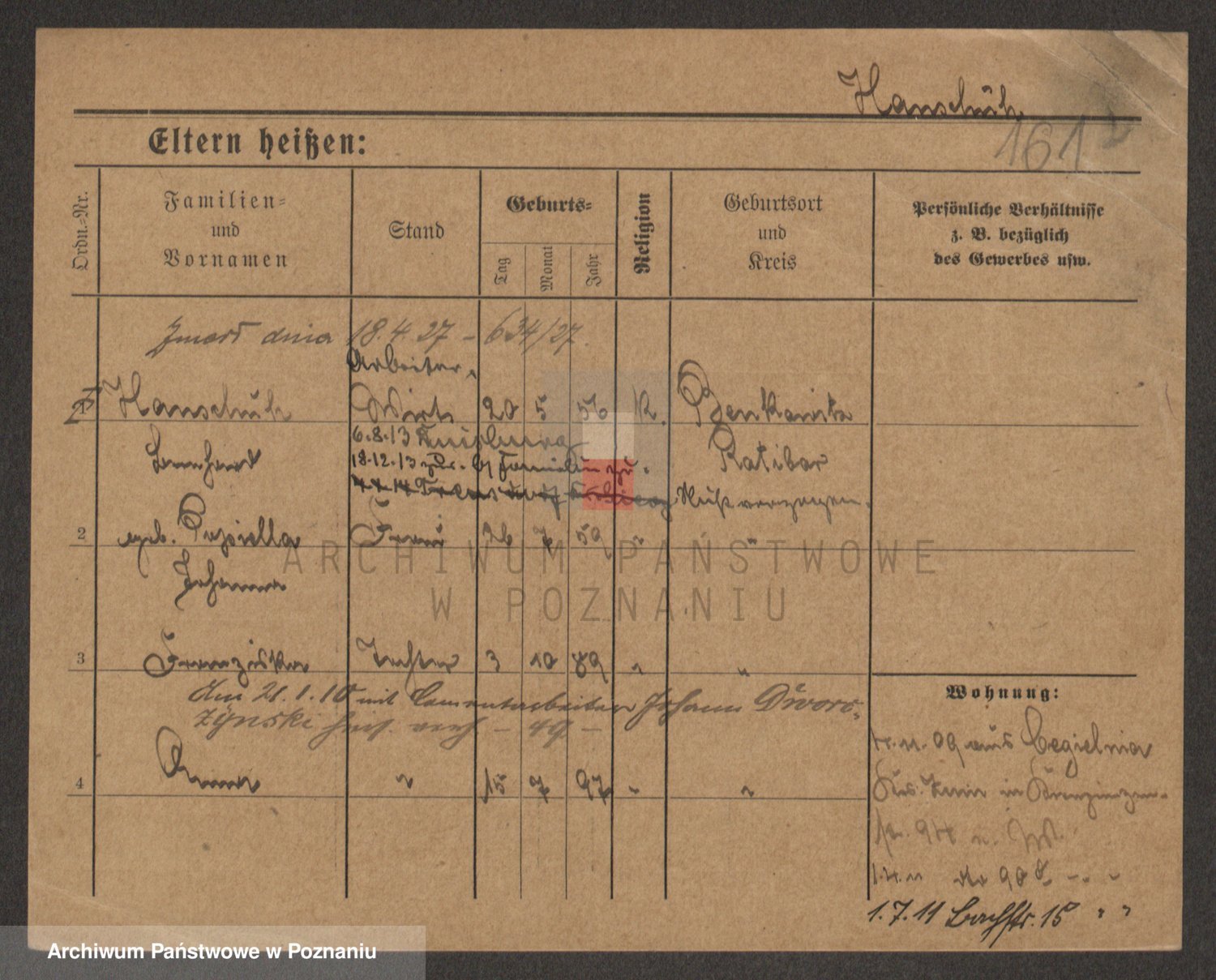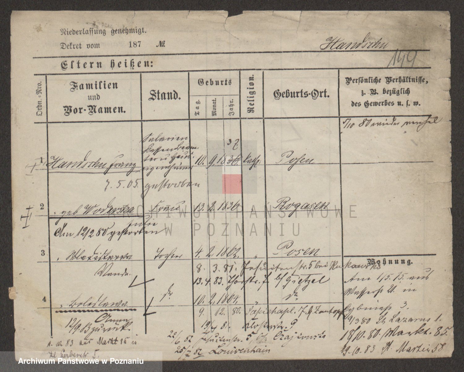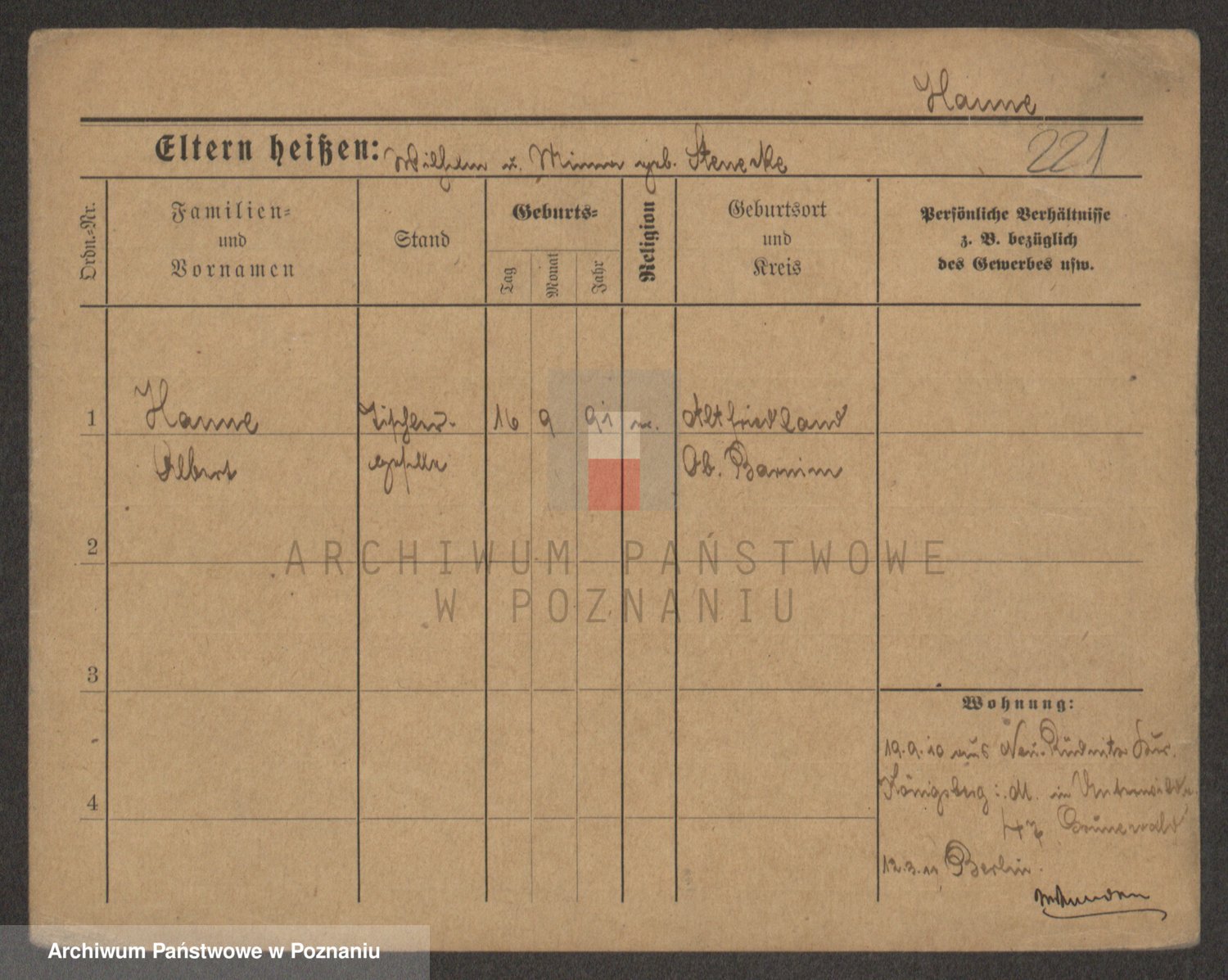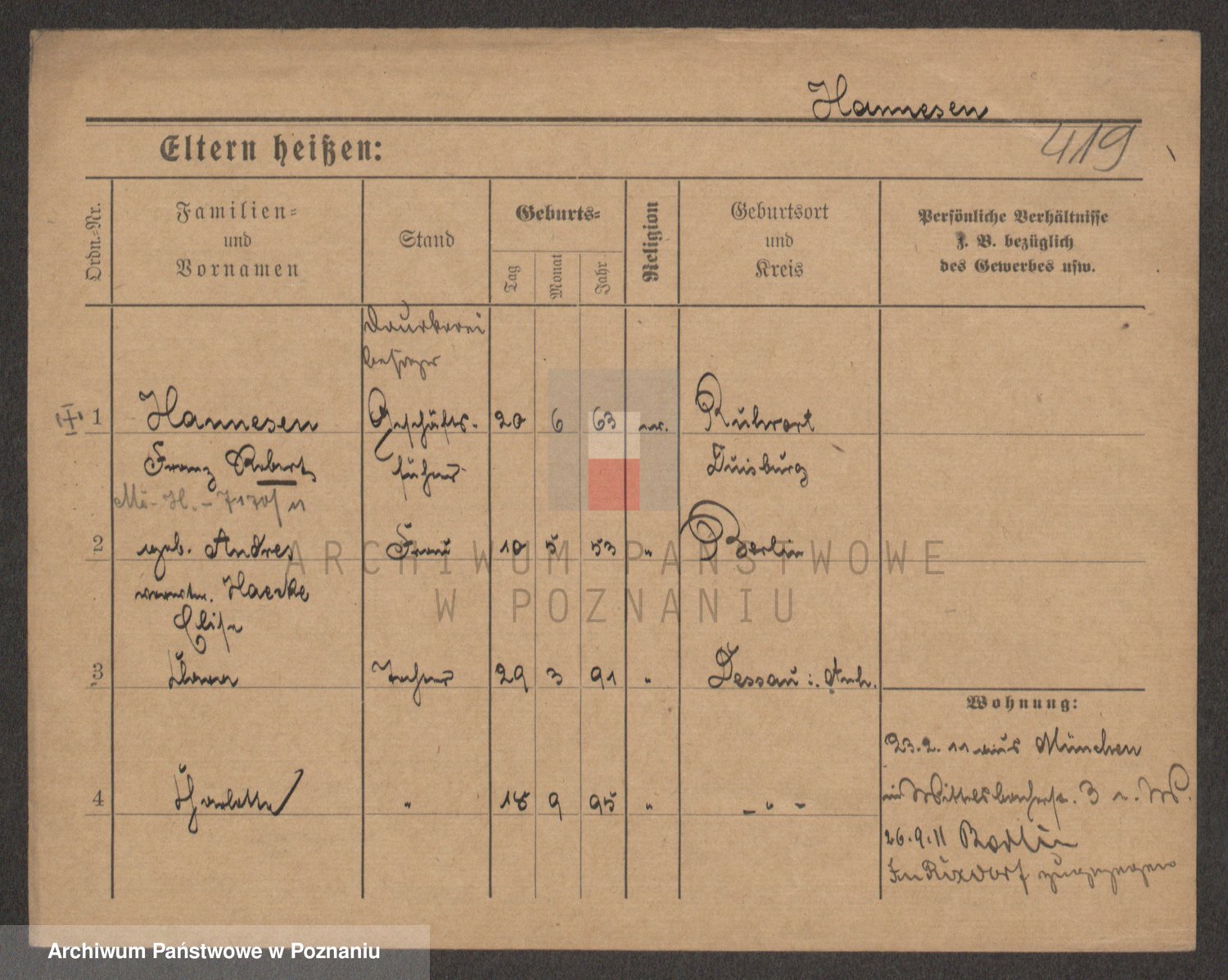 Podgląd karty osobowej dostępny jest po kliknięciu na nazwisko lub ikonkę karty. Można dokonywać powiększenia (ikony na górze) lub przechodzić między kolejnymi skanami (strzałki po bokach).