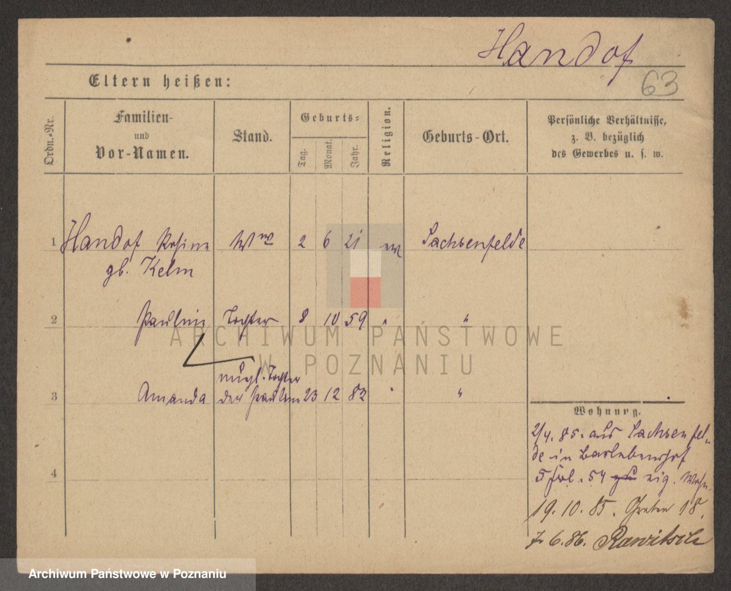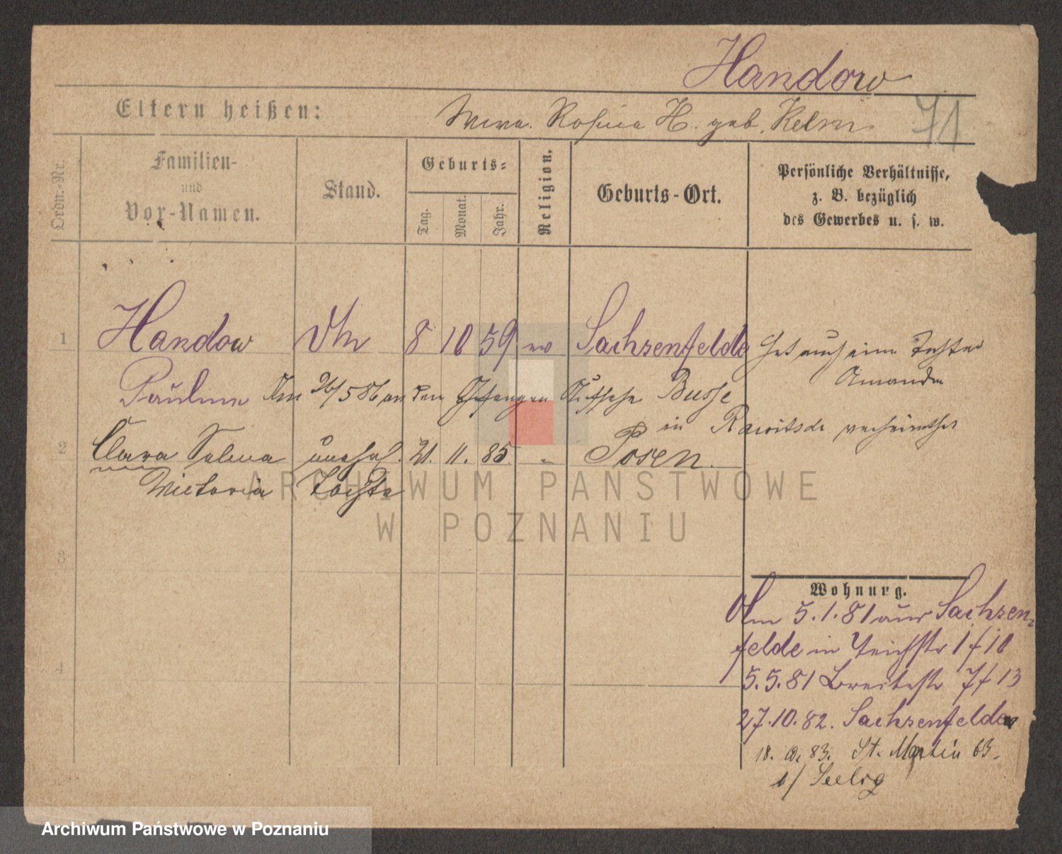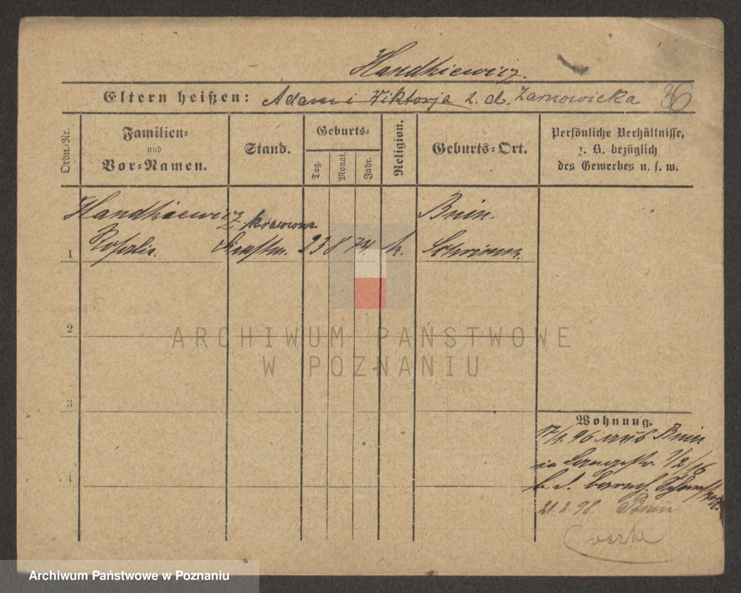Handkiewicz z d. Sarnowiecka, Victoria