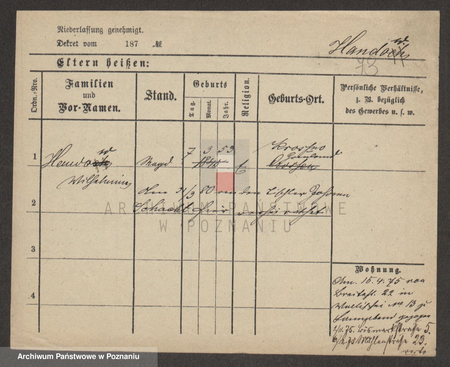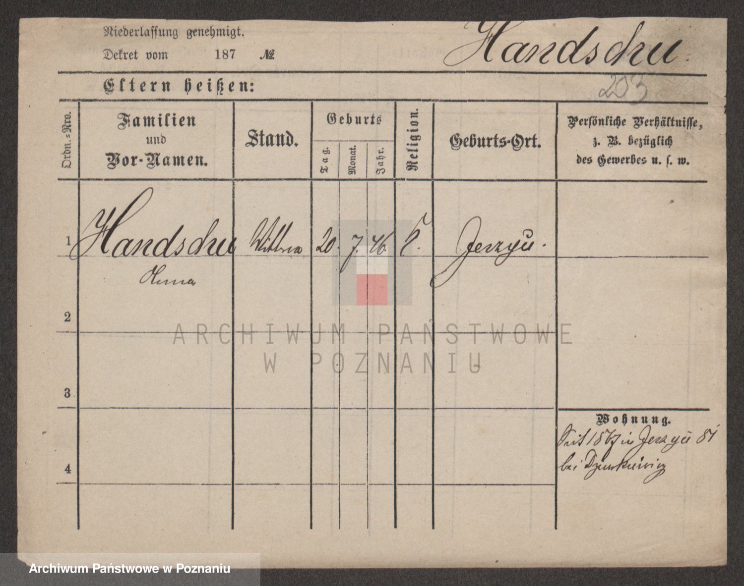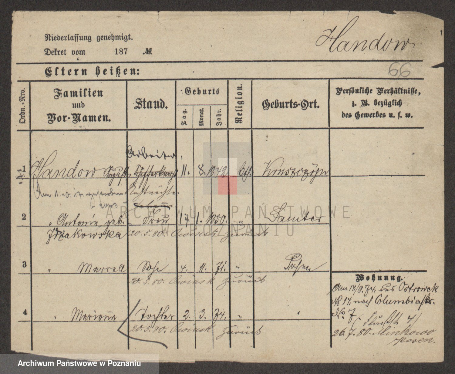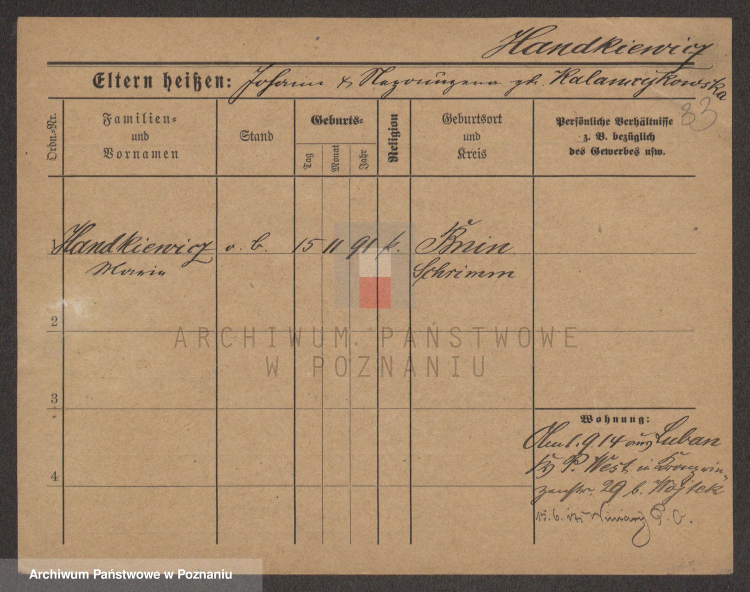 Handkiewicz z d. Sarnowiecka, Victoria