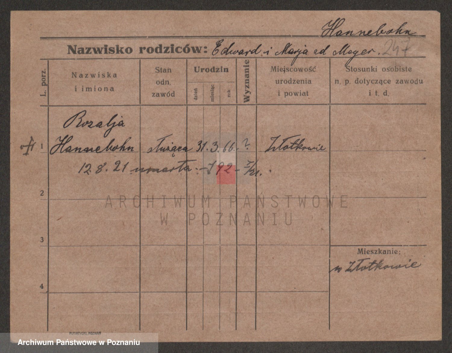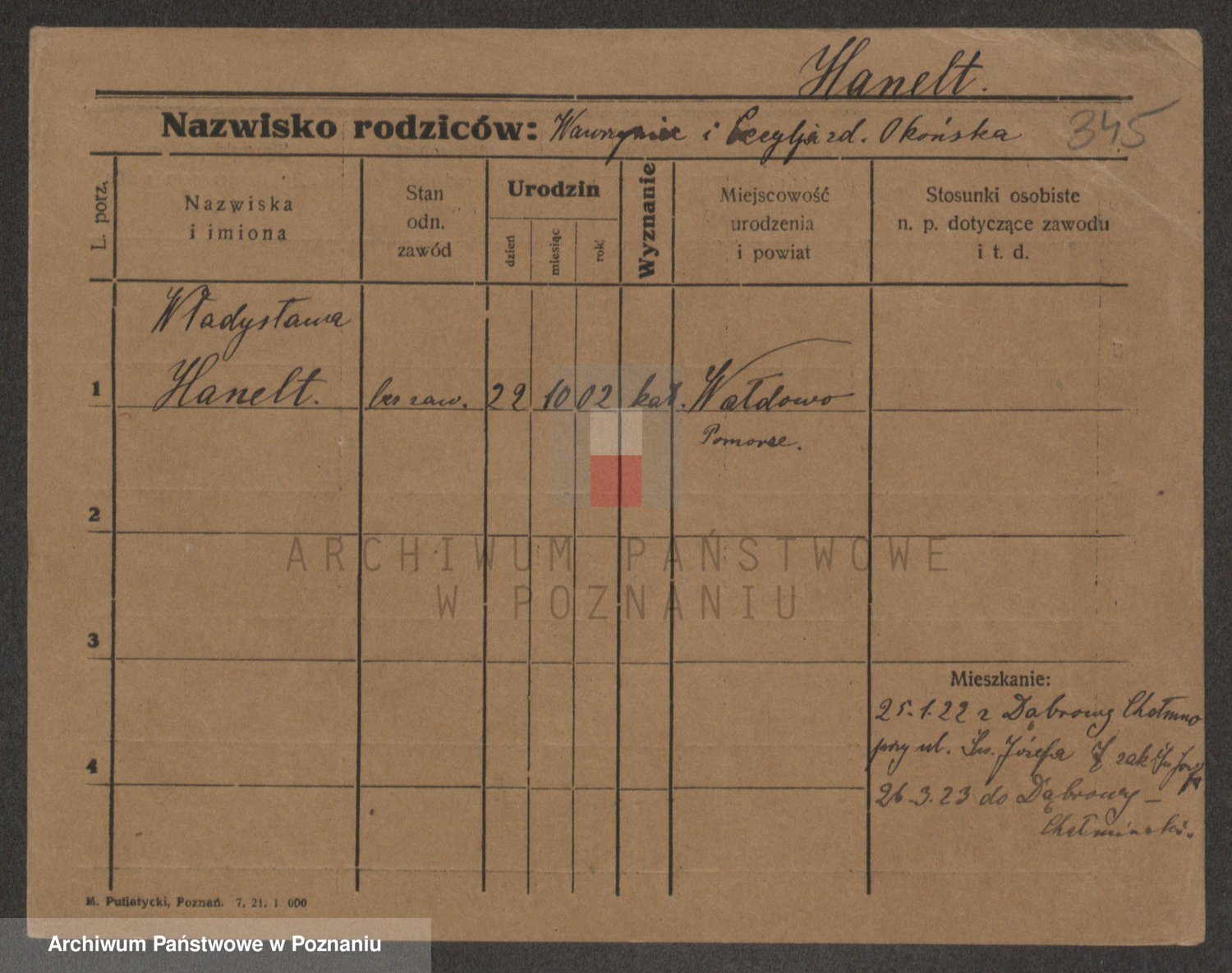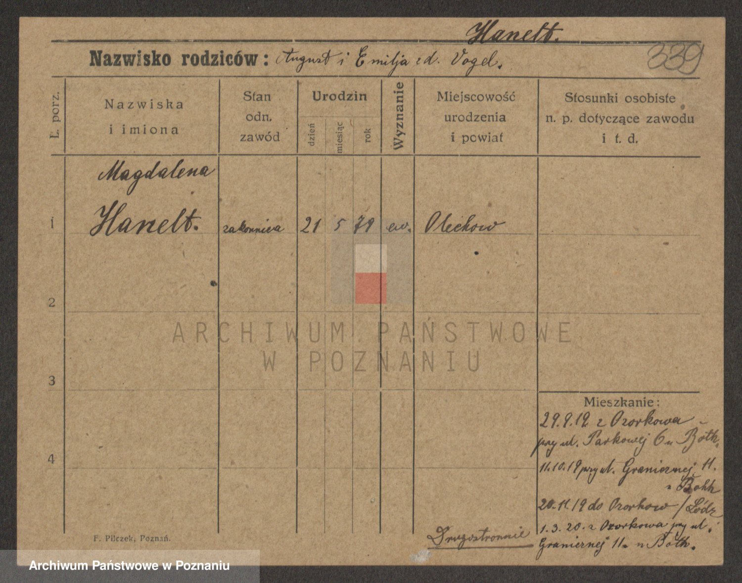 Hanczewski z d. Młotowska, Leokadja