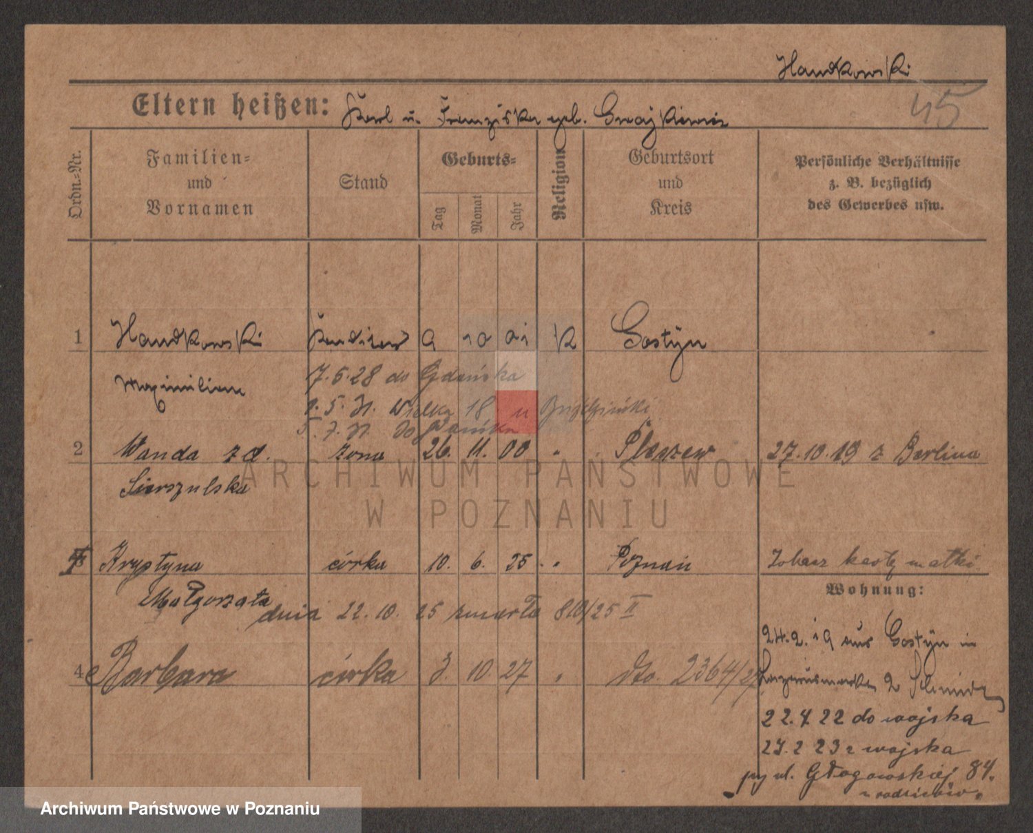 Handkiewicz, Cäzilie