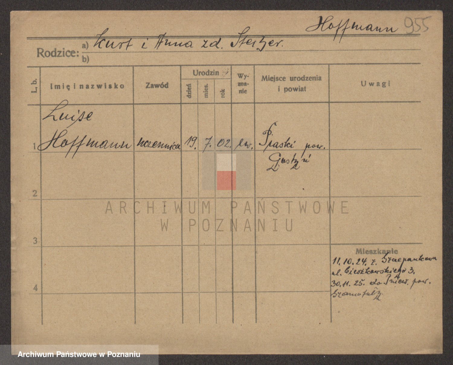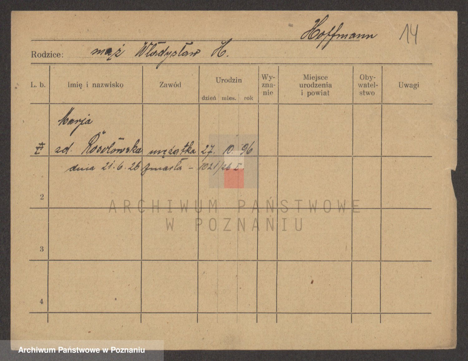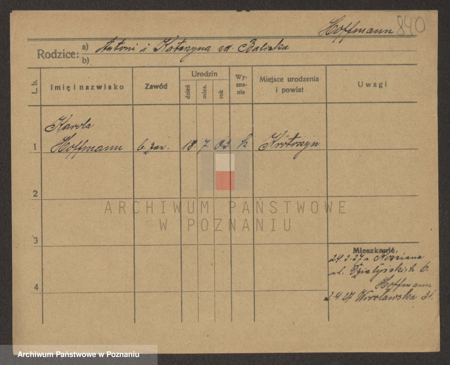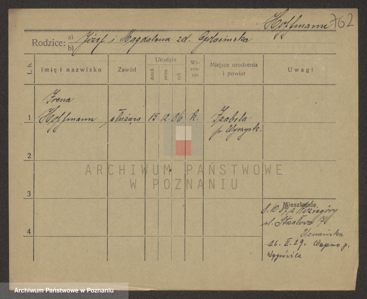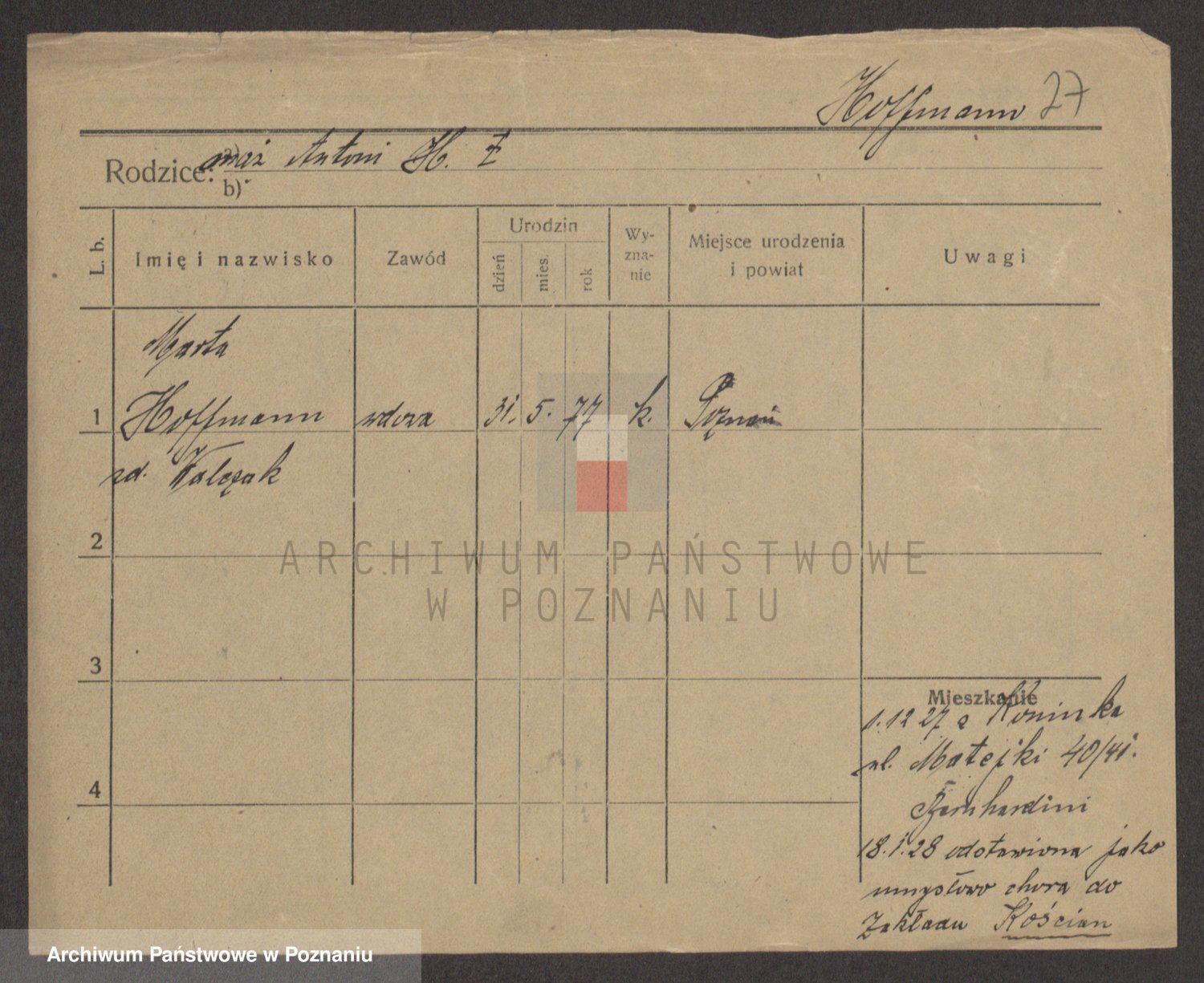 Hoffmann z d. Garczynska, Marie