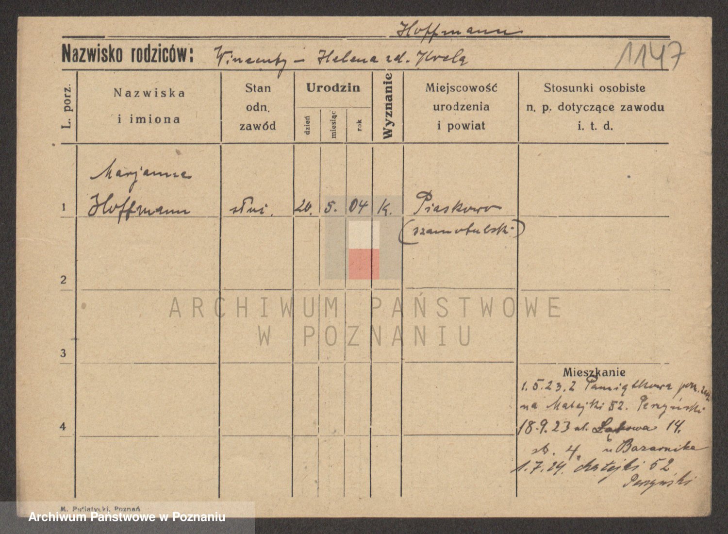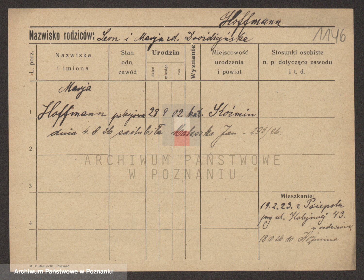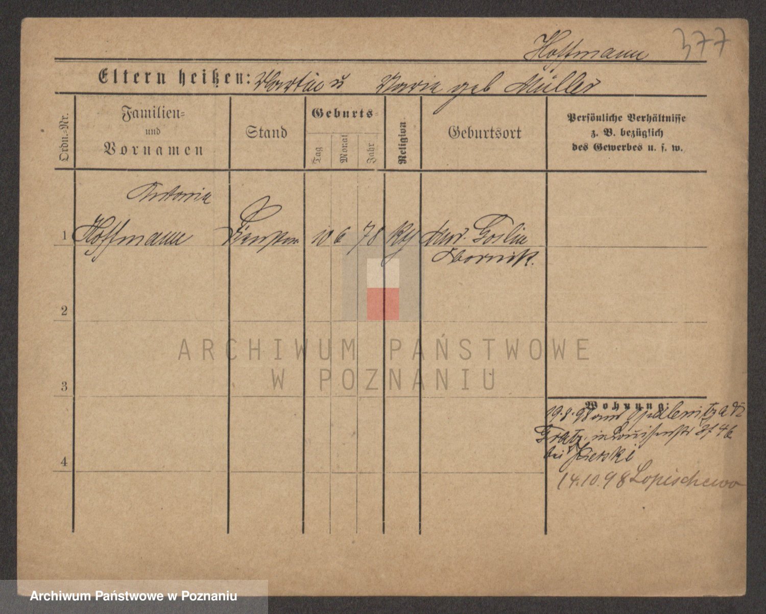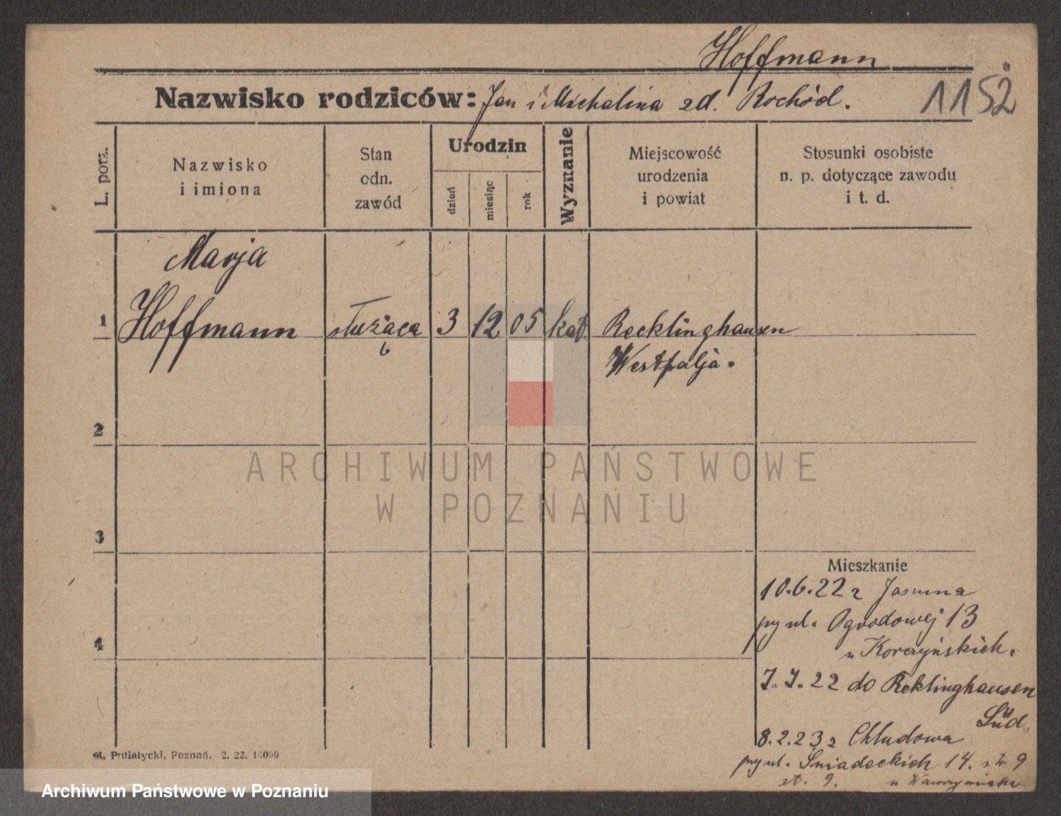 Hoffmann z d. Garczynska, Marie