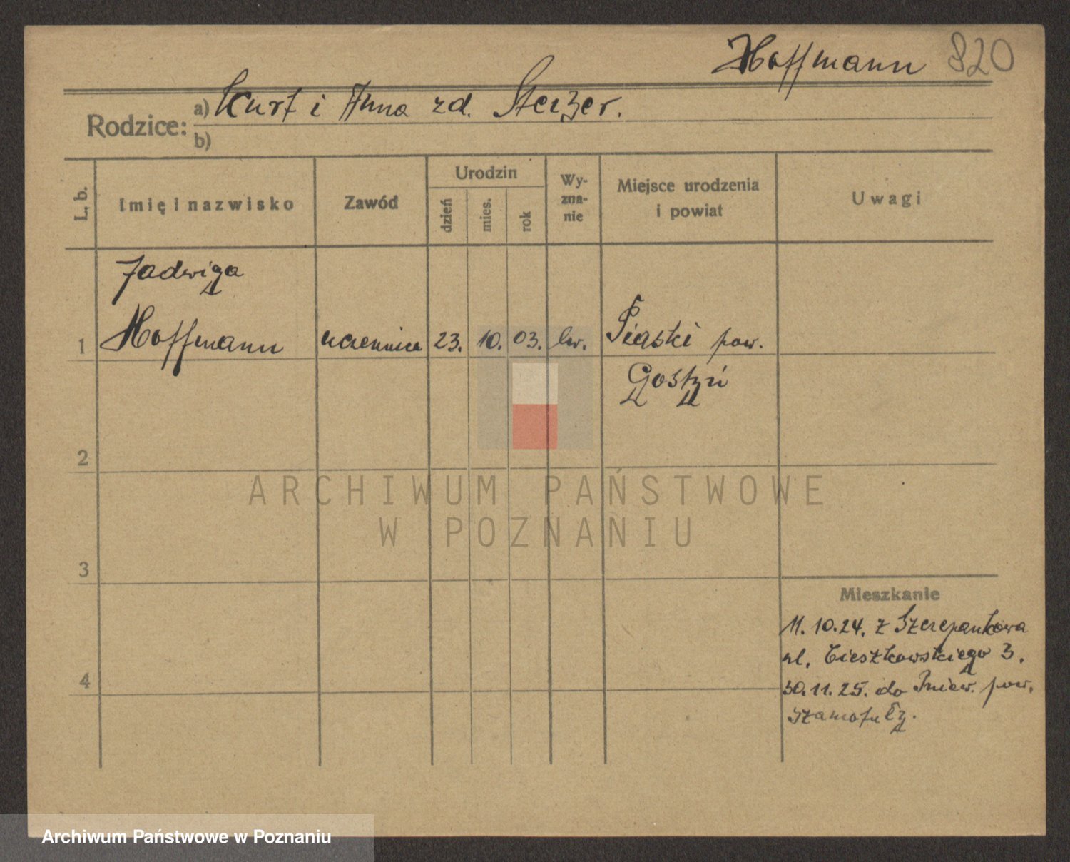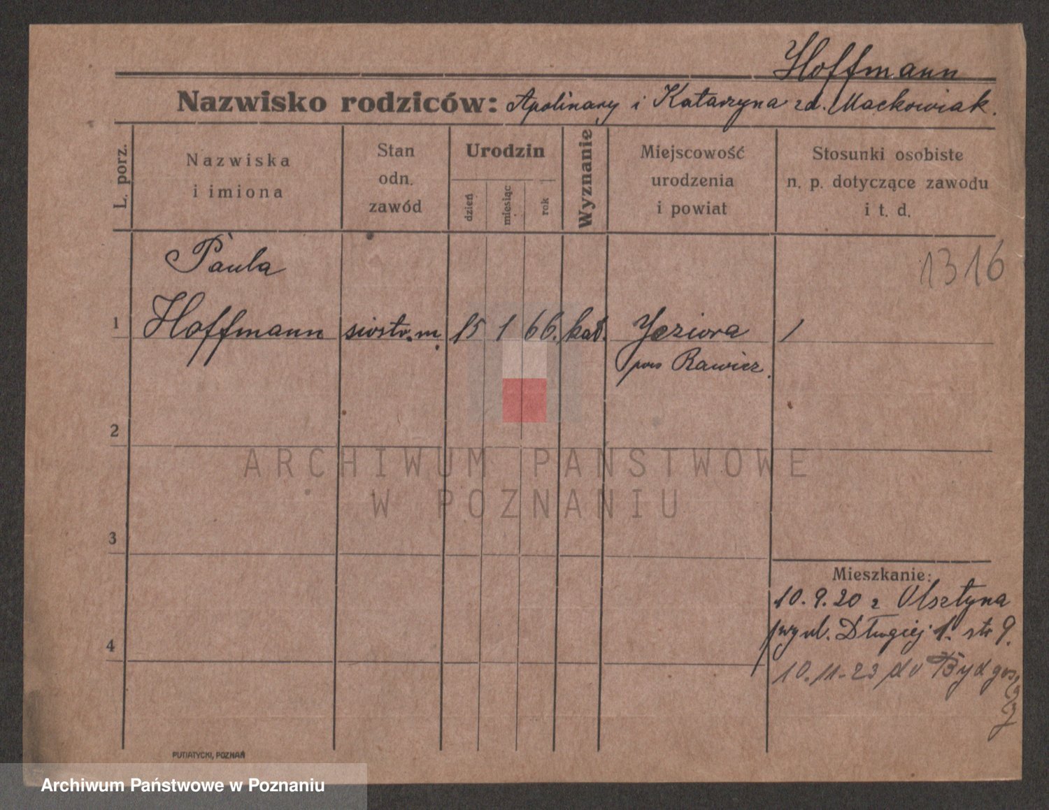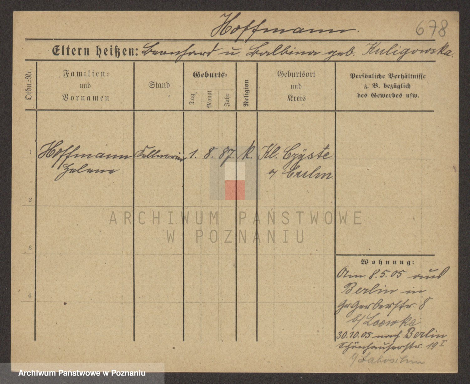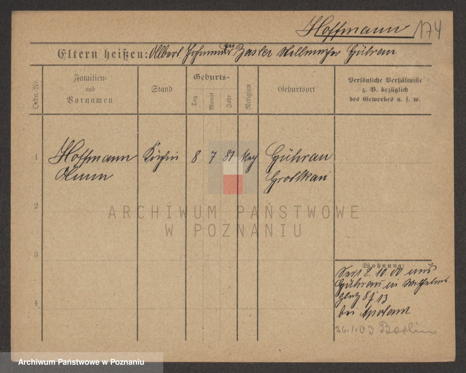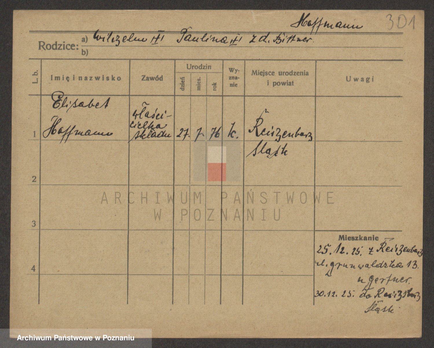 Hoffmann z d. Garczynska, Marie