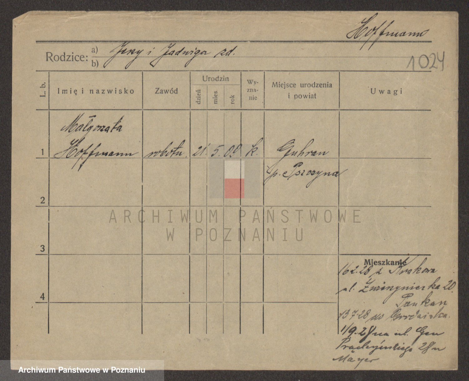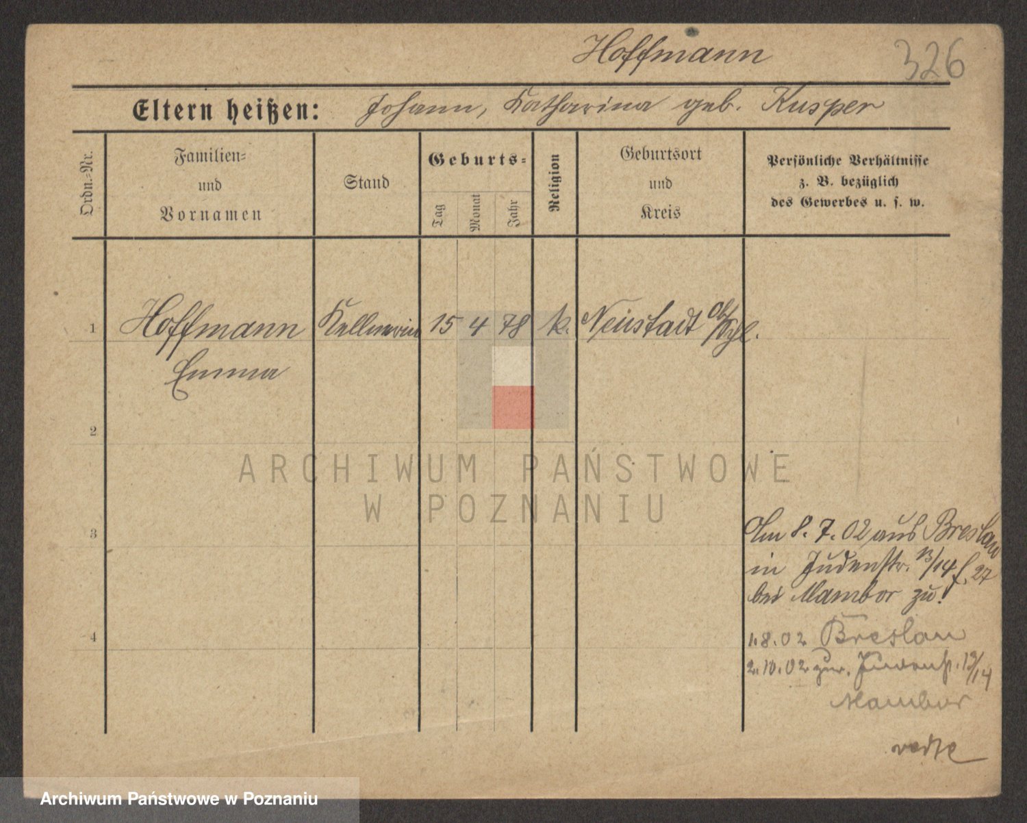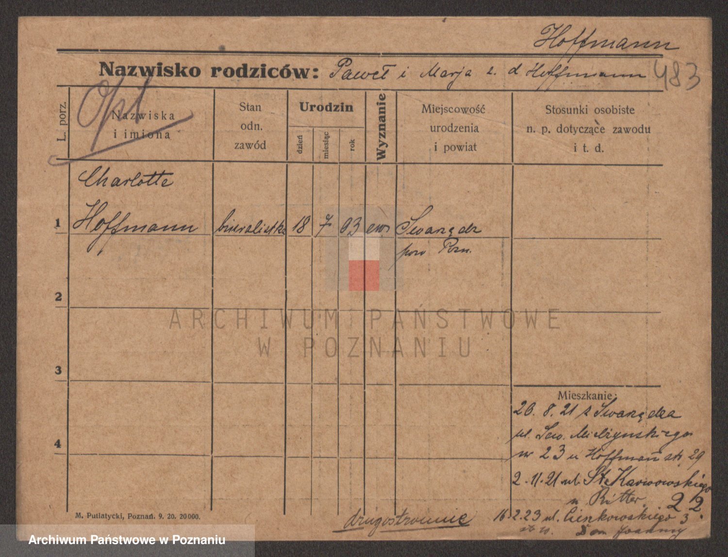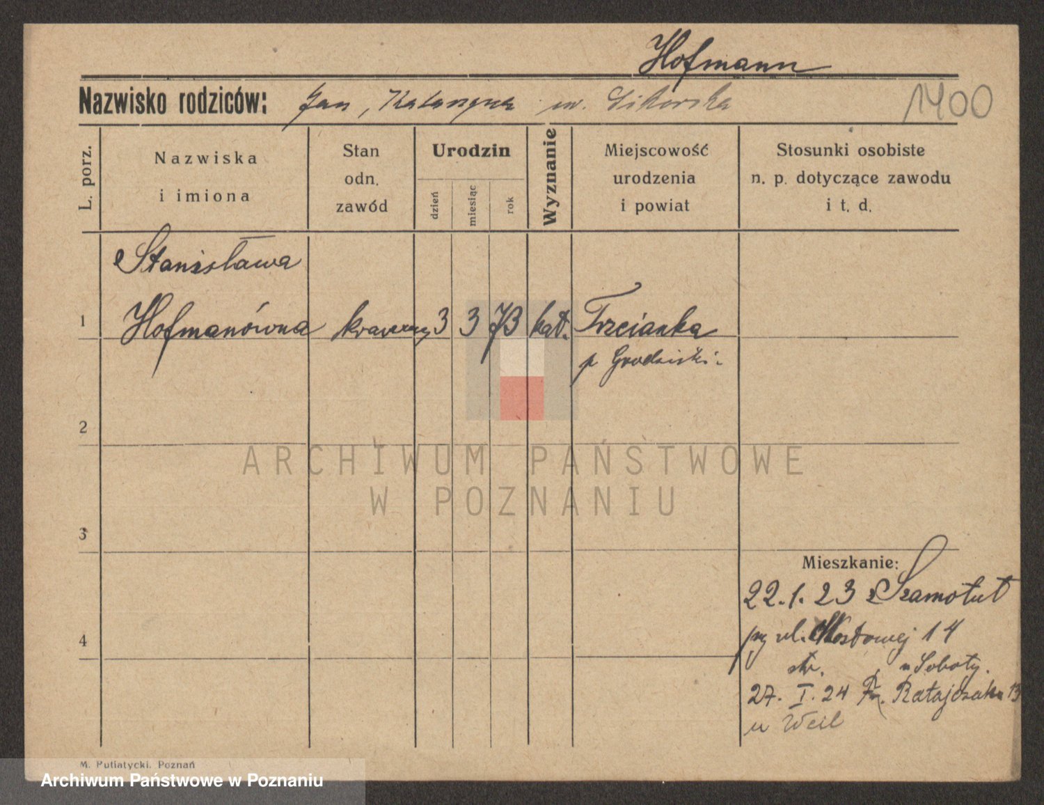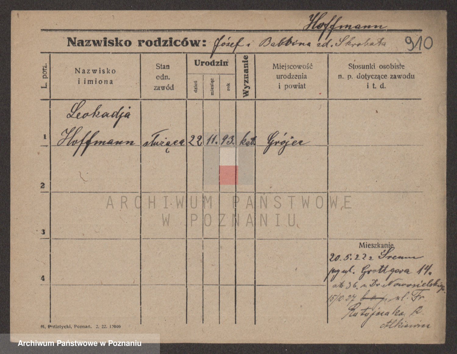 Hoffmann z d. Garczynska, Marie
