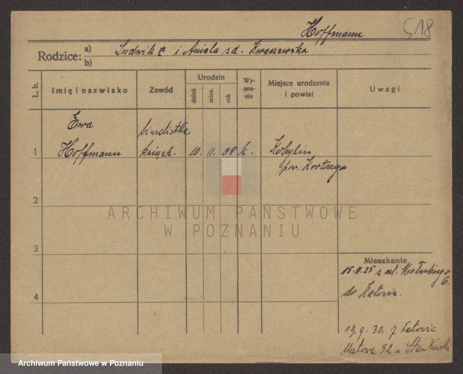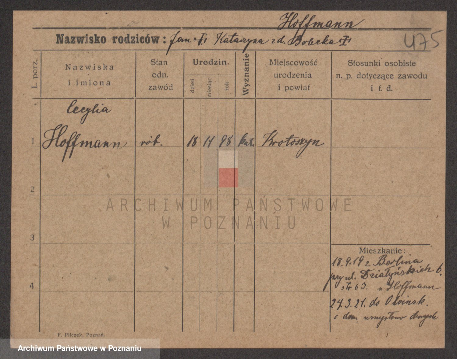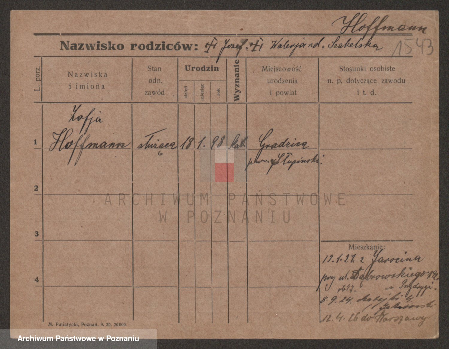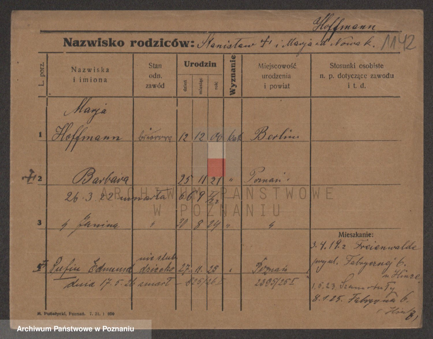 Hoffmann z d. Garczynska, Marie