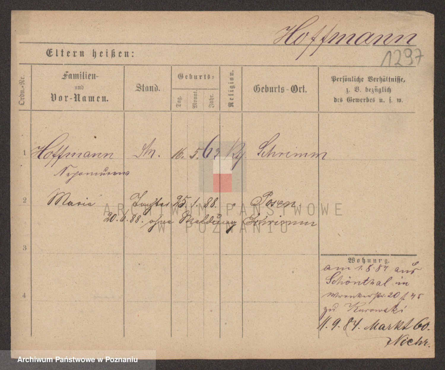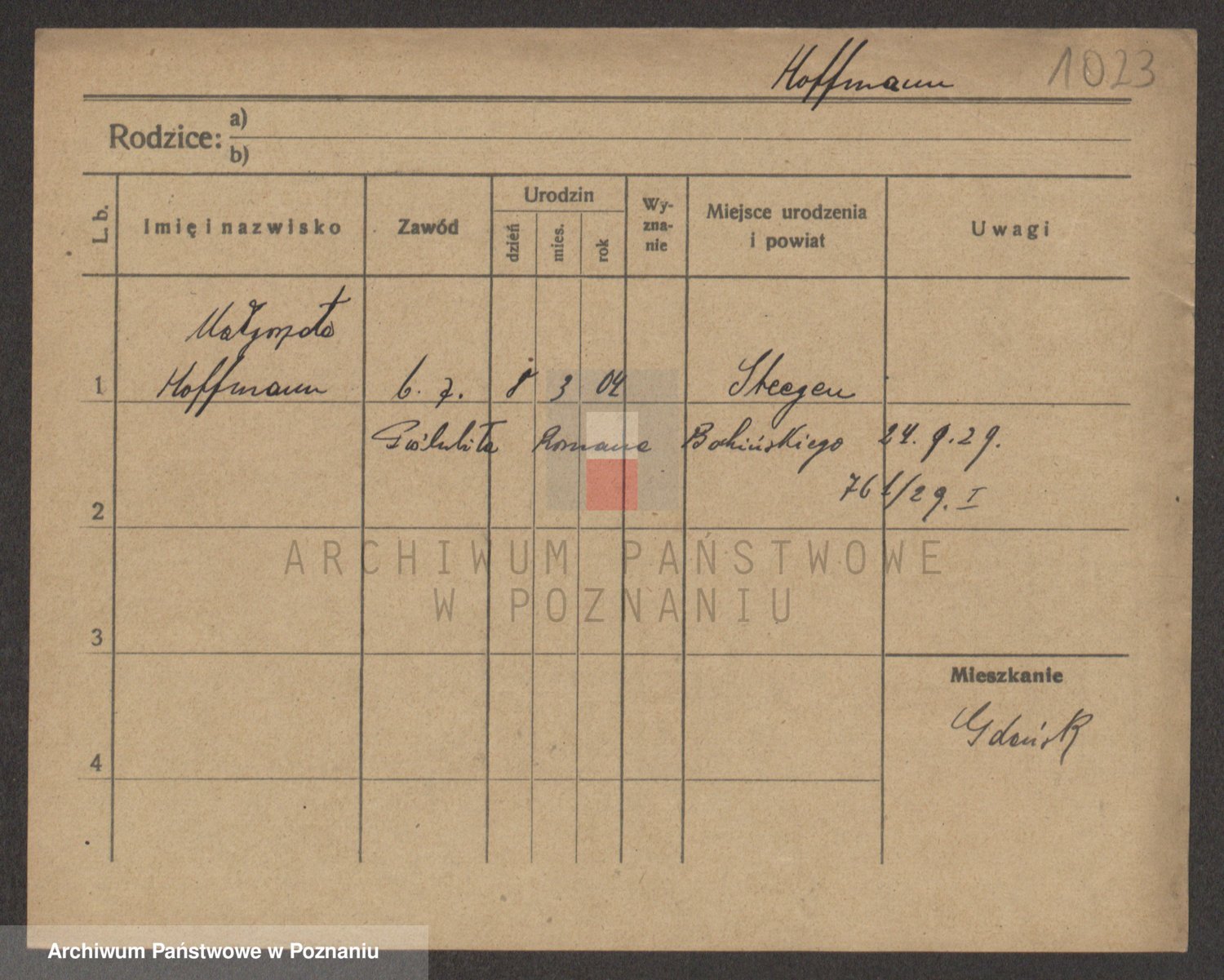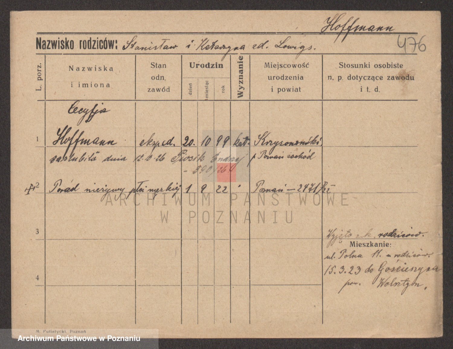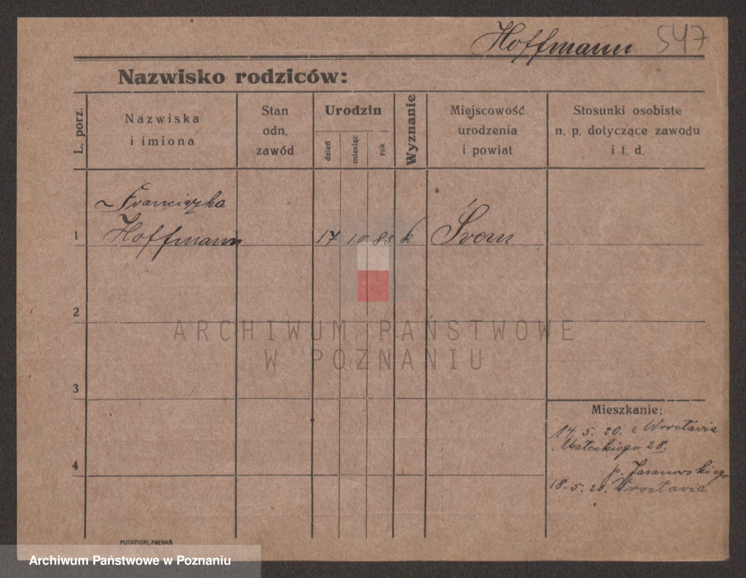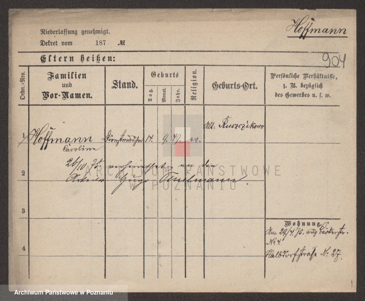 Hoffmann z d. Garczynska, Marie