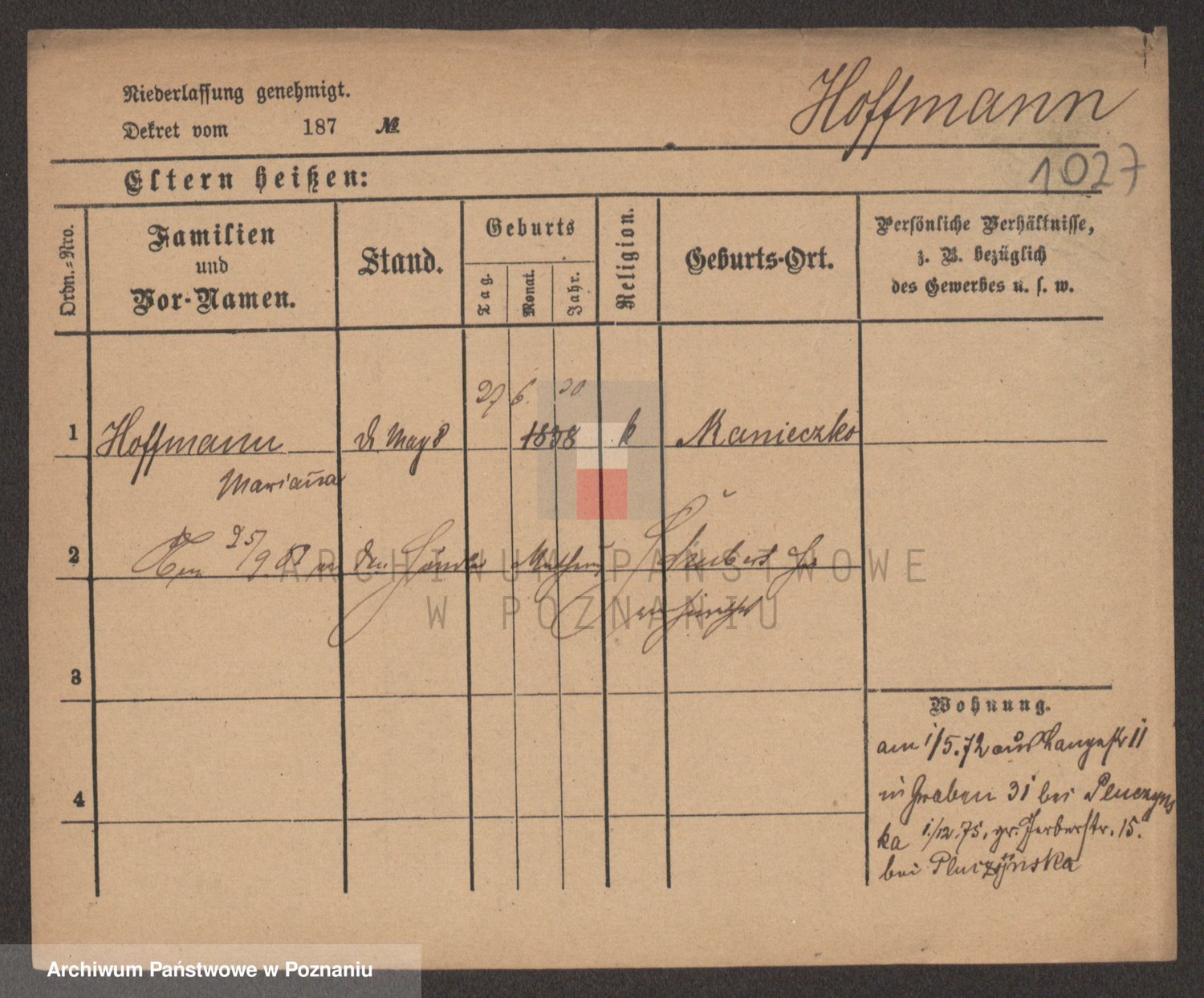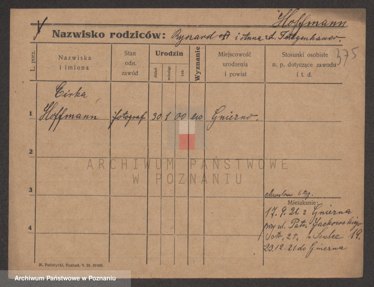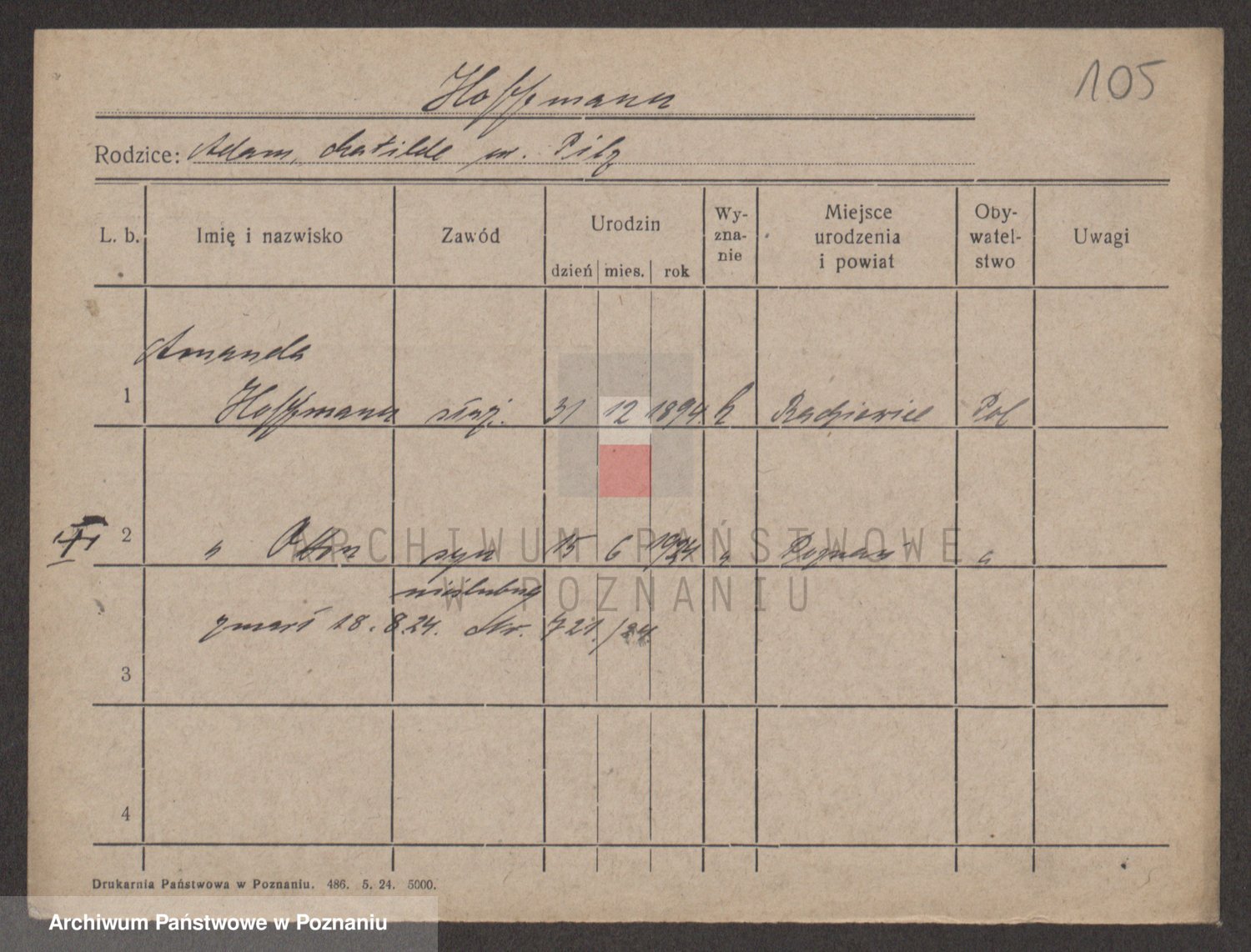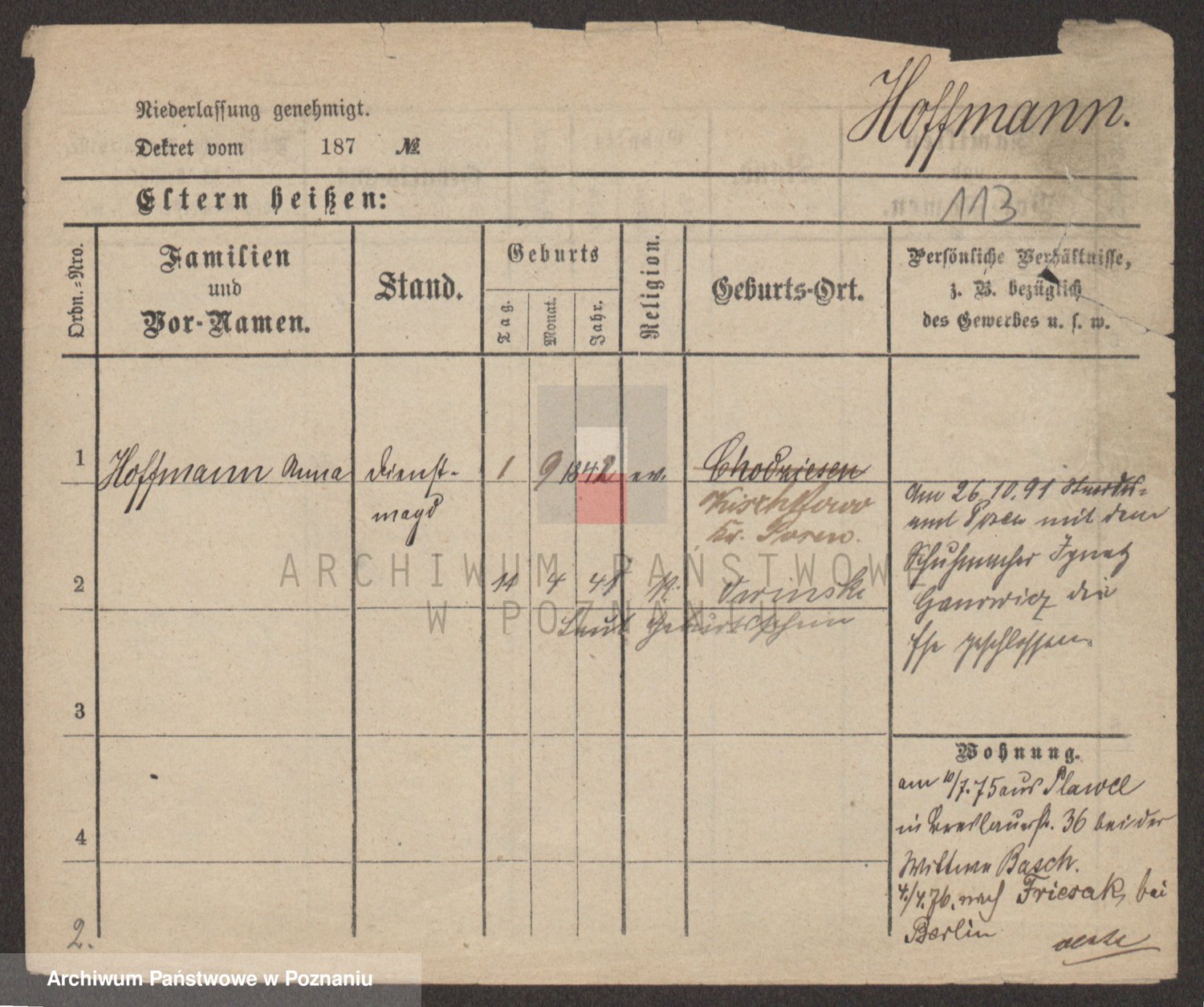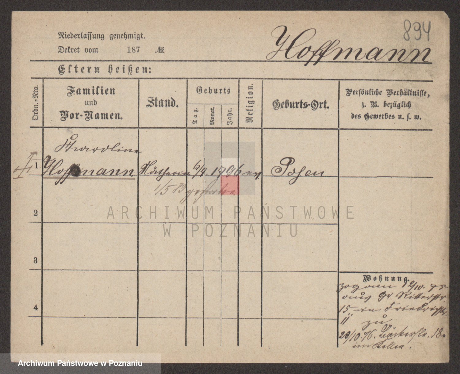 Hoffmann z d. Garczynska, Marie