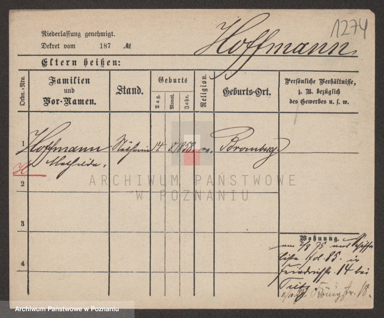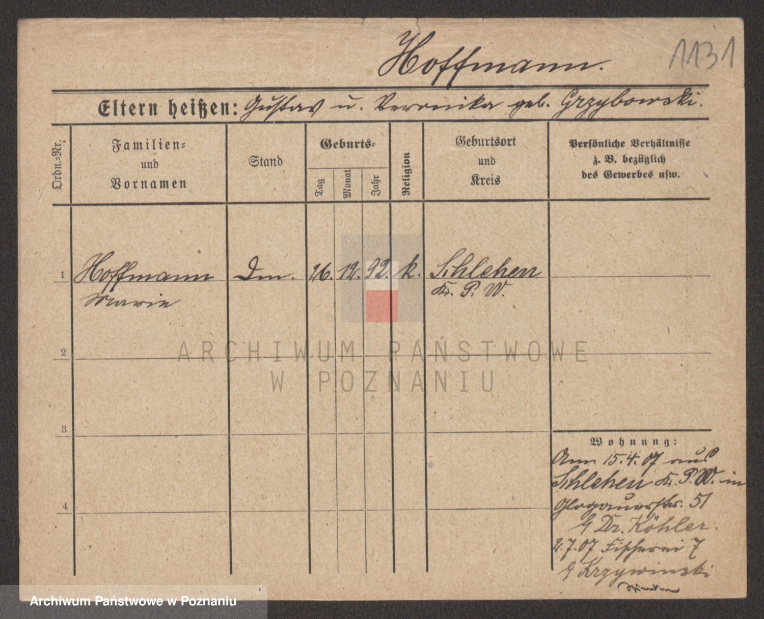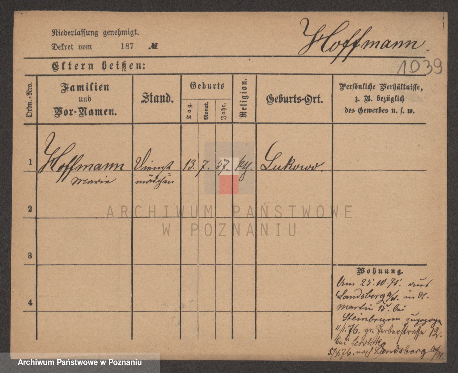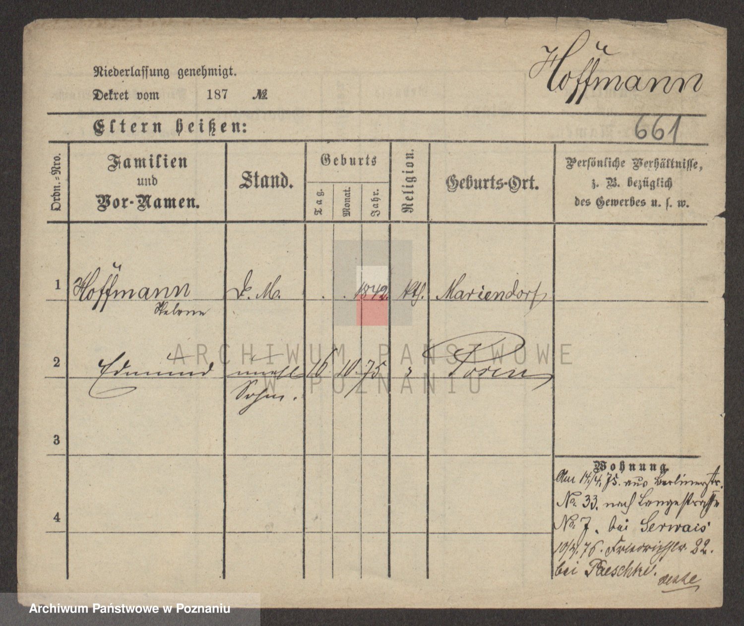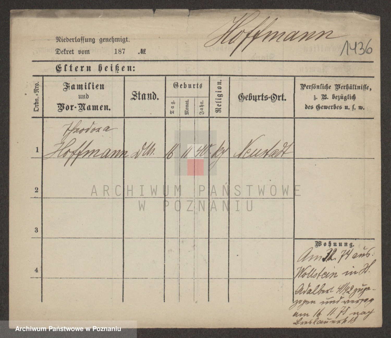 Hoffmann z d. Garczynska, Marie