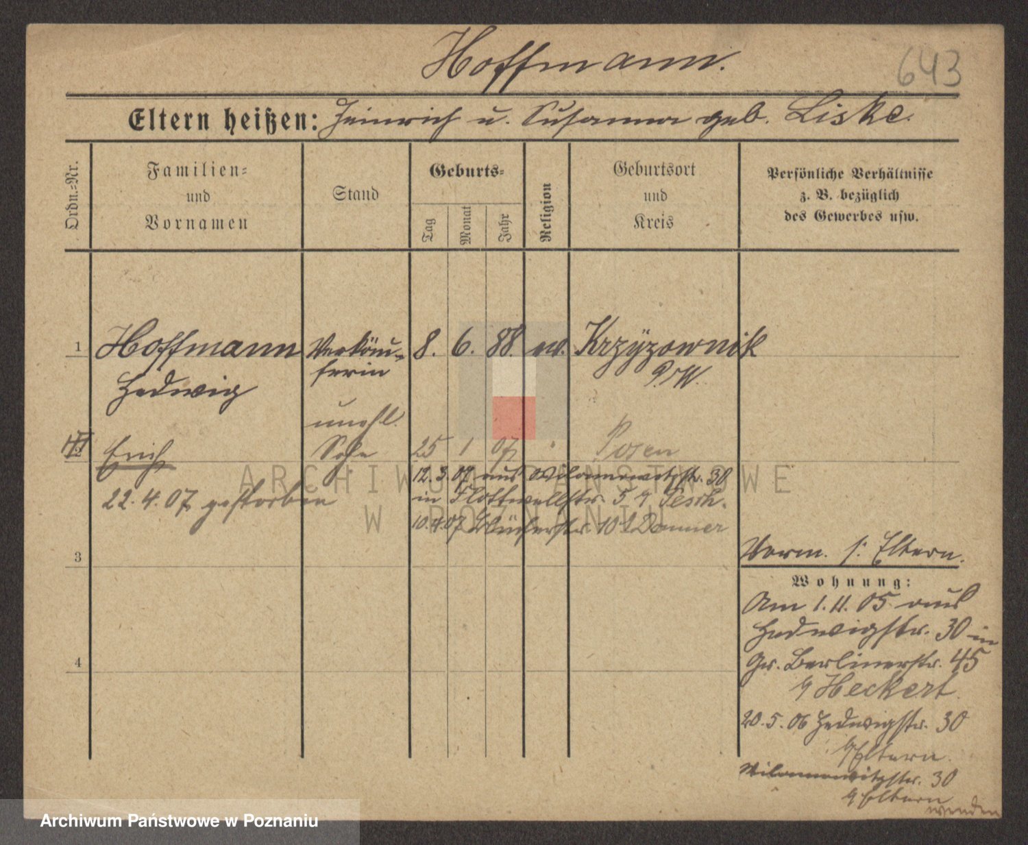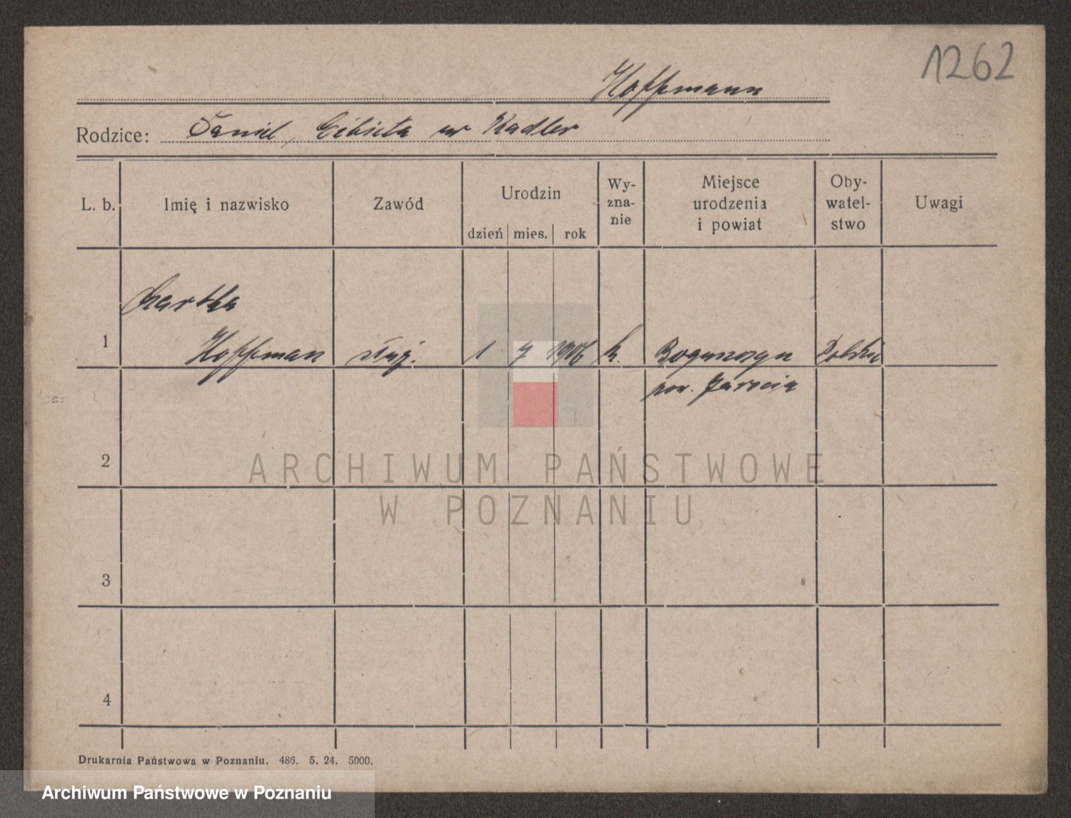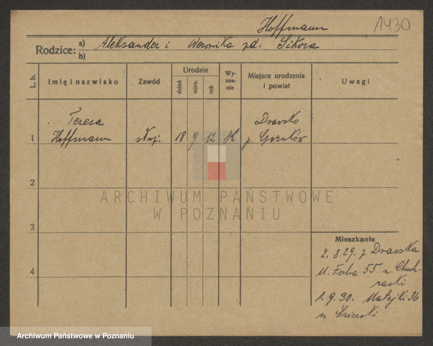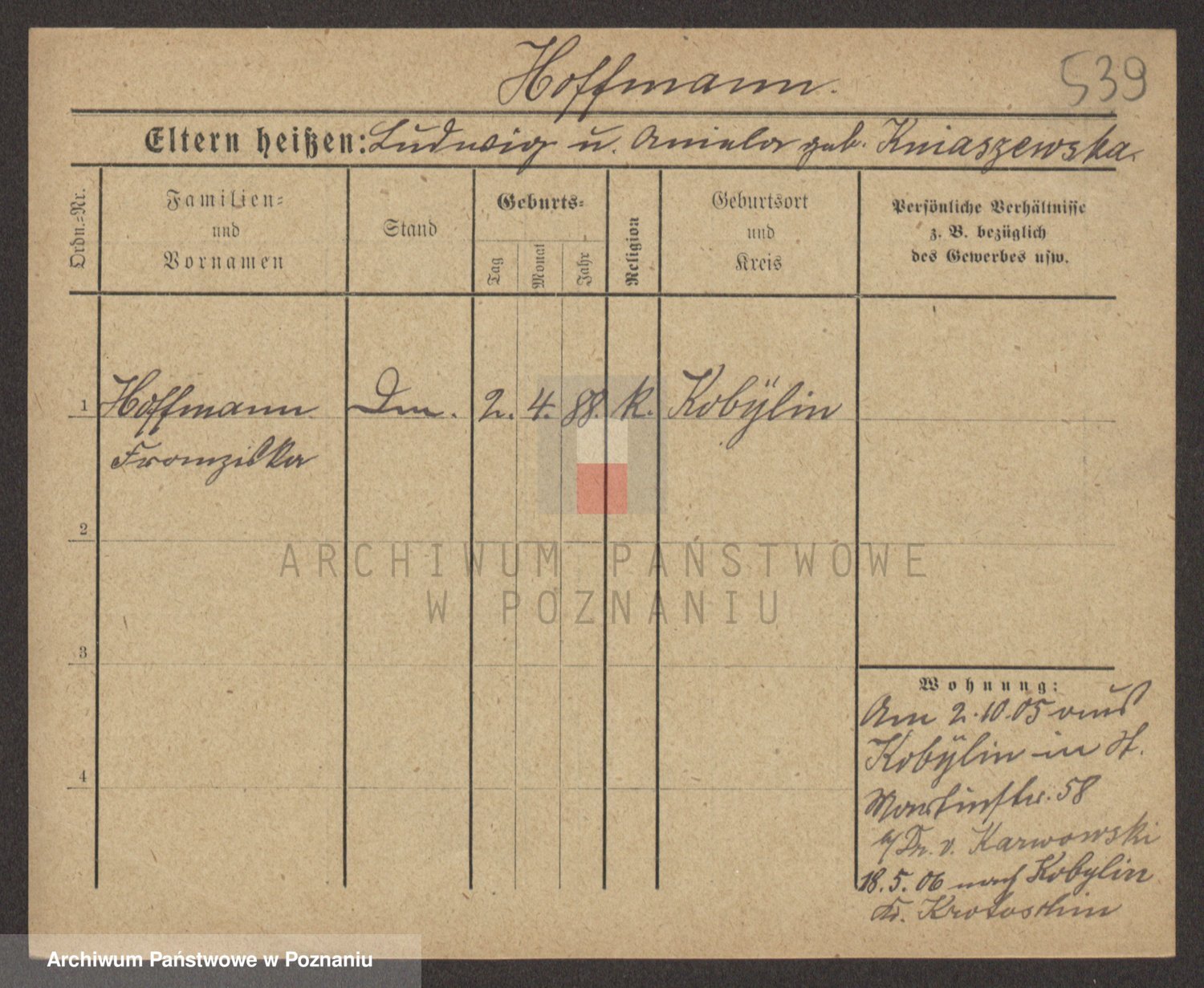 Hoffmann z d. Garczynska, Marie