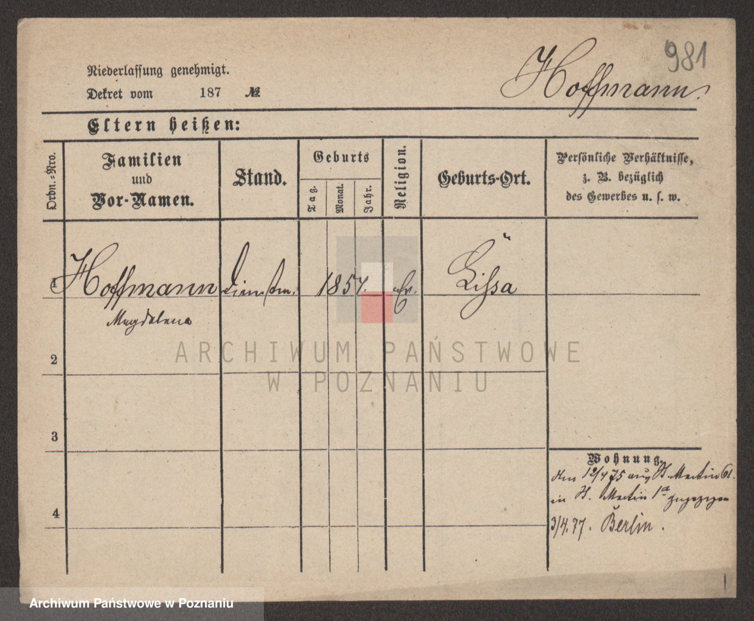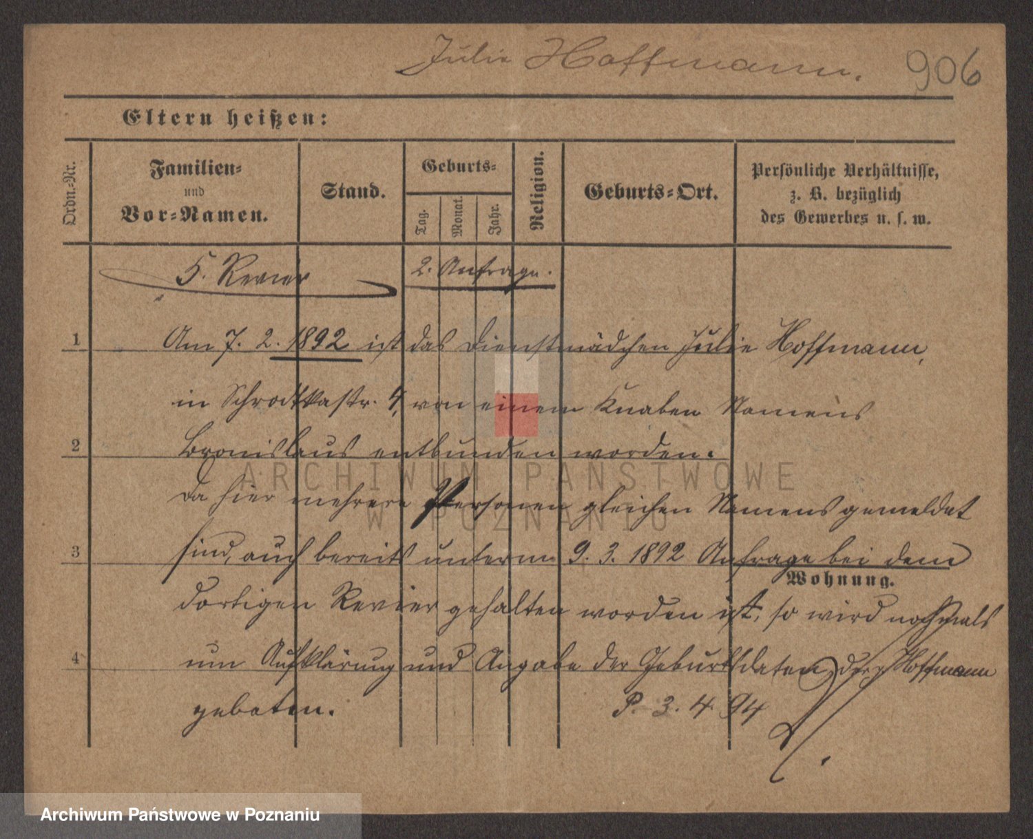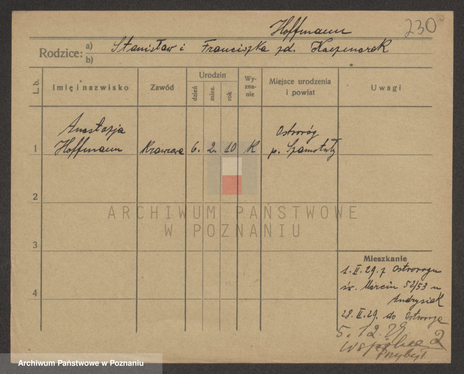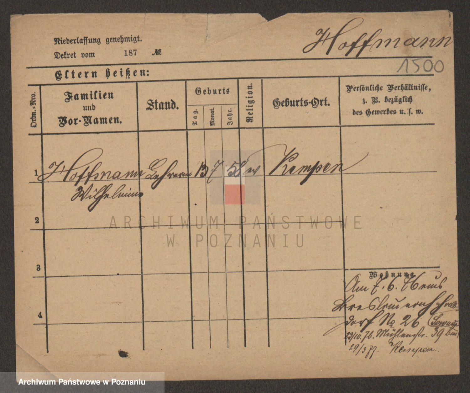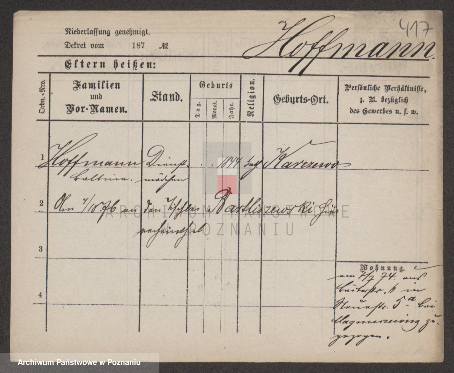 Hoffmann z d. Garczynska, Marie