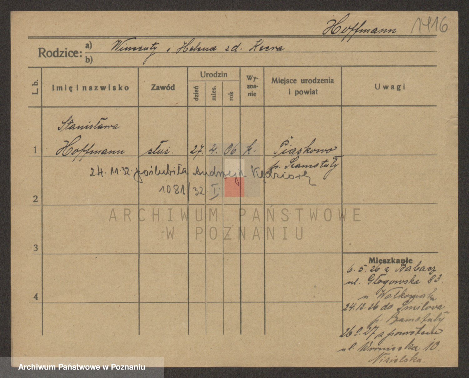 Hoffmann z d. Andrzejewska, Marjanna
