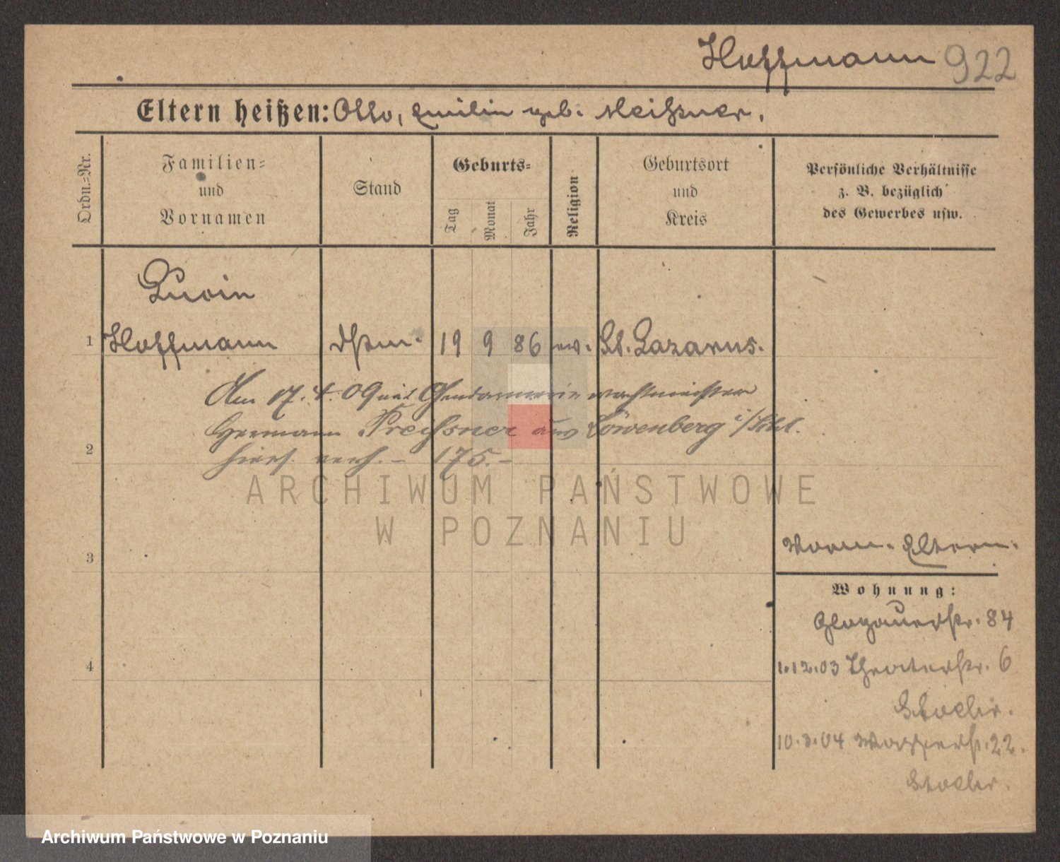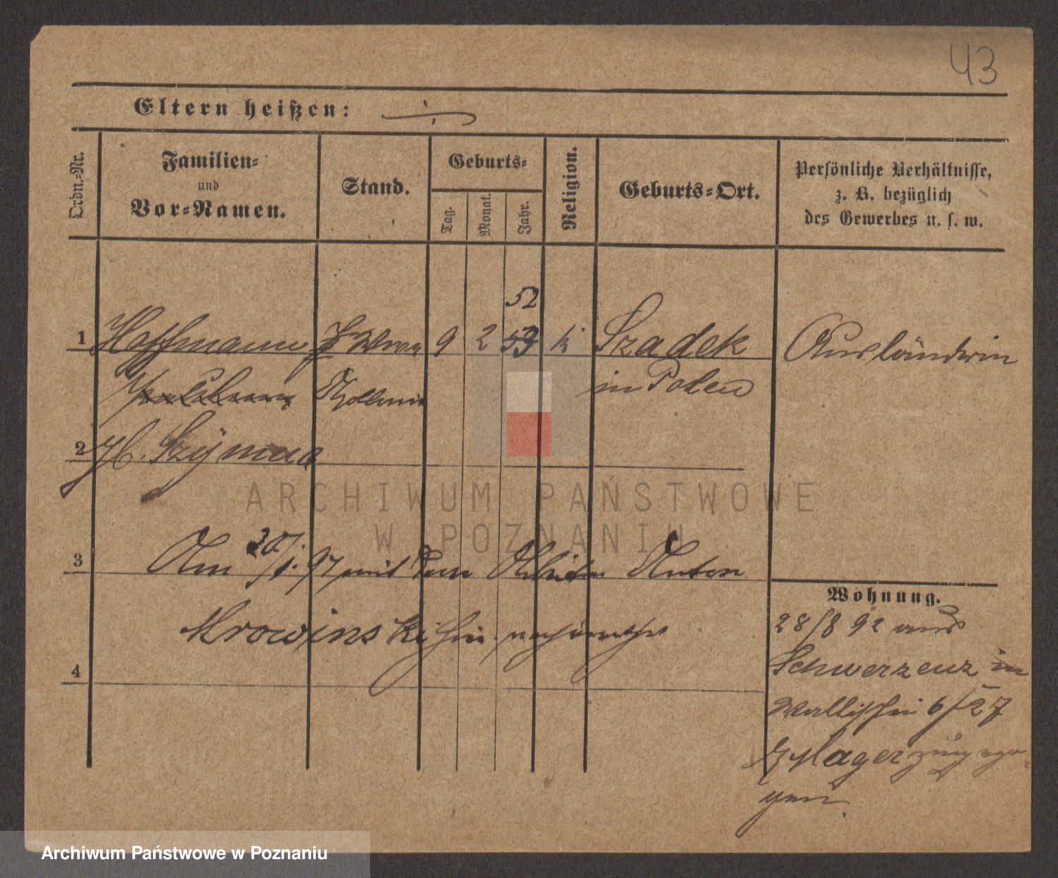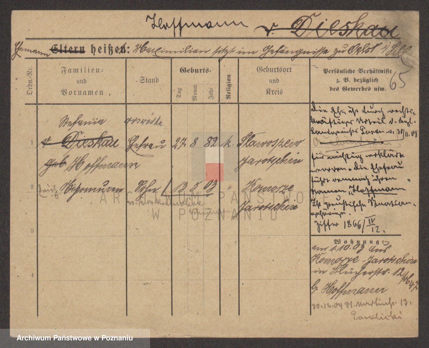 Podgląd karty osobowej dostępny jest po kliknięciu na nazwisko lub ikonkę karty. Można dokonywać powiększenia (ikony na górze) lub przechodzić między kolejnymi skanami (strzałki po bokach).