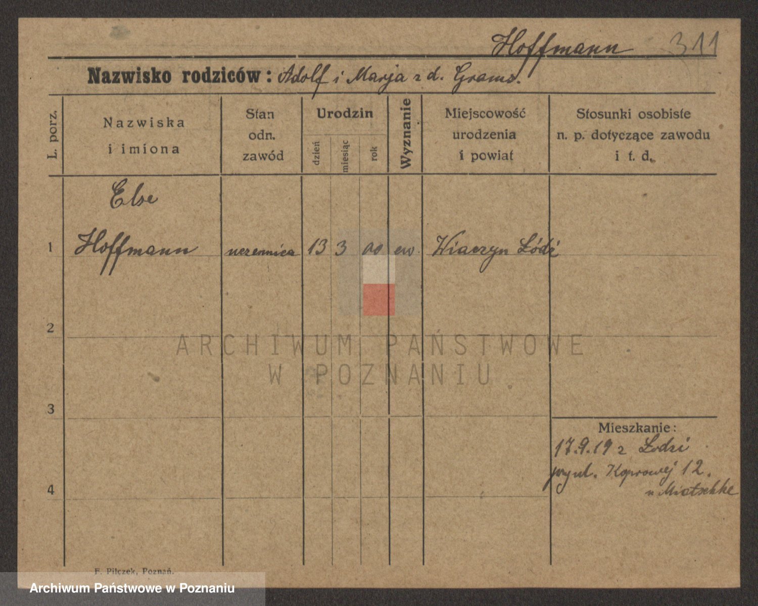 Hoffmann z d. Bączyk, Marie
