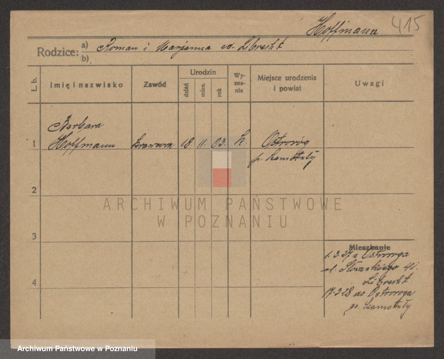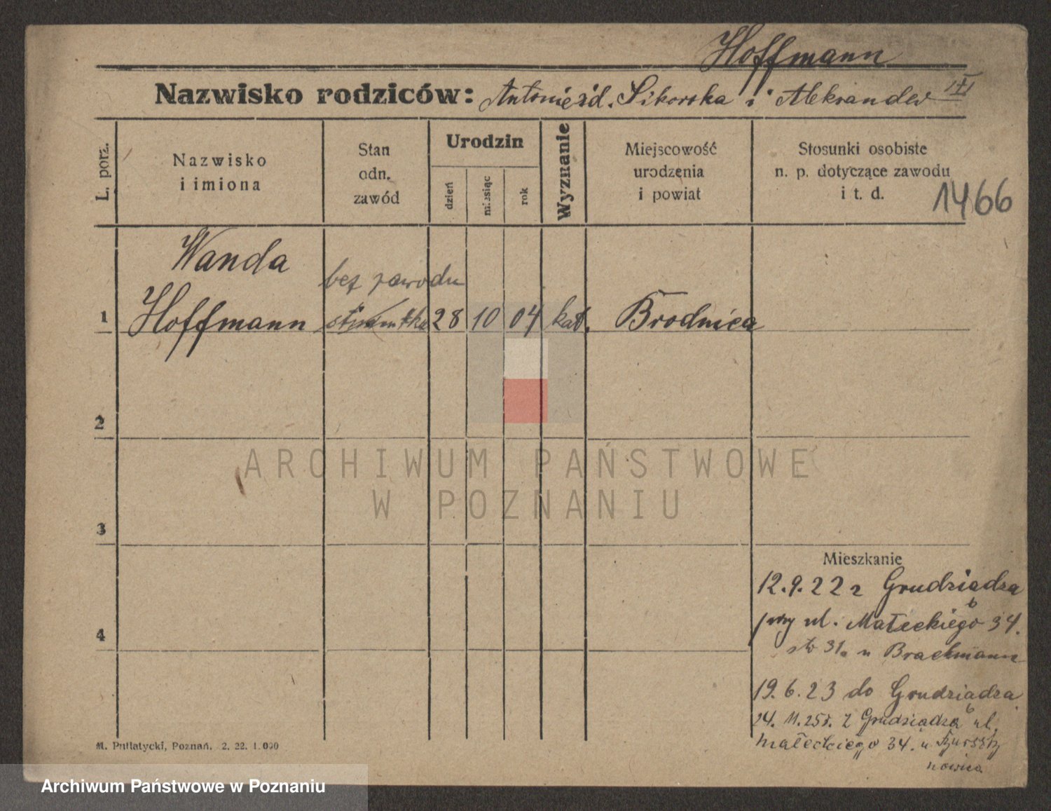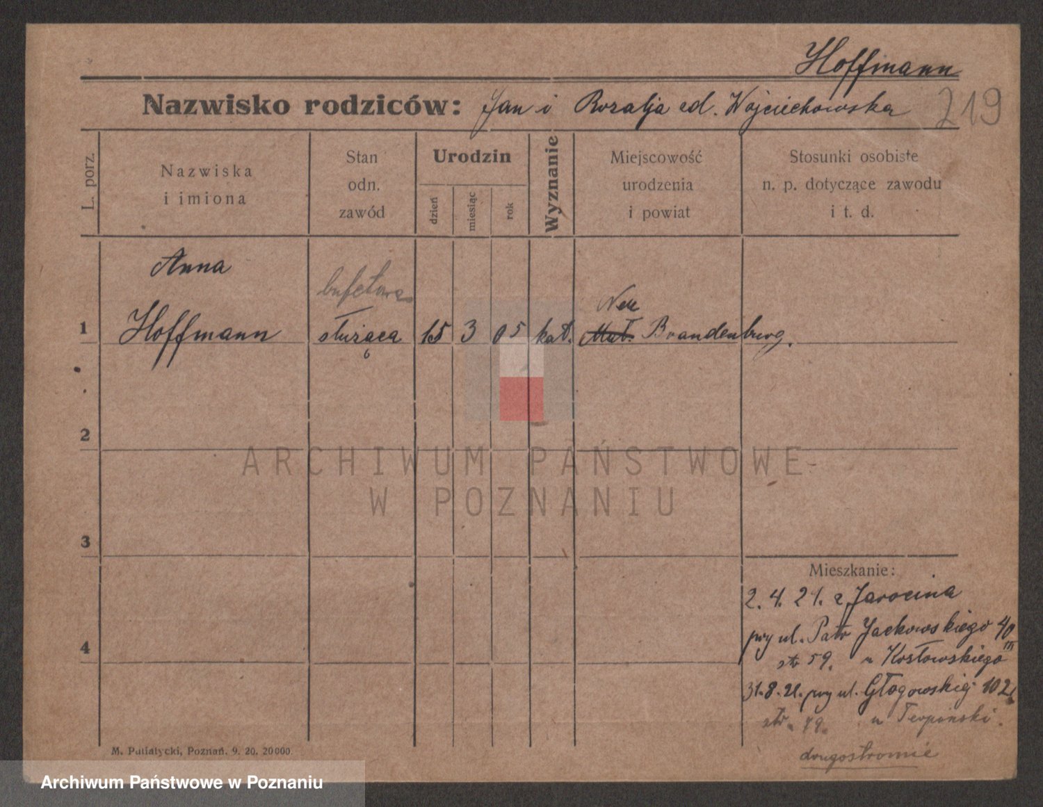Hoffmann z d. Moderska, Marianna
