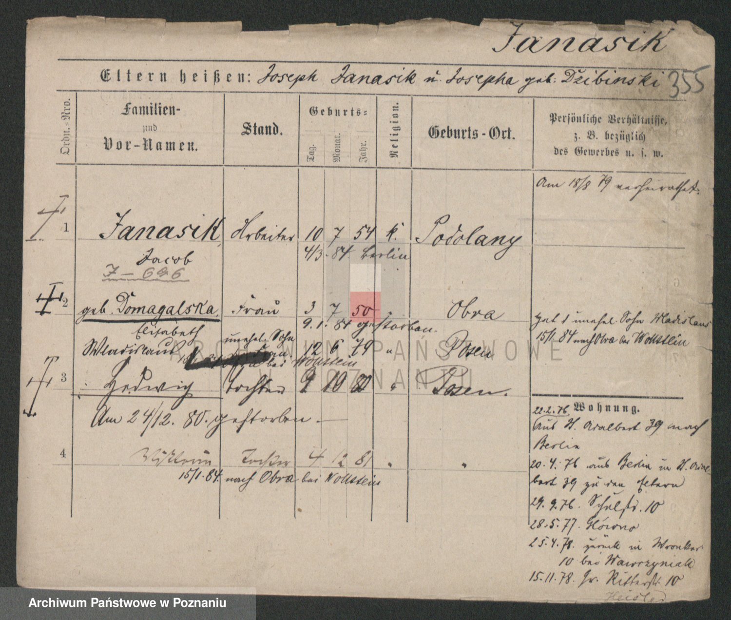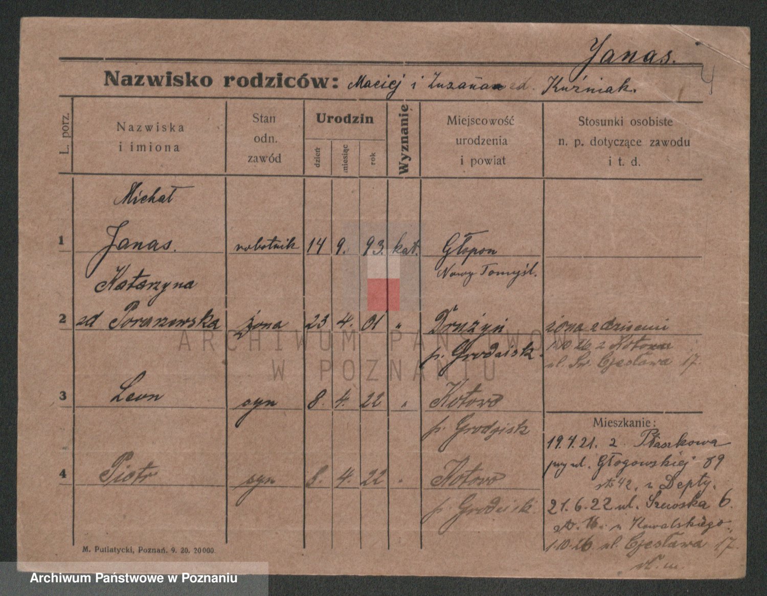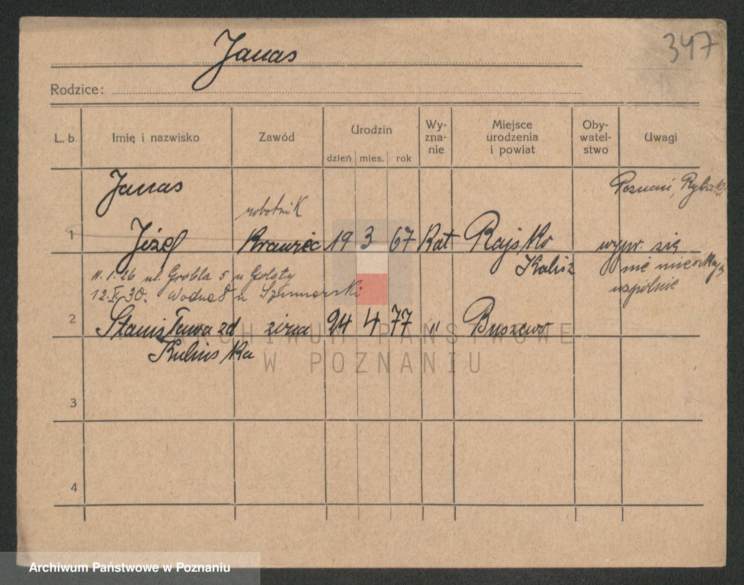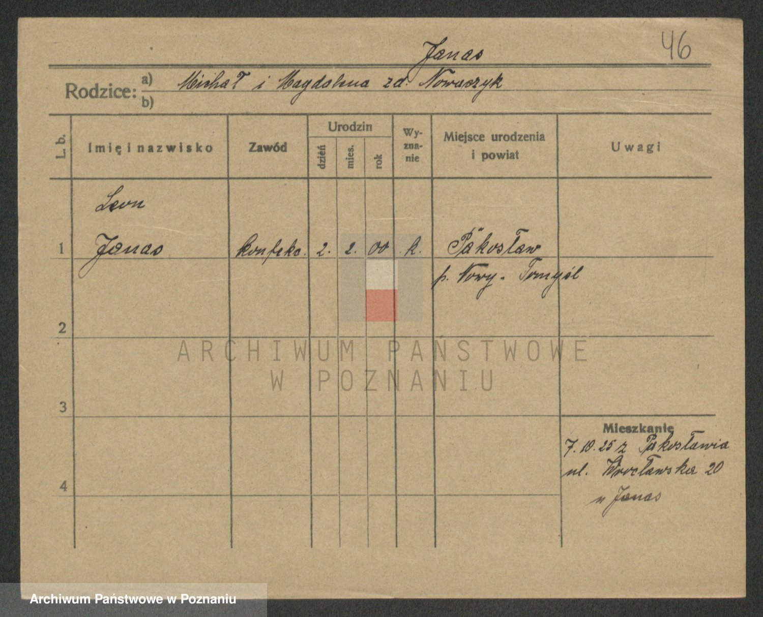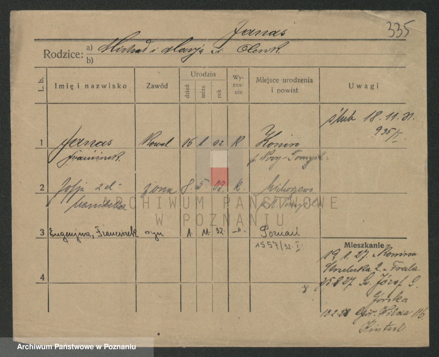 Podgląd karty osobowej dostępny jest po kliknięciu na nazwisko lub ikonkę karty. Można dokonywać powiększenia (ikony na górze) lub przechodzić między kolejnymi skanami (strzałki po bokach).