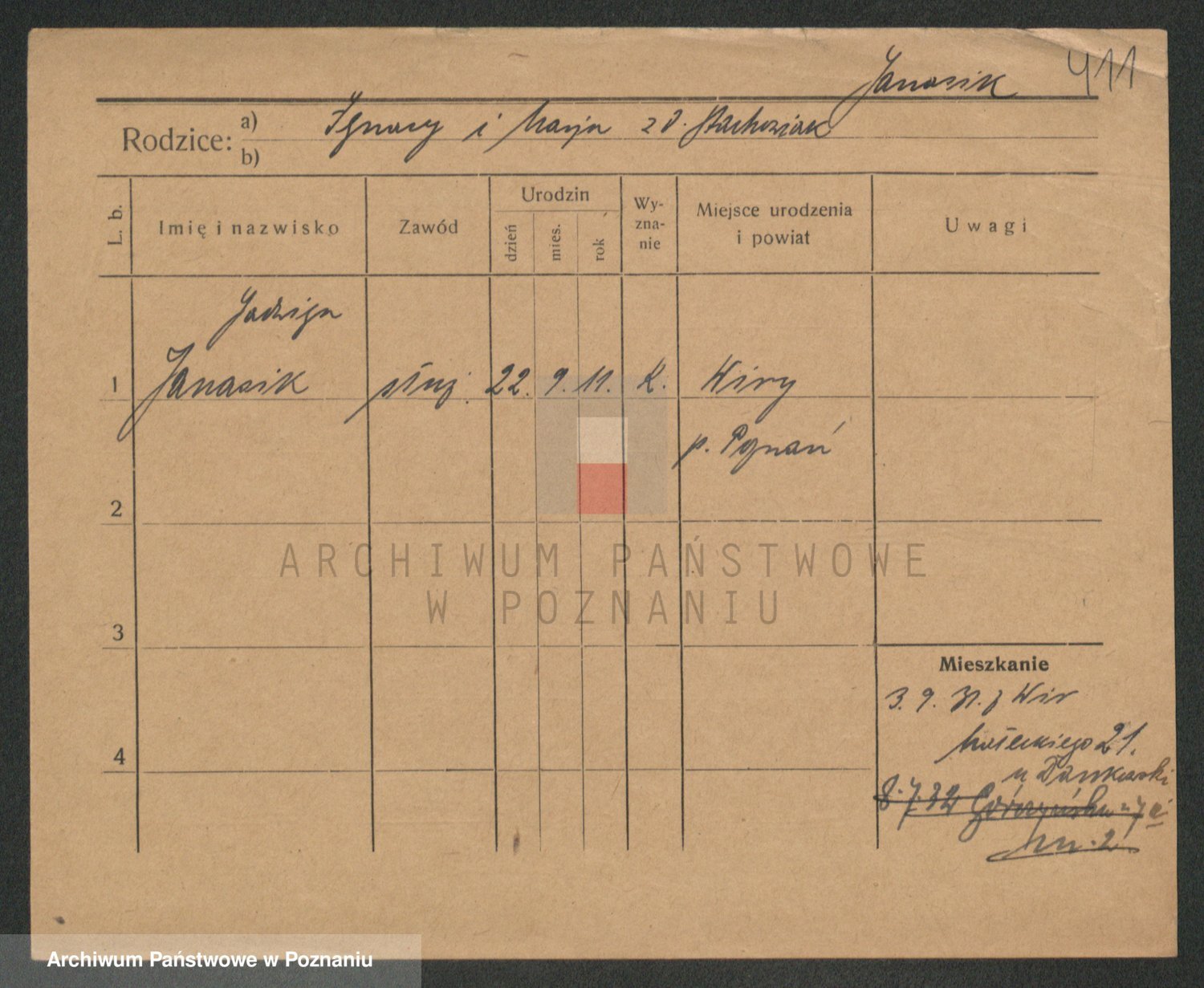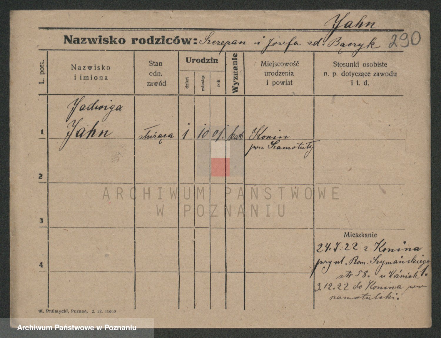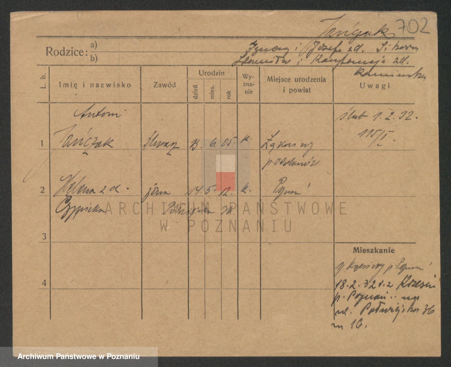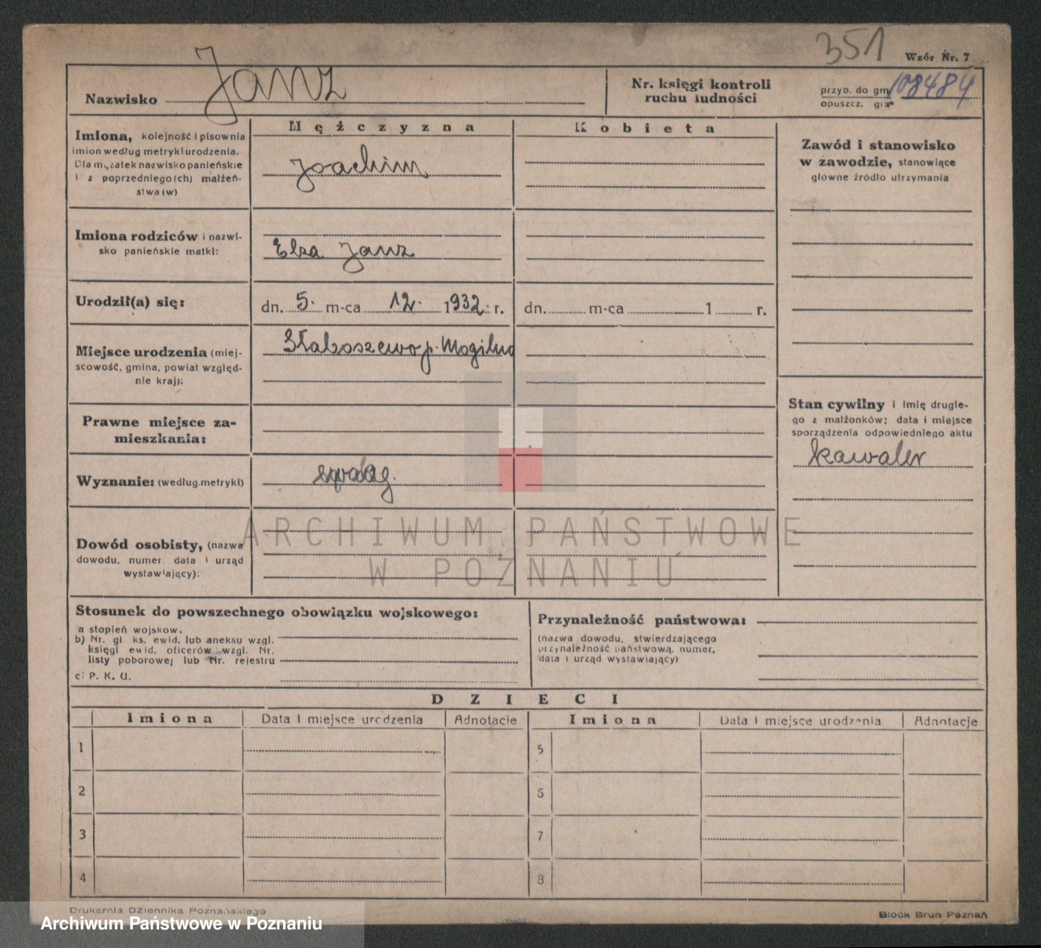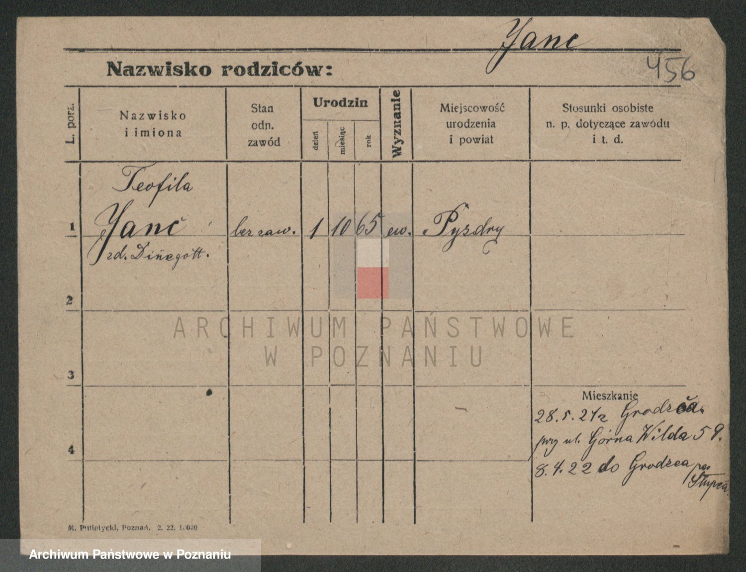 Podgląd karty osobowej dostępny jest po kliknięciu na nazwisko lub ikonkę karty. Można dokonywać powiększenia (ikony na górze) lub przechodzić między kolejnymi skanami (strzałki po bokach).