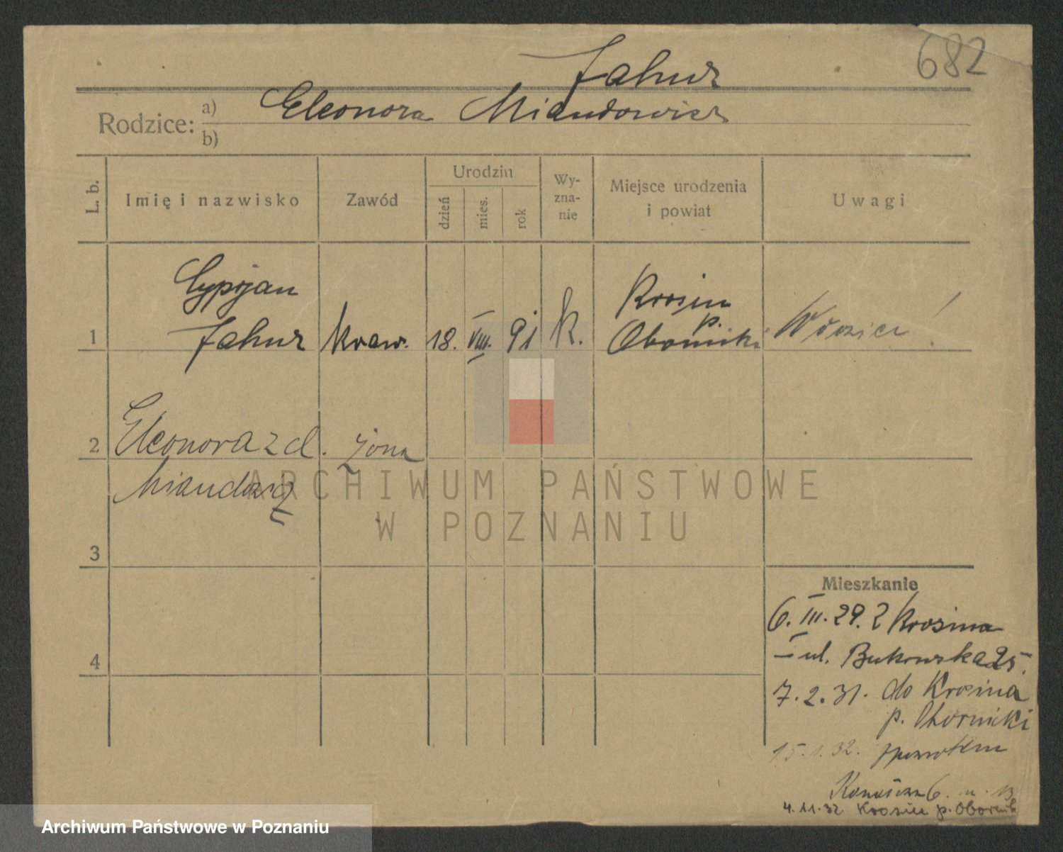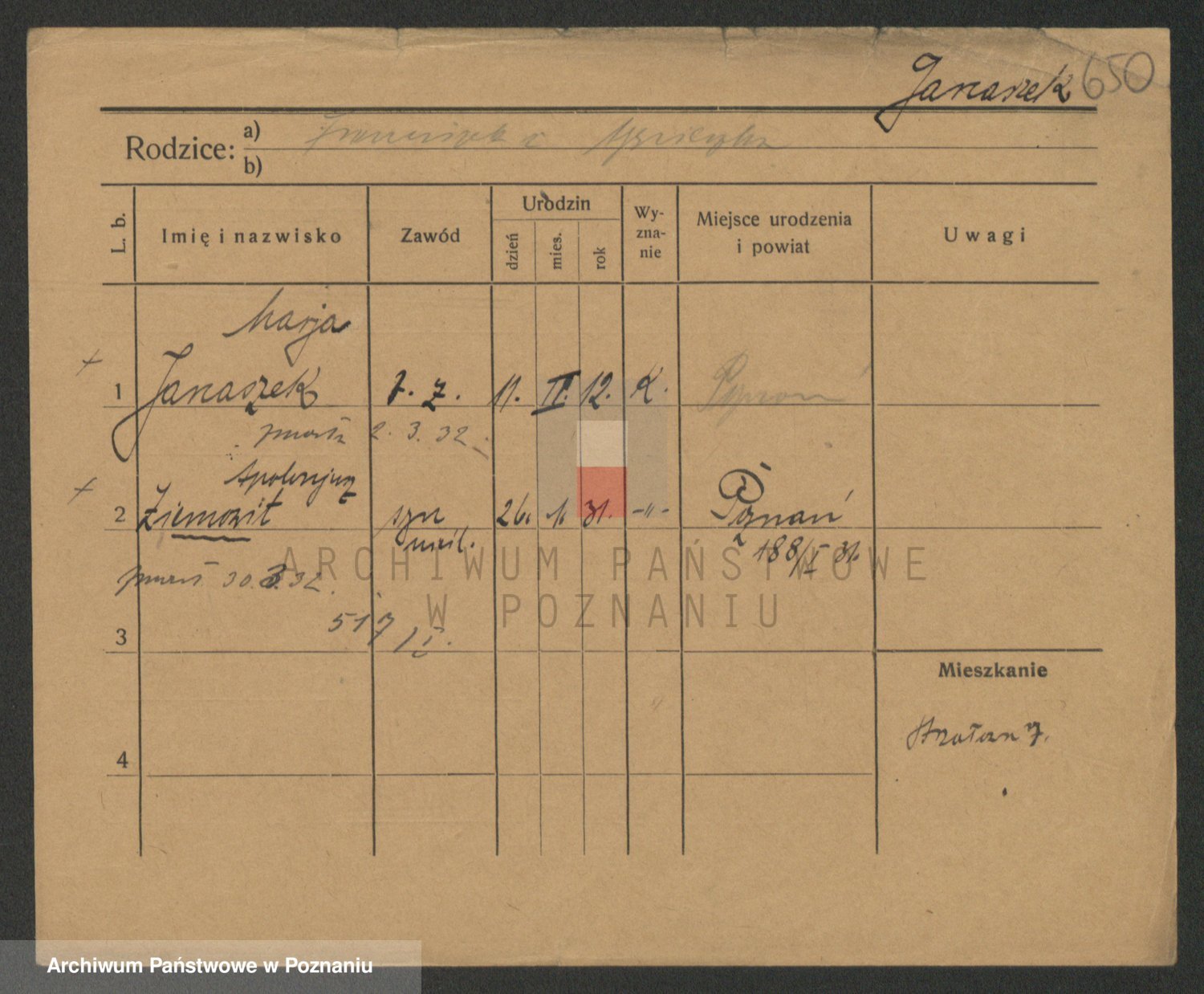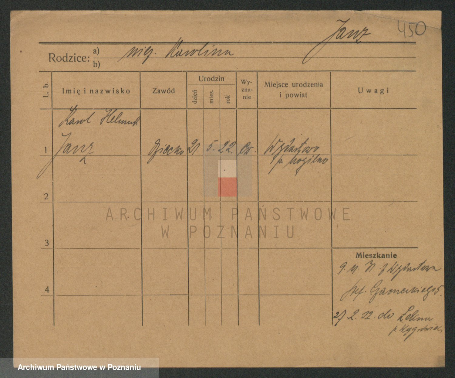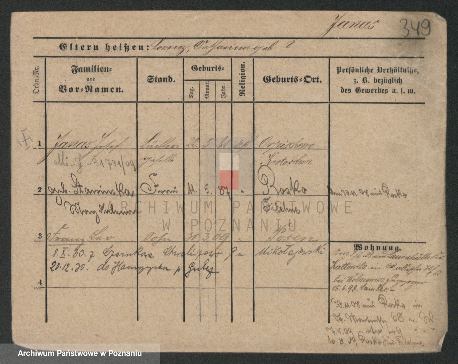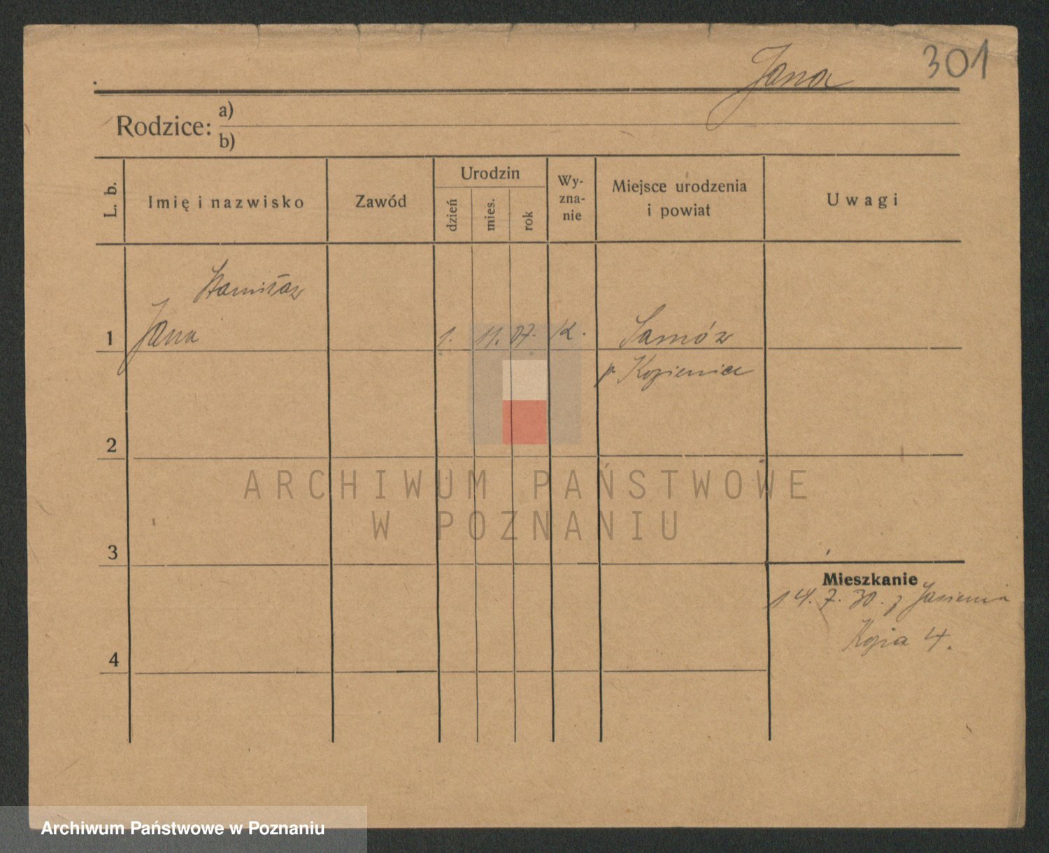 Podgląd karty osobowej dostępny jest po kliknięciu na nazwisko lub ikonkę karty. Można dokonywać powiększenia (ikony na górze) lub przechodzić między kolejnymi skanami (strzałki po bokach).