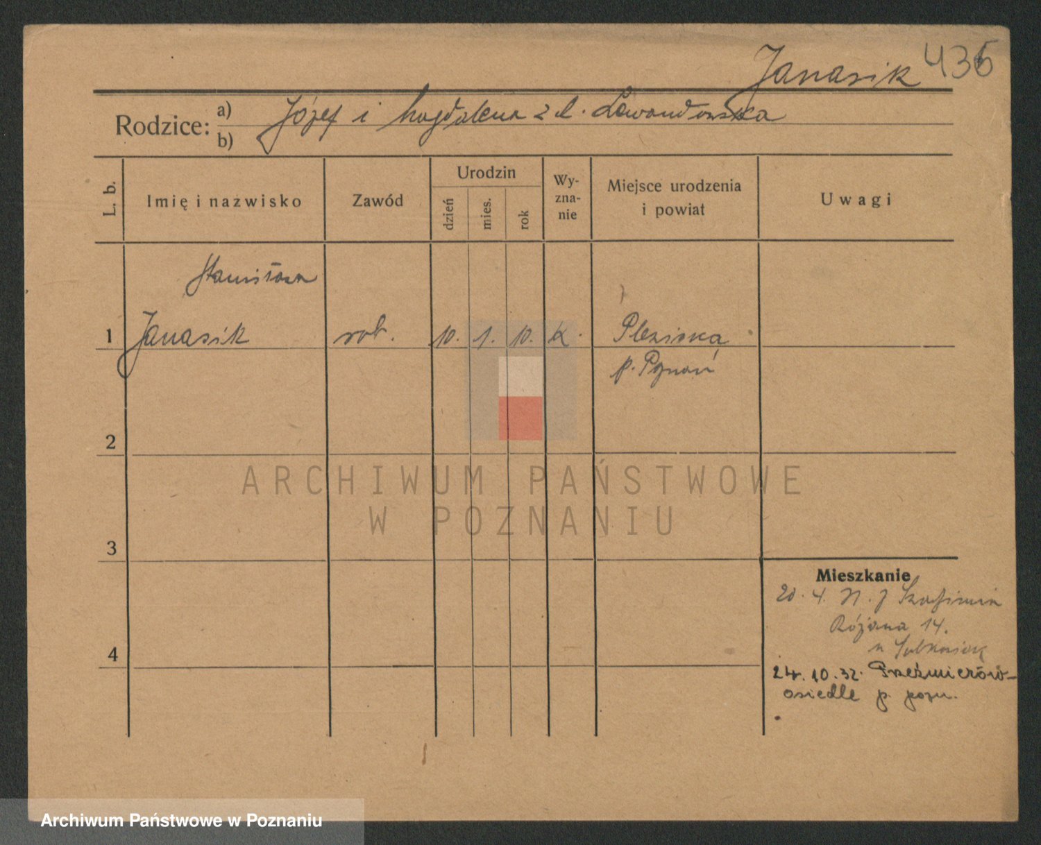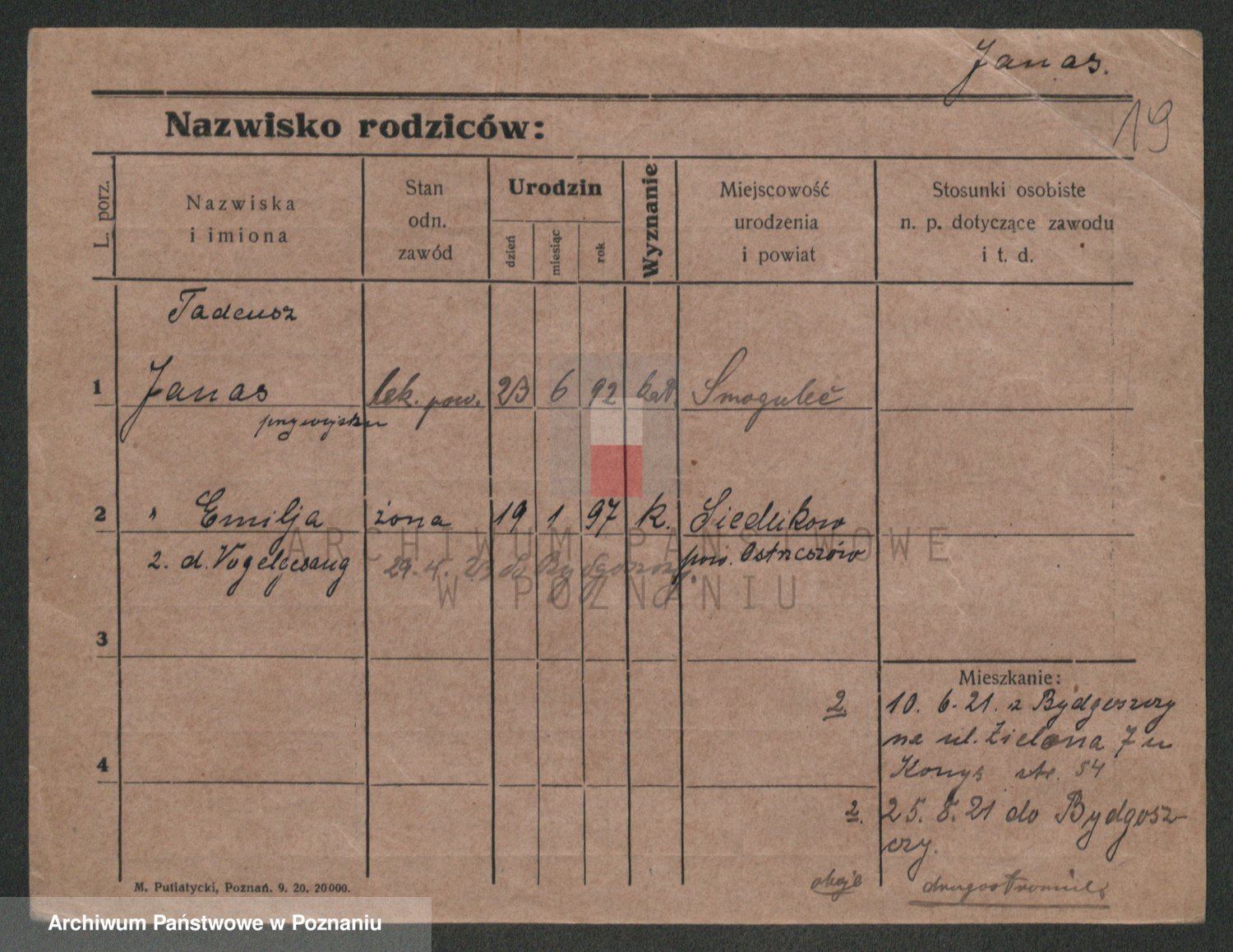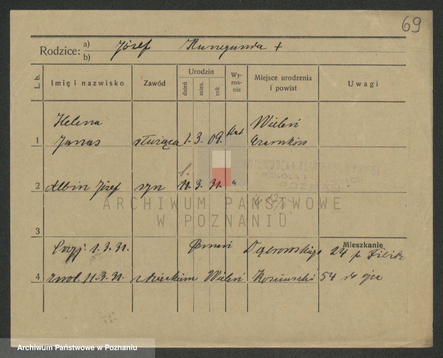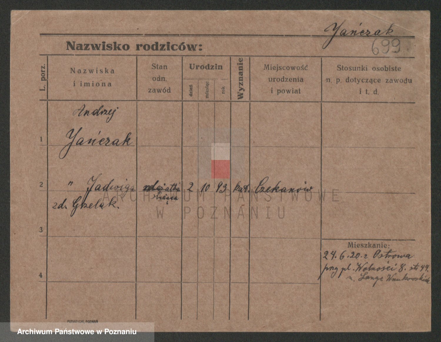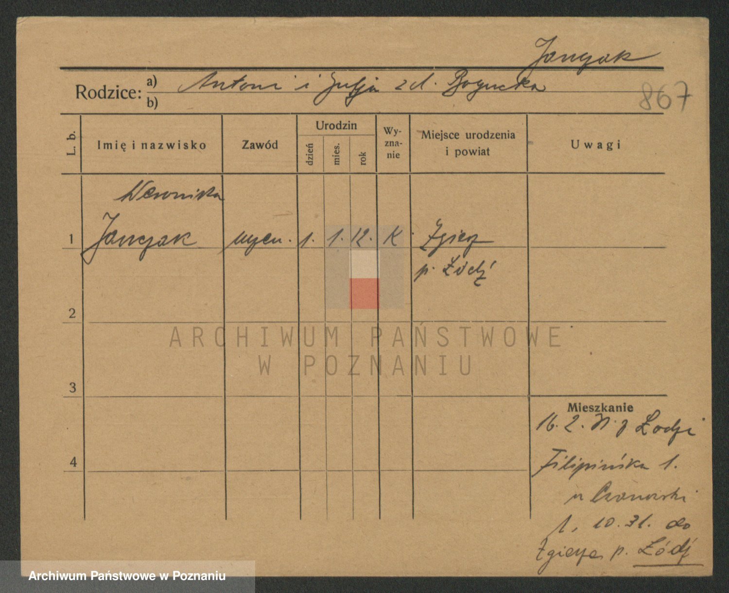 Podgląd karty osobowej dostępny jest po kliknięciu na nazwisko lub ikonkę karty. Można dokonywać powiększenia (ikony na górze) lub przechodzić między kolejnymi skanami (strzałki po bokach).